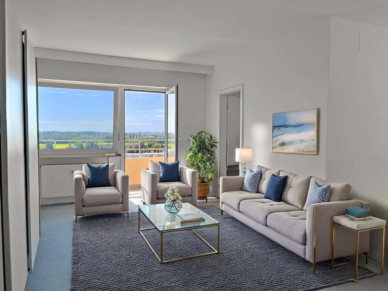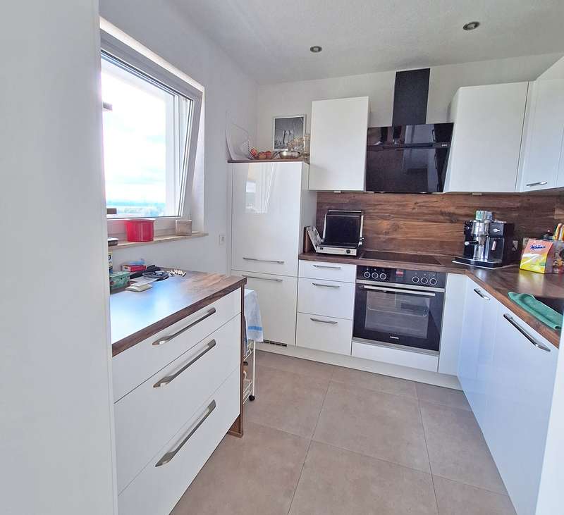 This charming 2-room apartment with a living space of approx. 56 m² is located on the top floor of a well-kept apartment building from 1975 and impresses with its fantastic distant view. The well thought-out layout offers a light-flooded living and dining area, a separate kitchen, a cozy bedroom and a daylight bathroom. A special highlight are the two balconies, from which you can enjoy the view in two directions - perfect for relaxing hours in the fresh air. Features include laminate and carpet flooring, double-glazed plastic windows, electric shutters and an elevator to take you comfortably to your floor. A spacious basement room provides additional storage space, and an underground parking space is available for an additional 15,000 euros. The location in Weinheim combines a quiet residential atmosphere with an excellent infrastructure. Shopping facilities, restaurants, public transport and leisure activities are all within easy reach. Thanks to the good transport links, you can also reach the surrounding towns in the Rhine-Neckar region in a short time. Whether for singles or couples - this apartment offers the ideal basis for realizing your own living ideas. Here you can realize your individual ideas and create a home to suit your taste. Contact us today and let us convince you of the advantages of this apartment!