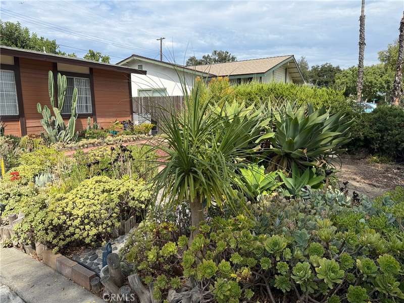 "THE FRONT YARD IS BEAUTIFULLY LANDSCAPED WITH A WIDE VARIETY OF CACTI AND SUCCULENTS, CREATING A VIBRANT AND ELEGANT DISPLAY THROUGHOUT THE YEAR. EACH PLANT IS THOUGHTFULLY ARRANGED TO FORM A HARMONIOUS COMPOSITION, OFFERING A UNIQUE AND REFINED DESERT CHARM WITHIN THE HEART OF THE CITY."