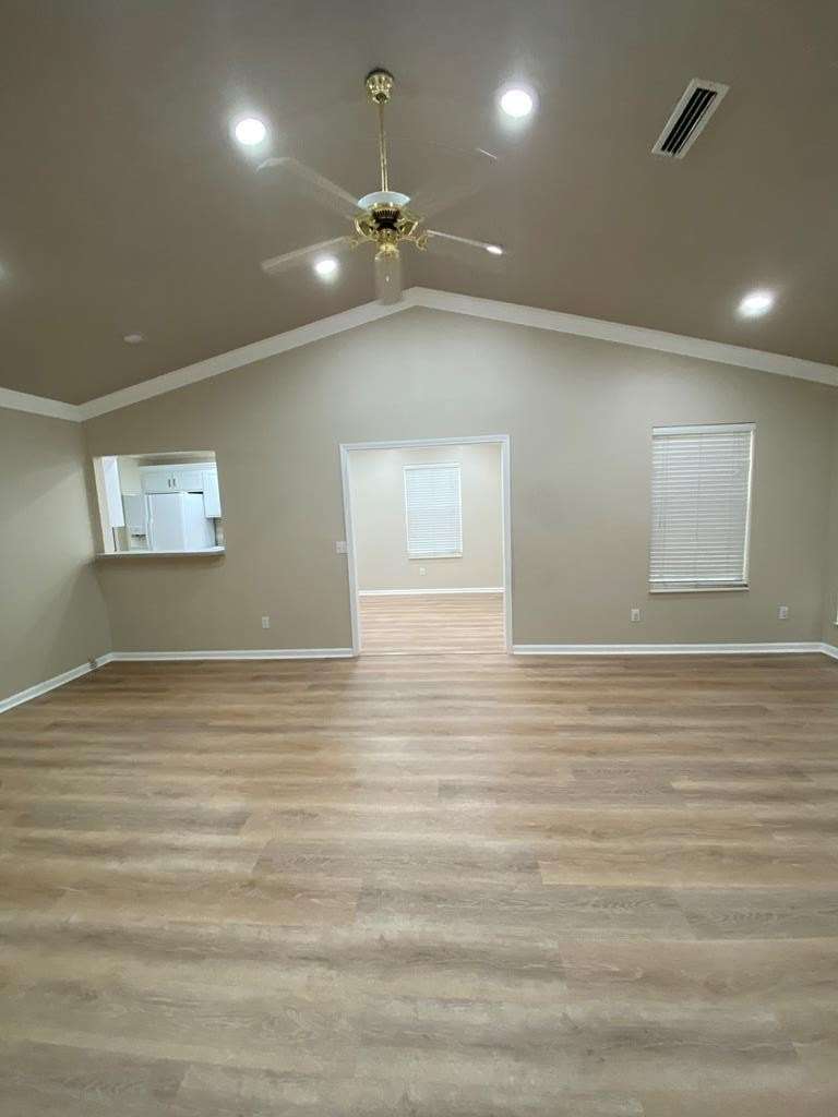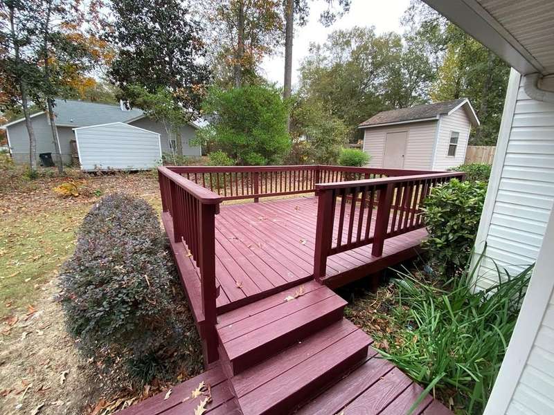 Cute Cottage located On a Corner Lot with Complete Lawncare included. Large Grandroom with Vaulted Ceiling, Pass-Thru to Kitchen and Fireplace. French Doors in Kitchen/Dining area open to Covered Patio and Nice Wooden Deck. Property has well-appointed Laundry Room. The Primary Suite has Bay Window, Walk-in Closet and En-Suite Bath. The other Two Bedrooms share a Large Bathroom. Home offers a Double Garage and Storage Shed.