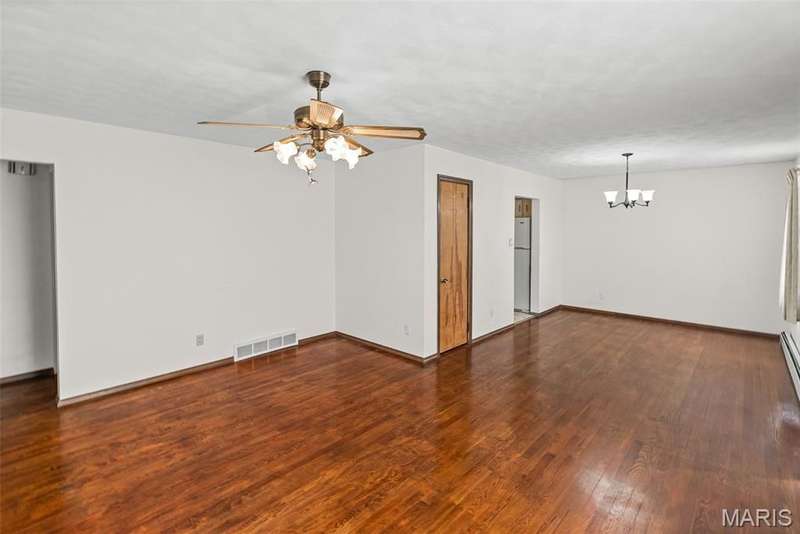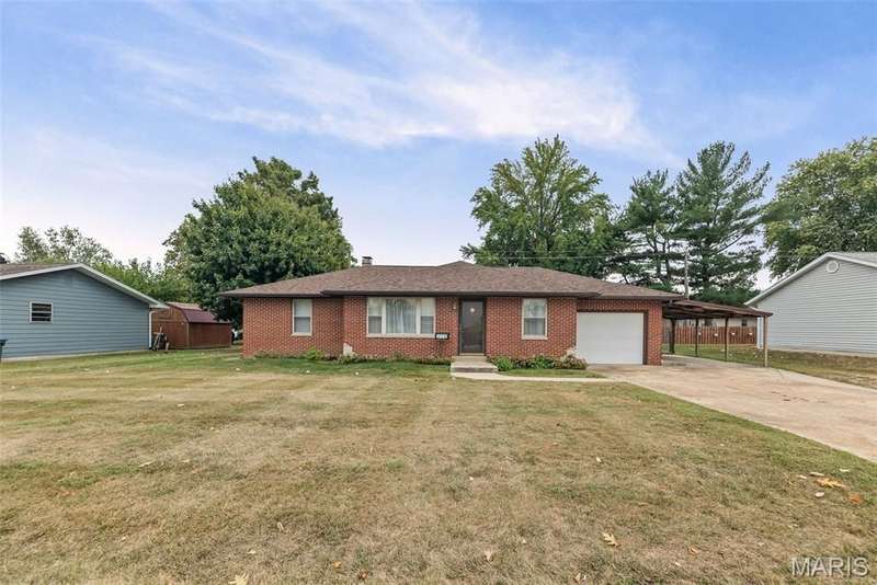 Don't miss out on this 2BR/3BA brick ranch w/a 1 car attached garage, 1 car carport, deck & fenced back yard. As you enter this home, you will notice the open LR/DR w/beautiful hardwood flrs. The hardwood floor continues into the hallway & one BR. The primary BR has a small walk-in closet & leads into the primary BA that shares the laundry area(previously the shower-laundry could be moved back to the basement). Main BA tub/shower & flooring replaced in 2015. Kitchen included refrigerator, range/oven, portable DW & small freezer. You will love the size of the large FR that features a brick gas FP (never used by this owner-sealed off) & laminate floors. Partially finished bsmt w/a FR, bonus room & 1/2 BA. Plenty of storage. Updates: Roof/gutters Dec. '24, Attic insulated '10, WH '23, HVAC '09. The FR addition does not have a basement and exterior is not brick. Property being sold as is Seller to make no repairs, if needed.