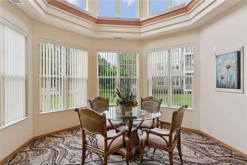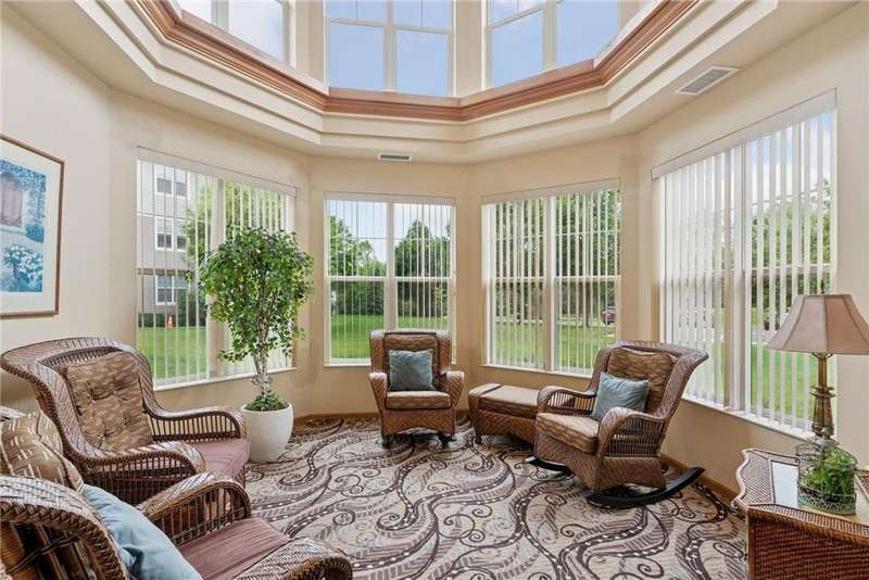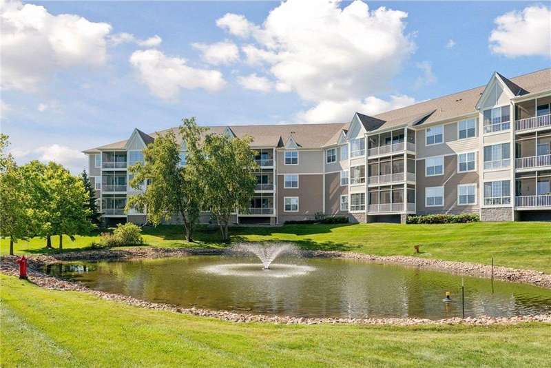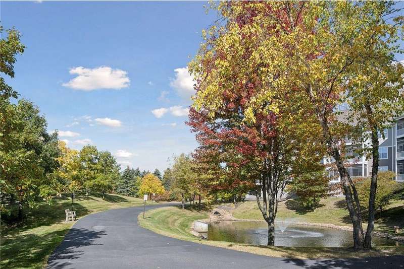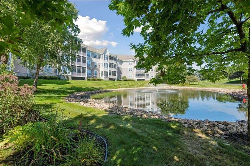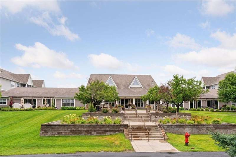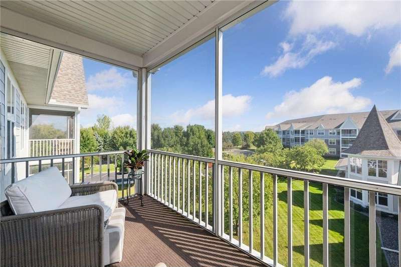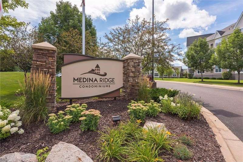 Come fall in love with Medina Ridge, an extraordinary 55+ Community offering exceptional quality, security & privacy on a beautifully landscaped 8.5 acre setting w/picturesque ponds & gardens. This one-of-a-kind, fully customized unit is a must-see! Ideally situated facing the front entrance, it offers a unique floor plan & thoughtful upgrades throughout. Rich wood laminate flooring, gorgeous beamed 9 ft ceilings, & extensive custom built-ins (including a murphy bed in the second bedroom) providing both charm, functionality & added storage! The living room boasts a striking stone fireplace and triple-wide sliding door to a delightful screen porch, perfect for relaxing. The beautifully expanded kitchen features white cabinetry, tiled backsplash, butcher block center island, stainless appliances & custom lighting. The primary suite is uniquely designed and includes a private 11x7 study/library, a large walk-in closet and an en-suite bath with a large shower. Every detail has been carefully curated for comfort, style & ease of living. Additional highlights include a large same-floor storage unit and a secured, heated garage space - valuable additions to condo living. Medina Ridge offers more than just a beautiful home - it's a lifestyle. Residents enjoy social gatherings, planned activities, and access to on-site amenities, all in a peaceful, maintenance-free environment close to shopping, dining & medical services. Don't miss your opportunity to own this exceptional & truly one-of-a-kind residence in one of the area's most desirable 55+ communities!