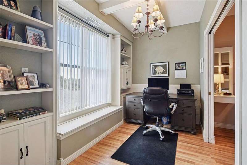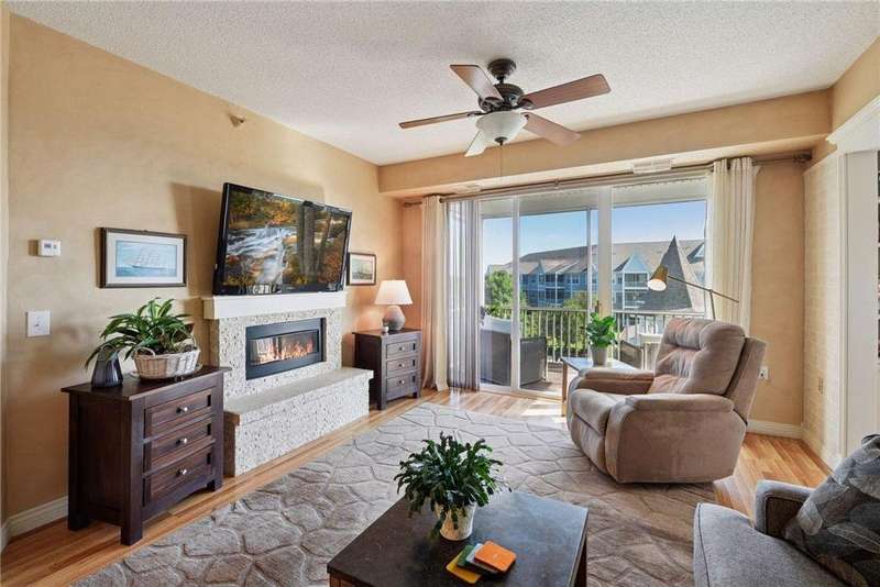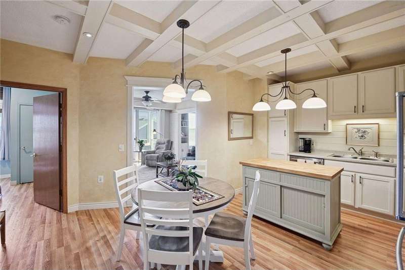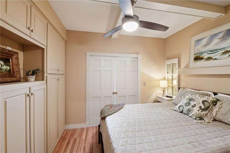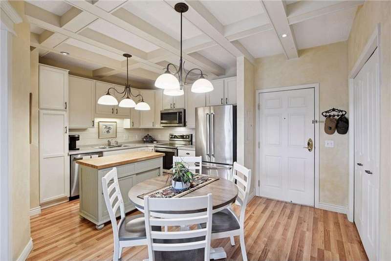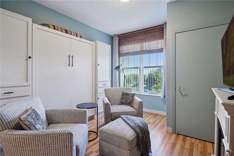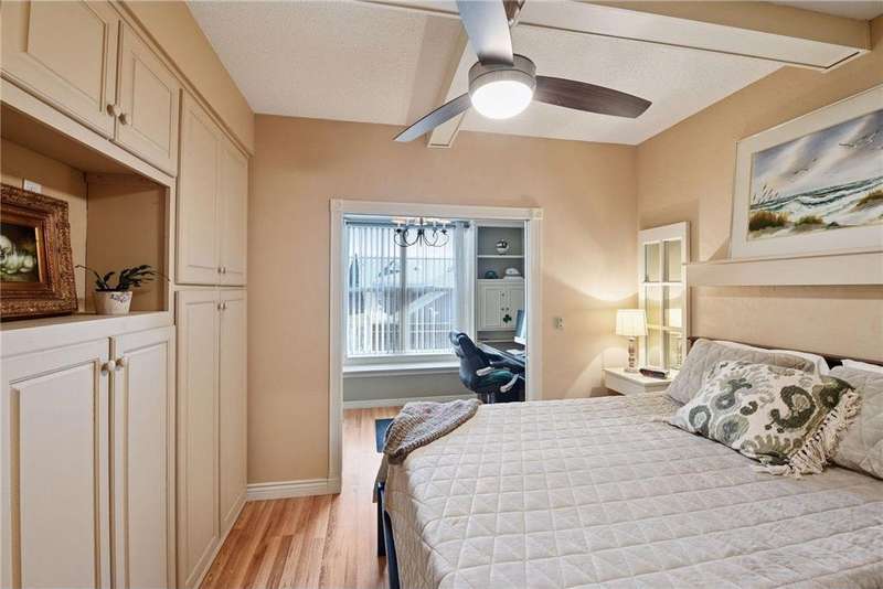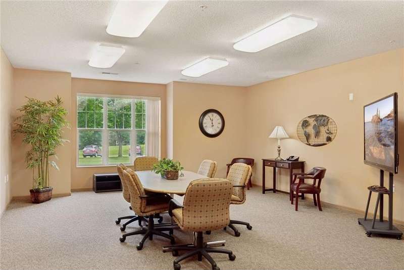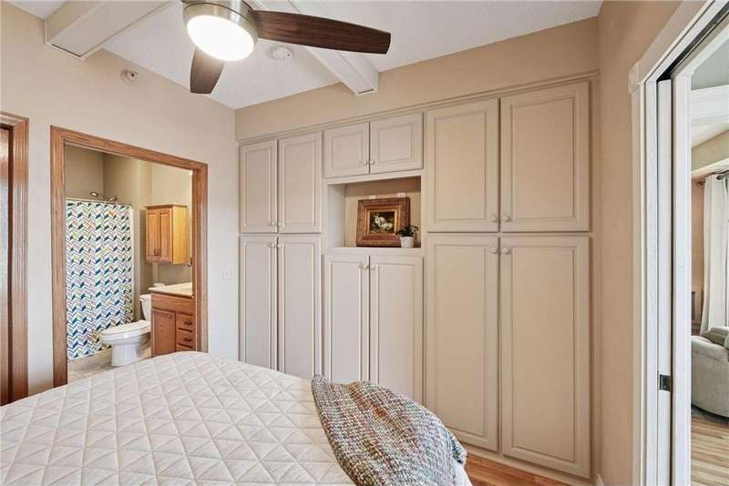 Come fall in love with Medina Ridge, an extraordinary 55+ Community offering exceptional quality, security & privacy on a beautifully landscaped 8.5 acre setting w/picturesque ponds & gardens. This one-of-a-kind, fully customized unit is a must-see! Ideally situated facing the front entrance, it offers a unique floor plan & thoughtful upgrades throughout. Rich wood laminate flooring, gorgeous beamed 9 ft ceilings, & extensive custom built-ins (including a murphy bed in the second bedroom) providing both charm, functionality & added storage! The living room boasts a striking stone fireplace and triple-wide sliding door to a delightful screen porch, perfect for relaxing. The beautifully expanded kitchen features white cabinetry, tiled backsplash, butcher block center island, stainless appliances & custom lighting. The primary suite is uniquely designed and includes a private 11x7 study/library, a large walk-in closet and an en-suite bath with a large shower. Every detail has been carefully curated for comfort, style & ease of living. Additional highlights include a large same-floor storage unit and a secured, heated garage space - valuable additions to condo living. Medina Ridge offers more than just a beautiful home - it's a lifestyle. Residents enjoy social gatherings, planned activities, and access to on-site amenities, all in a peaceful, maintenance-free environment close to shopping, dining & medical services. Don't miss your opportunity to own this exceptional & truly one-of-a-kind residence in one of the area's most desirable 55+ communities!