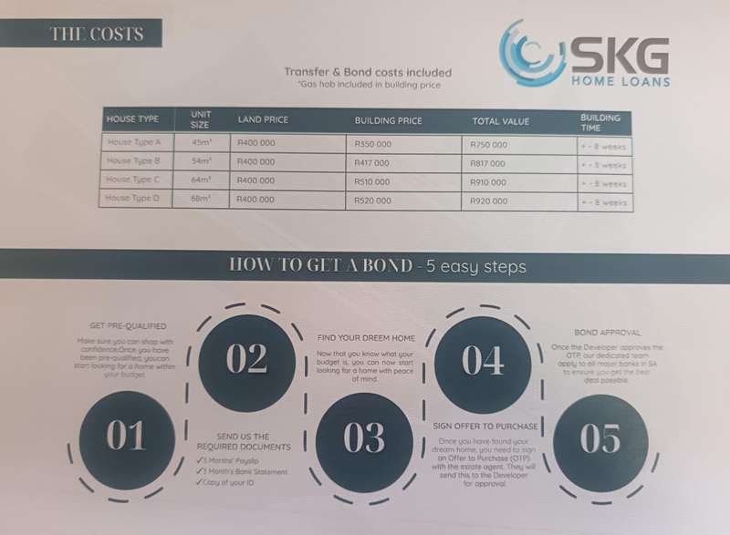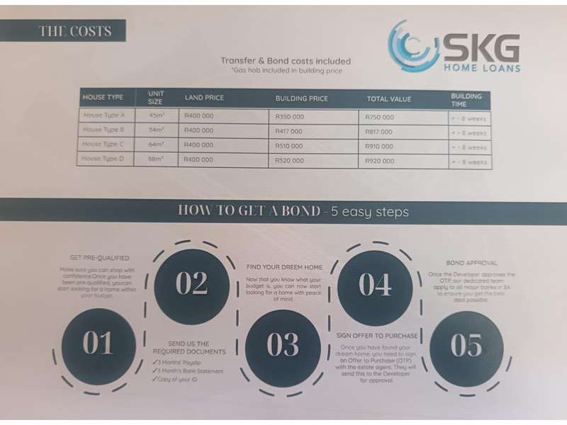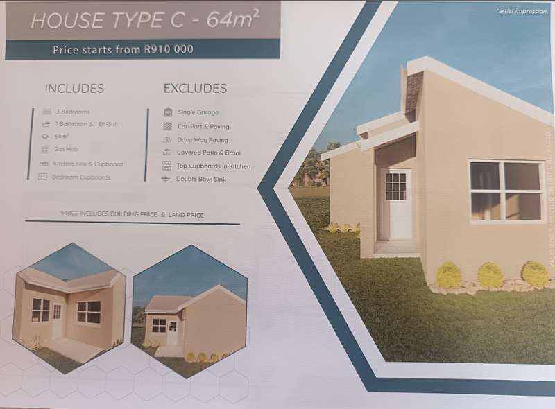 Welcome to a well maanaged full title complex in Amalinda. These very well priced plot and plan homes offer the great opportunity to choose a home layout which suites you best. House type A starts at R 750 000 and is 45 square meters in size. It includes 2 bedrooms, 1 bathroom, a gas hob, kitchen sink and cupboards and built-in-cupboards in the bedrooms. House type B is 54 square meters and starts at R 817 000 and includes 2 bedrooms, 2 bathrooms, one of which is an en-suite bathroom, a gas hob, kitchen sink and cupboard and built-in-cupboards in the bedrooms. House type C is 64 square meters and starts at R 910 000. This includes 3 bedrooms, 2 bathrooms, one of which is an en-suite bathroom, a gas hob, kitchen sink and cupboards and built-in-cupboards in the bedrooms. House type D is 68 square meters and starts at R 920 000. This includes 3 bedrooms, all with built-in-cupboards, 2 bathrooms, one of which is an en-suite, a gas hob, kitchen sink and cupboards. Optional extras on all house types include: - single garage - car port and paving - drive way paving - covered patio and braai - top cupboards in kitchen - double bowl sink
