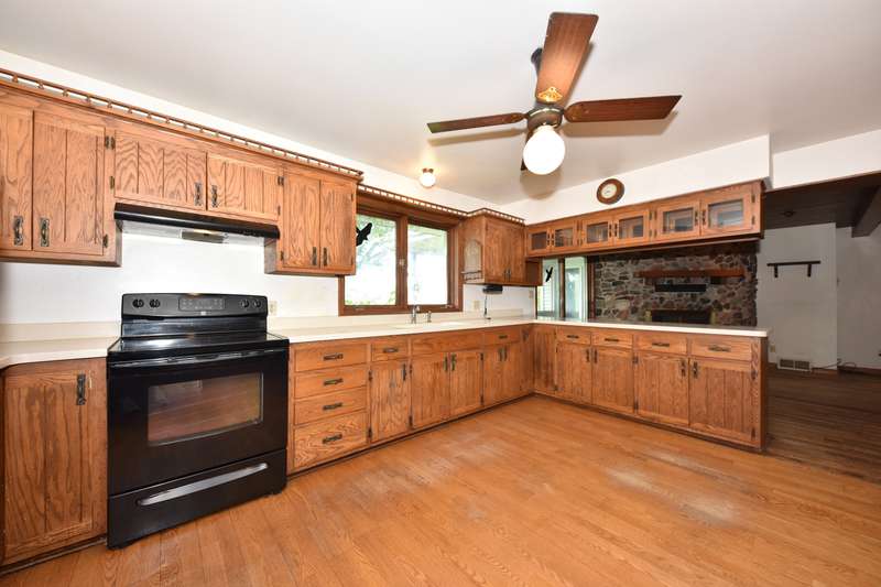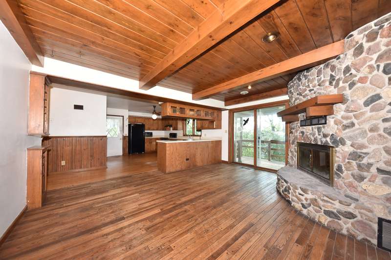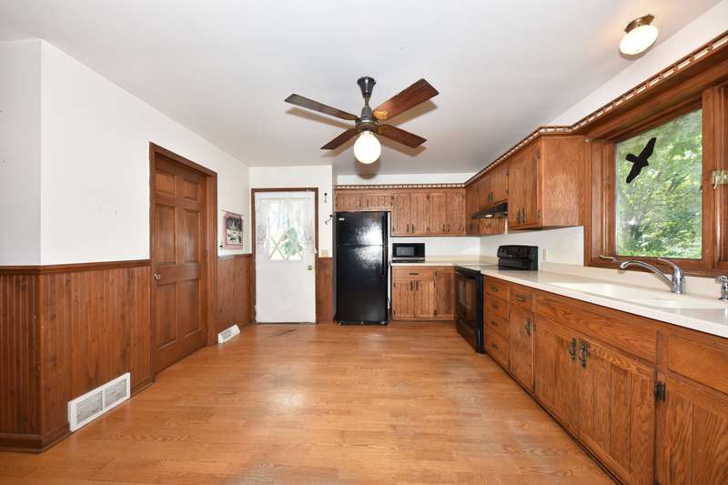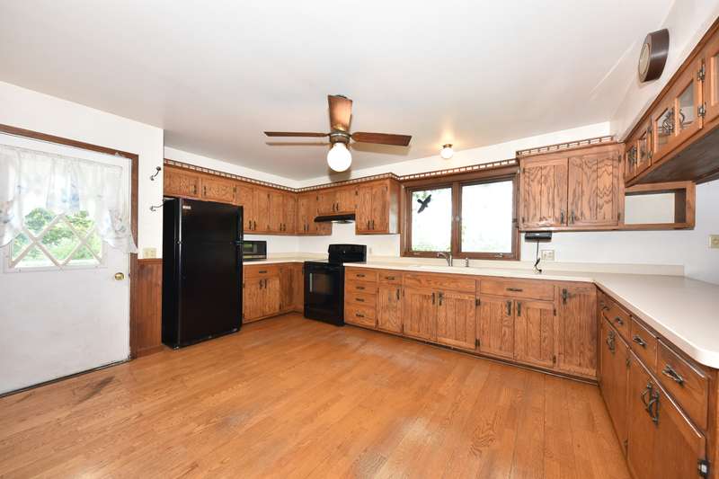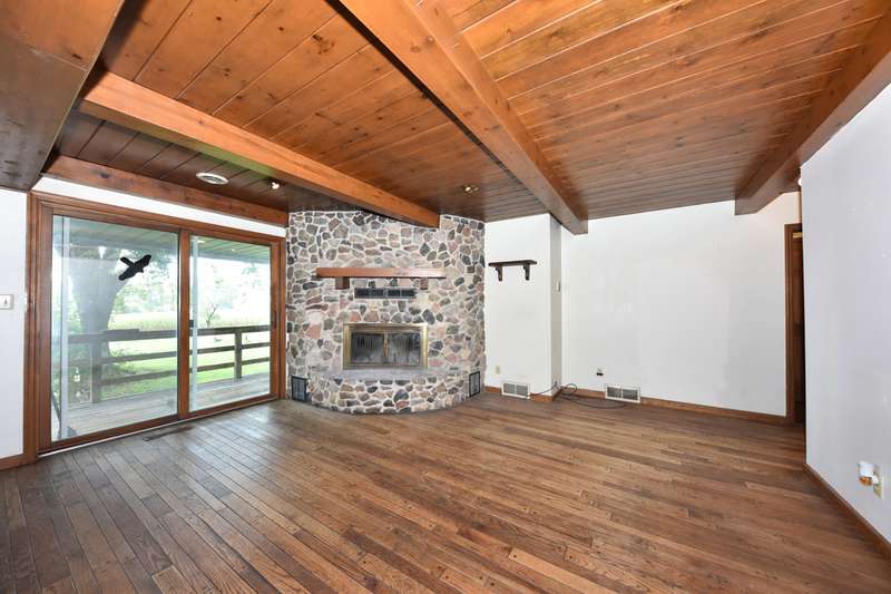 Set on 12.89 acres with a creek, this farmhouse features a 5 bedroom/3 bath unit and a 1 bedroom plus bonus room/1 bath unit, offering flexible living or rental potential. The spacious interior includes an open-concept kitchen/living area with stone fireplace, first floor laundry, and a main floor primary suite with walk-in closet and private bath. This addition completed in the 1990s. Furnace 2024 and 2015, roof 2017. Updated barn would be perfect for events. Metal pole building offers excellent storage. 5-car garage with concrete floors. Smokehouse and chicken coop included. Can be used as a duplex or single family home or possibly even a tri-plex.