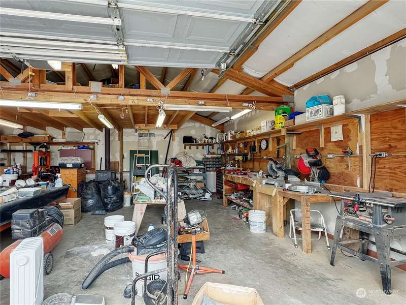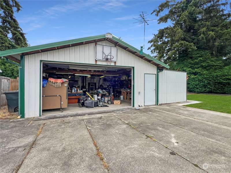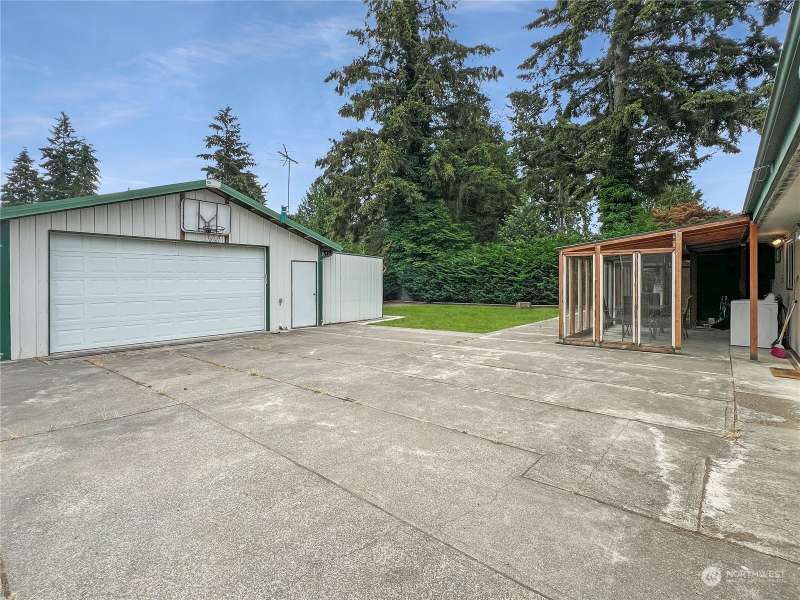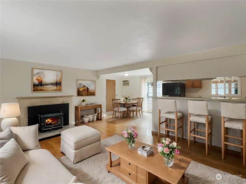 This lovely 4-bedroom, 2.5-bath rambler offers comfort and convenience. The highlight is the oversized garage with room for 4+ cars, perfect for a handyman or car enthusiasts, and a fully fenced, gated area providing secure parking for all your vehicles. Step inside to a bright great room with a cozy fireplace and bar area for entertaining. The kitchen features all the appliances. The serene primary BR boasts large windows offering a tranquil retreat including one other BR in the main area, with the addition of 2 BR each having private entries -3/4 baths. Enjoy easy access to the freeway, airport, Sound Transit, and nearby shops, dining, parks, and the waterfront. *Virtually Staged & Logs to be removed before closing.