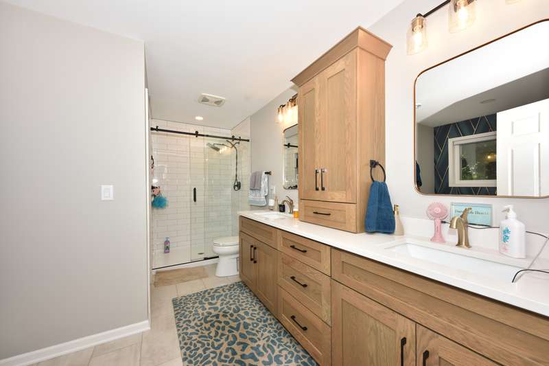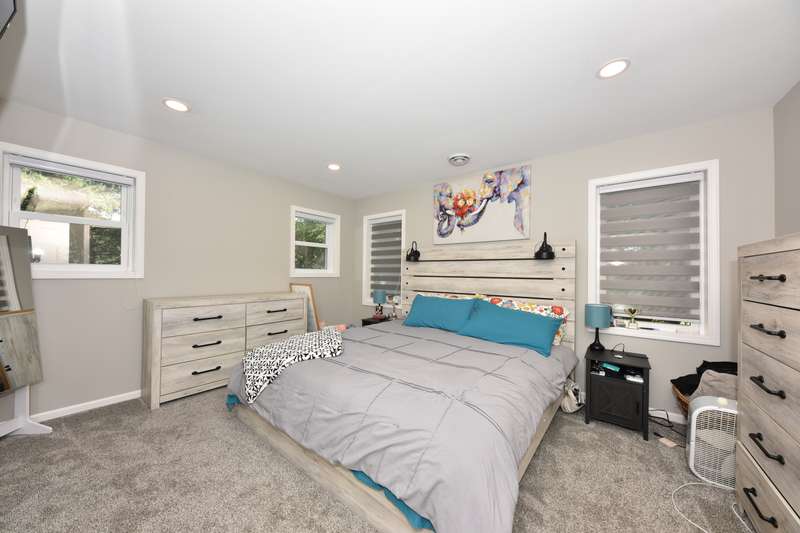 Huge 3 level house on nearly an acre wooded parcel is ready for it's next owner. Entire 2nd story added just 2 years ago with primary suite that has fantastic primary bath with tiled walk in shower + standalone tub, custom cabinets, and dual sinks + walk in closet. 2nd bedroom and 2nd full bath upstairs. Main floor former bed/bath wing converted into mother in law suite with small kitchen, living area, bedroom, closet, + full bath. Also on main floor is living room, remodeled kitchen (2021 & 2023) with appliances included, pantry, quartz counters, and island. Half bath and office complete the main. Lower level has bedroom with egress, office, rec room, full bath, and updated mechanicals. Outdoor includes 1 year old shed, newer playset, patio with trellis, firepit, all on a cul de sac setting with driveway + attached garage. Hamilton school district, 1 year home warranty included. Truly something to see, call today!