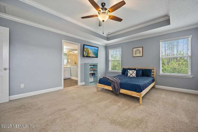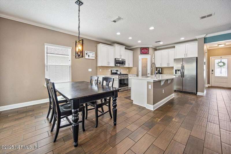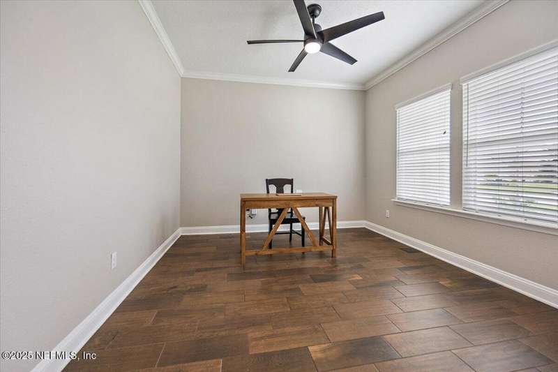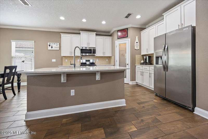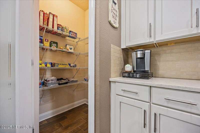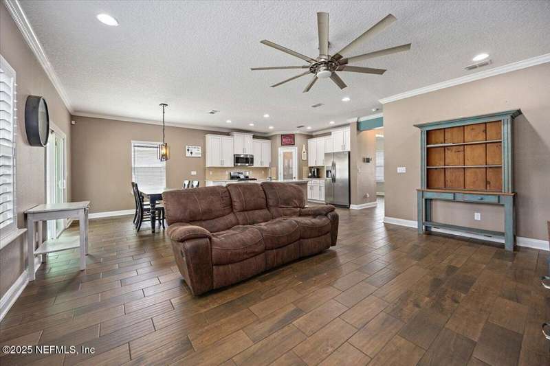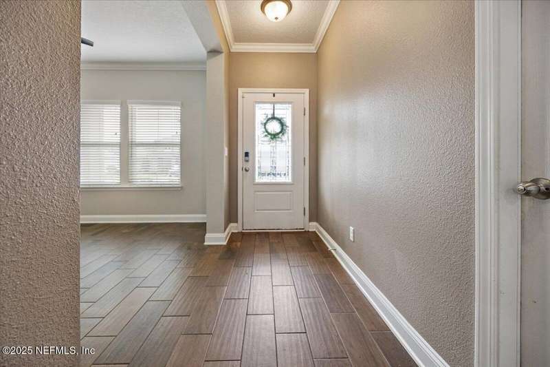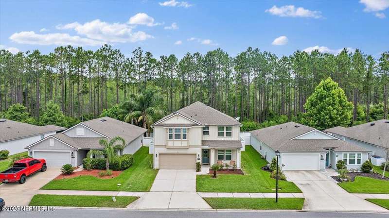 Live the Resort Style life, walk to Freedom Crossing K-8 Academy, Restaurants, Bagel and Ice Cream Shop, Community Pool & Gym. What more could you want!? This home has space for everyone and even has a ground level Guest Suite area. Sit on your Covered Front Porch or Enter this home to find a Flex Space/Office, Large Open Living Space Complete w/Wood Like Tile, Kitchen w/Large Food Prep Island, Gas Range, Tile Backsplash, Custom Glass Pantry Door, Quartz Counter looking out into the Living and Dining Space and the Screened Lanai, LARGE Privacy Fenced Backyard and Wooded Preserve - Second Level - Bedroom w/Full Bath, Hall Bath, Bedroom and Laundry, AMAZINGLY LARGE LOFT SPACE W/TRAY CEILINGS, and a Primary Suite w/Ensuite Bath and Spacious Walk-in Closet. Features: Gas Range and Tankless Water Heater, Extended Paver Patio w/Fire Pit, TV Mounts in place, Gate for Staircase and More!