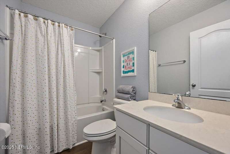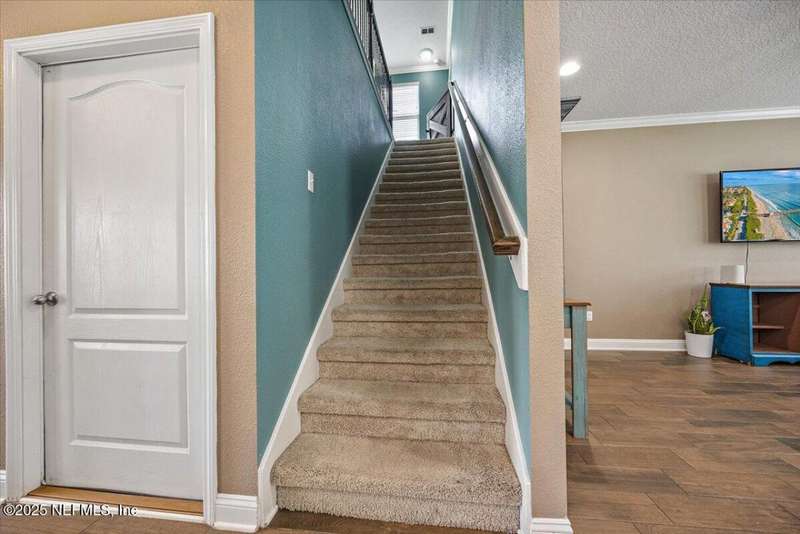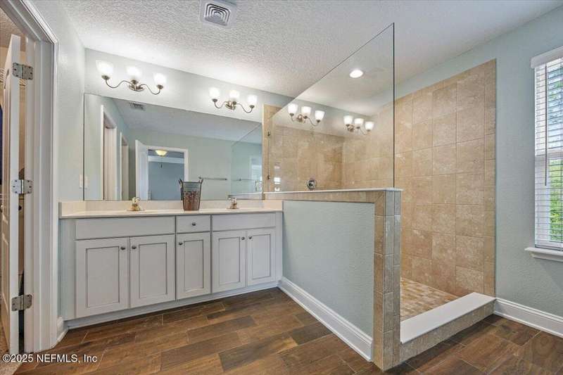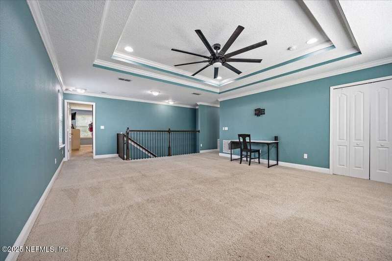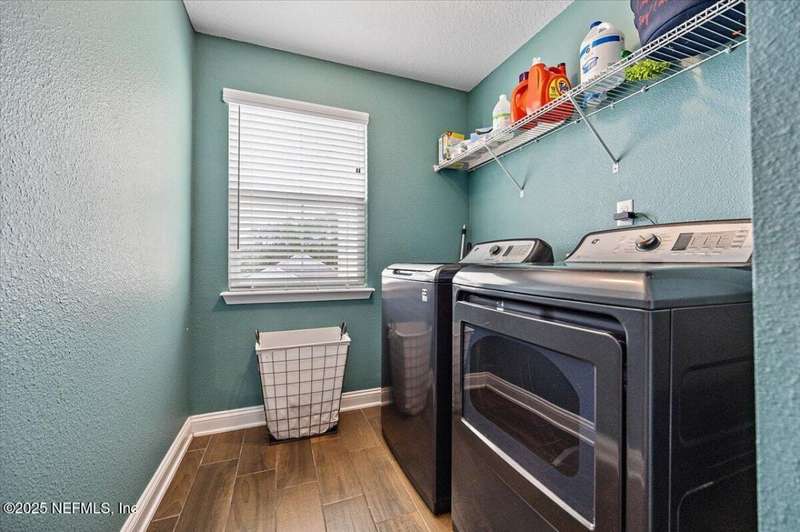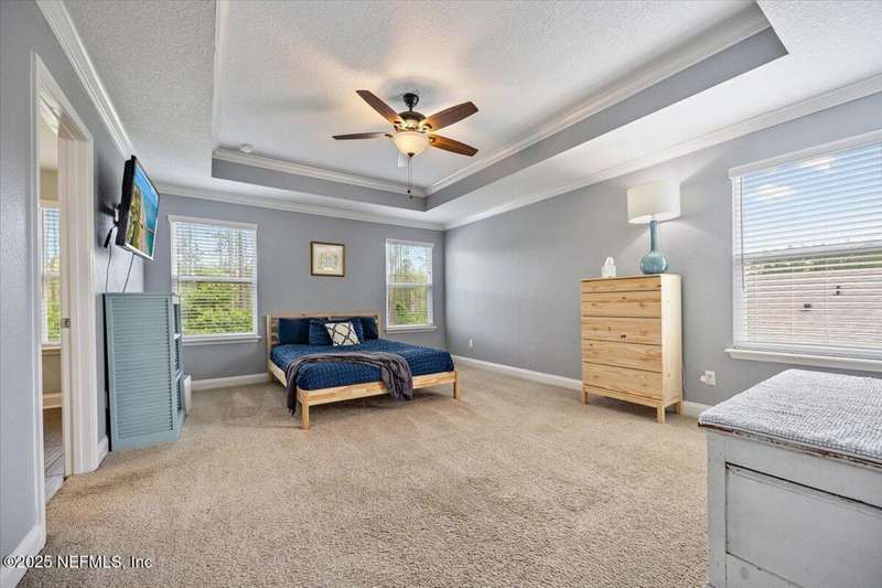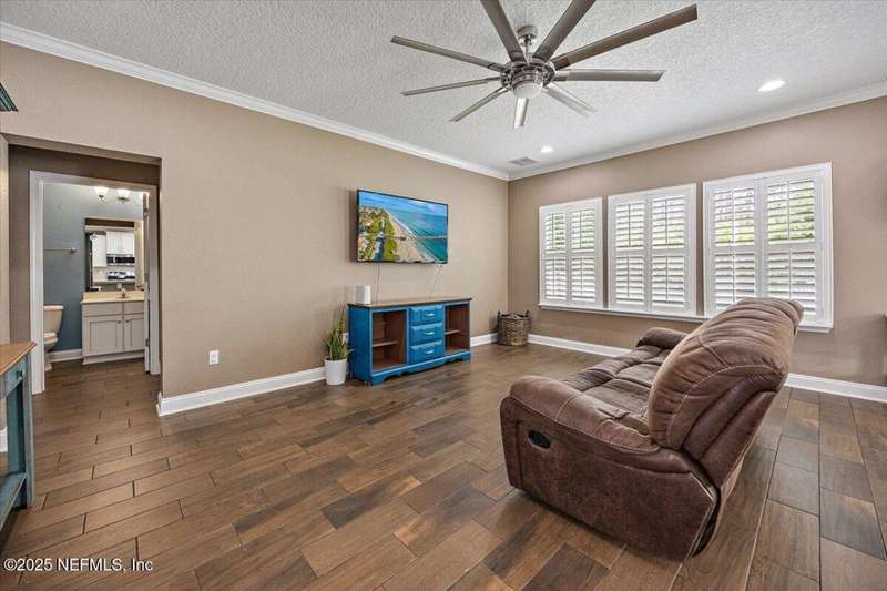 Live the Resort Style life, walk to Freedom Crossing K-8 Academy, Restaurants, Bagel and Ice Cream Shop, Community Pool & Gym. What more could you want!? This home has space for everyone and even has a ground level Guest Suite area. Sit on your Covered Front Porch or Enter this home to find a Flex Space/Office, Large Open Living Space Complete w/Wood Like Tile, Kitchen w/Large Food Prep Island, Gas Range, Tile Backsplash, Custom Glass Pantry Door, Quartz Counter looking out into the Living and Dining Space and the Screened Lanai, LARGE Privacy Fenced Backyard and Wooded Preserve - Second Level - Bedroom w/Full Bath, Hall Bath, Bedroom and Laundry, AMAZINGLY LARGE LOFT SPACE W/TRAY CEILINGS, and a Primary Suite w/Ensuite Bath and Spacious Walk-in Closet. Features: Gas Range and Tankless Water Heater, Extended Paver Patio w/Fire Pit, TV Mounts in place, Gate for Staircase and More!