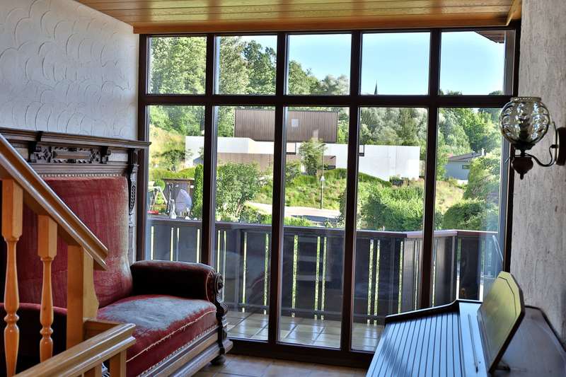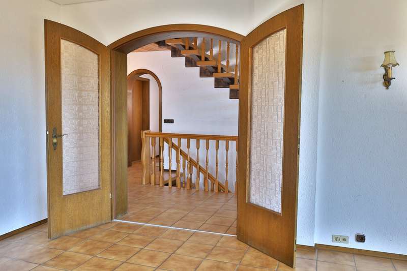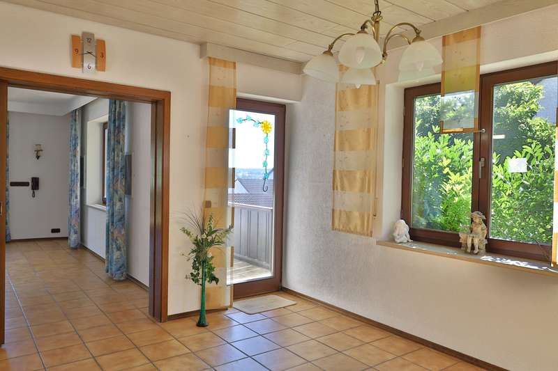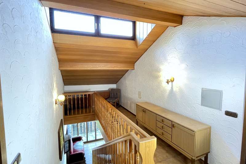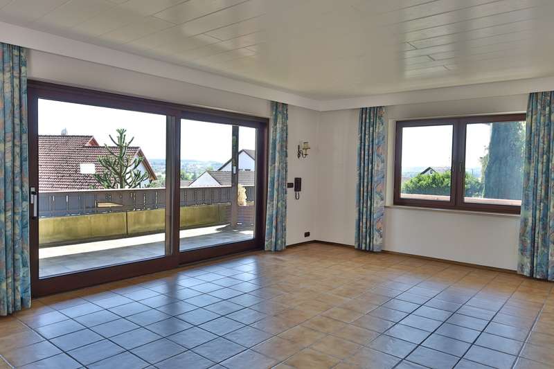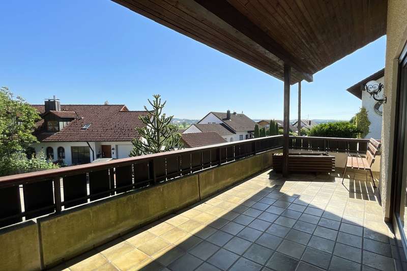 This spacious detached house stands in an attractive panoramic location in the immediate vicinity of Burgau - a very special home that was planned and built with high standards of aesthetics and craftsmanship. The house is located in a sought-after residential area of Konzenberg, in a very quiet location and yet well connected. The elevated position offers a wonderful view over the Mindel valley. A perfect retreat for anyone who wants to preserve the view of a rich cultural landscape in a quiet, natural setting. The property stands on a plot of approx. 902 m² in the middle of a carefully and lovingly landscaped garden. With a living space of approx. 157 m² spread over five well-designed rooms, the house offers a wide range of possible uses. It is in a very well-kept condition with no renovations worth mentioning. Only the oil heating was replaced a few years ago. The special feature: The central heating has a second burner that can be operated with logs. Large parts of the house have underfloor heating. The main rooms on the second floor are accessed via a spacious staircase, which is not only a circulation area, but also an attractive lounge and living space. The generously glazed area facing the balcony is particularly impressive with the tasteful flair of a high-quality conservatory and offers a wonderful place to relax. From the staircase, a generous double-leaf door leads to the heart of the house - the spacious, light-flooded living room. From here, a glazed sliding door leads to the large south and west-facing balcony. An ideal place to recharge your batteries or spend unforgettable hours in good company. The separate dining room can be opened up to the living room through a wide sliding door. The room also has an exit to the balcony, from which a spiral staircase leads to the garden. Next to the dining room is the small but practical kitchen with adjoining pantry. A narrow hallway leads back to the staircase. In addition to two bedrooms of different sizes, the main floor also offers a spacious bathroom with bath, shower, two washbasins and WC. Particularly practical: a separate guest WC, which can be accessed from the staircase via a small checkroom area. On the first floor, next to the main entrance, there is another bedroom with its own bathroom, which has a shower and WC. There is also a laundry room, boiler room and storage cellar. The entrance area leads directly to the large double garage and from there to a practical workshop area. The staircase offers a special retreat on the top floor, which is provided with daylight by its own window gable. Up here, two extremely spacious rooms are waiting to be converted into further living space. The special feature: Both rooms each have access to their own small balcony - one facing east into the greenery, the other with a wide view to the west over the Mindel valley. The three balconies, a terrace and the diversely designed garden offer numerous outdoor retreats - whether for sunbathing, relaxing or socializing with family and friends. The lovingly landscaped garden is a special highlight, with secluded spots that invite you to dream and enjoy.