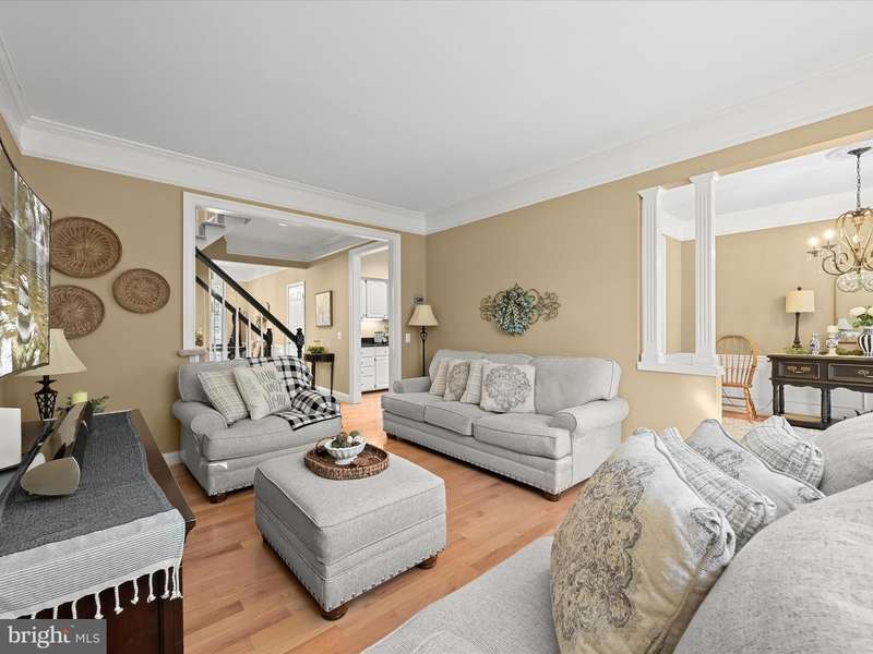 This beautifully appointed three-level brick-front townhome combines timeless design with a sought-after Ellicott City location. Set against a peaceful backdrop of mature trees, this residence offers the perfect balance of comfort, functionality, and convenience. A welcoming foyer opens to a spacious living room filled with natural light from the atrium door and transom window above. Elegant details such as crown molding, box wainscoting, and gleaming hardwood flooring flow throughout the main level, creating a cohesive and polished look. The separate dining room connects seamlessly to both the living area and kitchen, an ideal setup for entertaining or everyday living. The kitchen blends style and practicality with white cabinetry featuring roll-out shelves, granite countertops, stainless steel appliances including a gas range, and a pantry for additional storage. From casual breakfasts to evening gatherings, this space effortlessly adapts to any occasion. Upstairs, three inviting bedrooms each boast vaulted ceilings that enhance their open, airy feel. The primary suite offers a walk-in closet complete with a built-in organization system and a private bath with a skylight, double sink vanity, soaking tub, and separate shower. Two additional bedrooms share a full hall bath, while the conveniently located upper-level laundry room adds everyday ease. The lower level expands the living space with a sprawling family room featuring a cozy fireplace and wet bar, perfect for movie nights or hosting guests. A half bath and a utility room with storage complete this versatile level. Step outside to enjoy a serene backyard area that backs to trees, offering a peaceful retreat for outdoor relaxation. Additional highlights include a one-car garage with a driveway and nearby guest parking. The prime location places you just minutes from shopping, dining, and entertainment, as well as major commuter routes including US-29, I-70, I-95, and MD-100. Howard County schools, the Meadowbrook Athletic Complex, and the scenic trails of Patapsco Valley State Park are all nearby. Explore the charm of Old Ellicott City with its boutique shops, inviting restaurants, and year-round community events, all just a short drive away. Blending thoughtful updates with an unbeatable setting, this townhome offers the lifestyle and location you've been looking for.