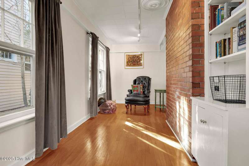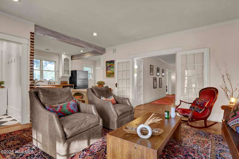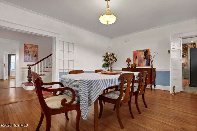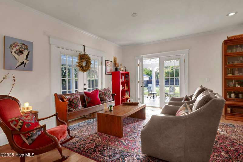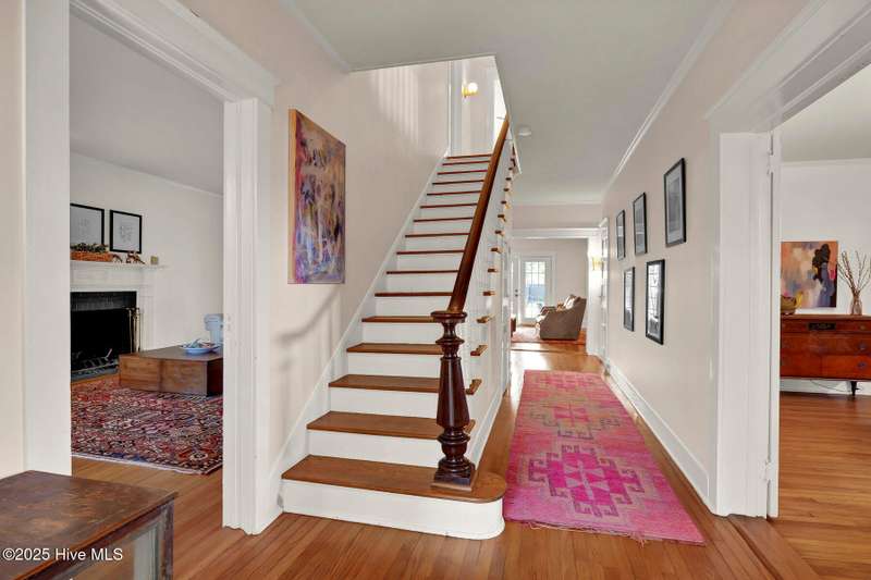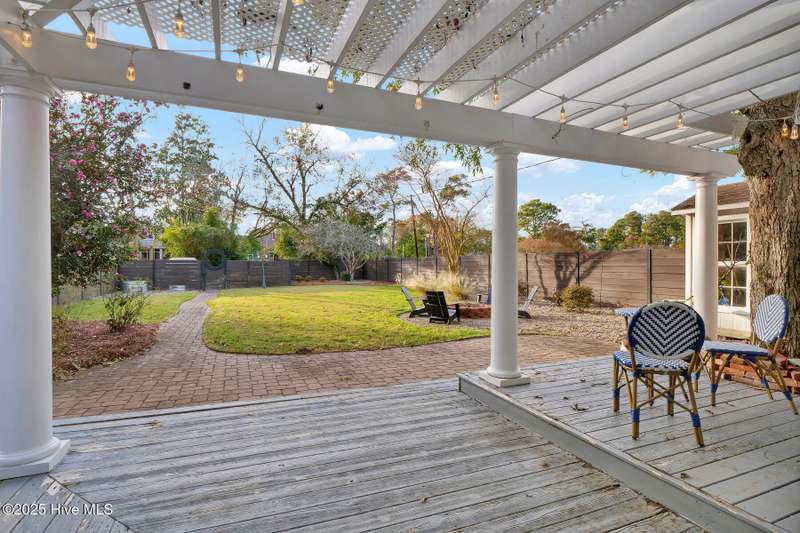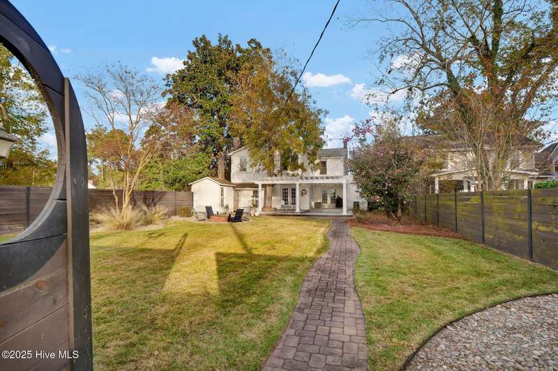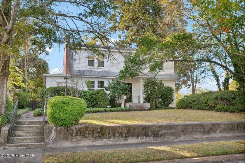 Welcome to this timeless home in the heart of Carolina Heights, one of Wilmington's most picturesque and beloved neighborhoods. With 3,050 square feet, a flexible layout, and a beautifully landscaped deep lot with rare privacy, this 4-bedroom, 3.5-bath home blends classic character with thoughtful modern updates and an easy, light-filled flow. A previous restoration preserved the original hardwood floors and architectural details while opening the floor plan in all the right places. The kitchen, dining, and den connect seamlessly, framed by multiple sets of French doors that bring in beautiful natural light. The kitchen features exposed brick detailing and warm butcher-block counters, adding a subtle texture that feels true to the home's roots. A main-floor powder room, which is hard to find in homes of this era, offers welcome convenience. Step outside onto the tri-level deck overlooking the expansive, fenced backyard. The yard features irrigation and plenty of room to garden, play, host, or simply exhale. Downtown lots this generous and this private hardly ever come along. Upstairs, you'll find something truly special for a home of this age. There are three full bathrooms and a large, true laundry room just steps from all the bedrooms, providing function families deeply appreciate. The primary suite offers more space than expected for the period, with an ensuite bath and two closets. Additional conveniences include a welcoming mudroom and drop zone near the back entry and off-street parking with alley access. Carolina Heights remains one of Wilmington's most loved neighborhoods for its tree-lined streets, gracious homes, and long-established appeal. Its cinematic good looks have landed it in several productions over the years. And just a few blocks away lies the vibrant Soda Pop District, with coffee shops, restaurants, breweries, creative studios, and more.