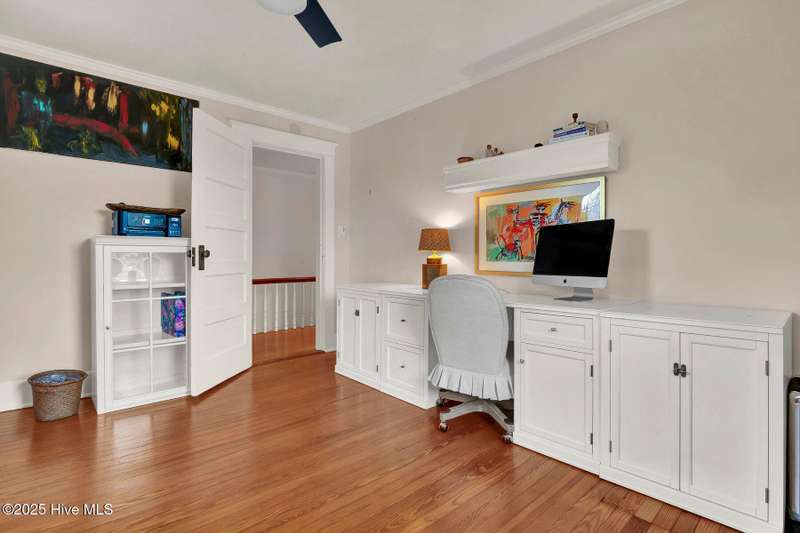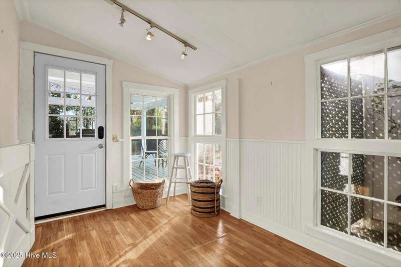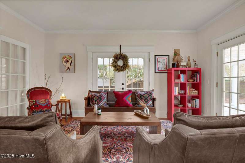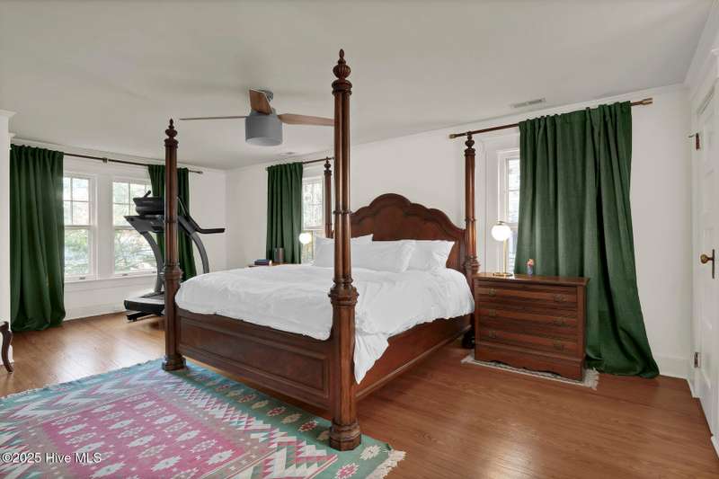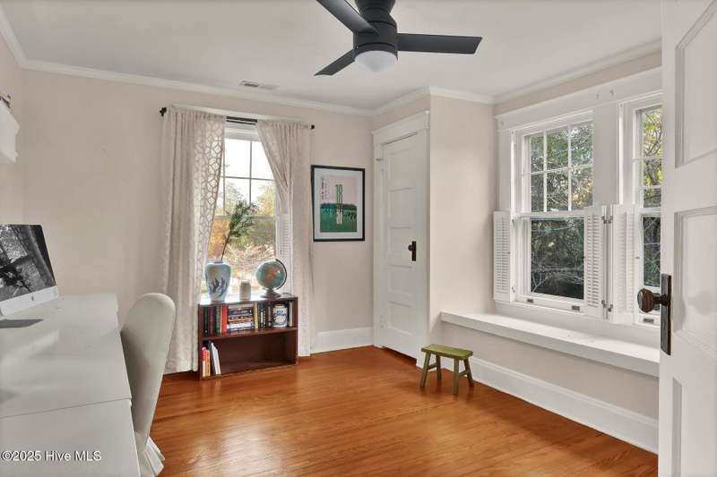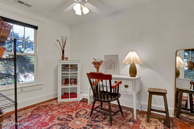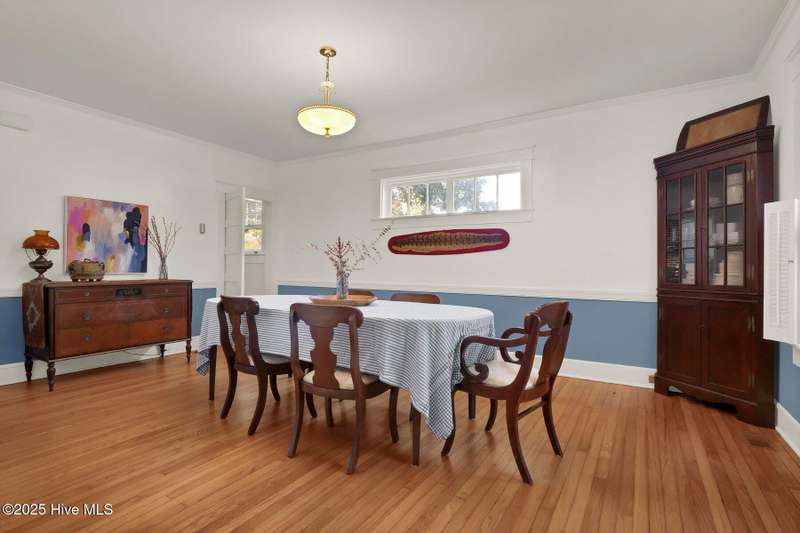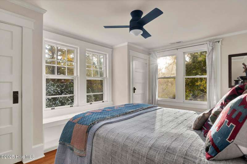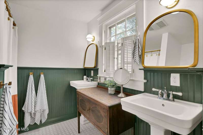 Welcome to this timeless home in the heart of Carolina Heights, one of Wilmington's most picturesque and beloved neighborhoods. With 3,050 square feet, a flexible layout, and a beautifully landscaped deep lot with rare privacy, this 4-bedroom, 3.5-bath home blends classic character with thoughtful modern updates and an easy, light-filled flow. A previous restoration preserved the original hardwood floors and architectural details while opening the floor plan in all the right places. The kitchen, dining, and den connect seamlessly, framed by multiple sets of French doors that bring in beautiful natural light. The kitchen features exposed brick detailing and warm butcher-block counters, adding a subtle texture that feels true to the home's roots. A main-floor powder room, which is hard to find in homes of this era, offers welcome convenience. Step outside onto the tri-level deck overlooking the expansive, fenced backyard. The yard features irrigation and plenty of room to garden, play, host, or simply exhale. Downtown lots this generous and this private hardly ever come along. Upstairs, you'll find something truly special for a home of this age. There are three full bathrooms and a large, true laundry room just steps from all the bedrooms, providing function families deeply appreciate. The primary suite offers more space than expected for the period, with an ensuite bath and two closets. Additional conveniences include a welcoming mudroom and drop zone near the back entry and off-street parking with alley access. Carolina Heights remains one of Wilmington's most loved neighborhoods for its tree-lined streets, gracious homes, and long-established appeal. Its cinematic good looks have landed it in several productions over the years. And just a few blocks away lies the vibrant Soda Pop District, with coffee shops, restaurants, breweries, creative studios, and more.