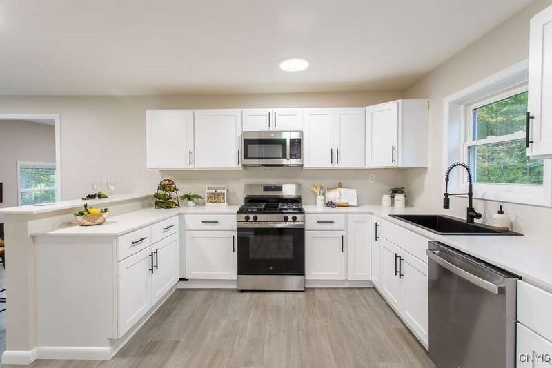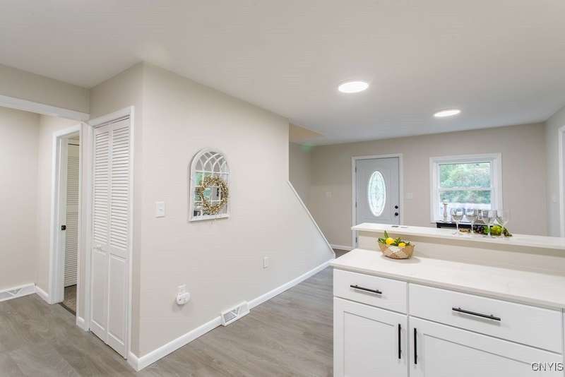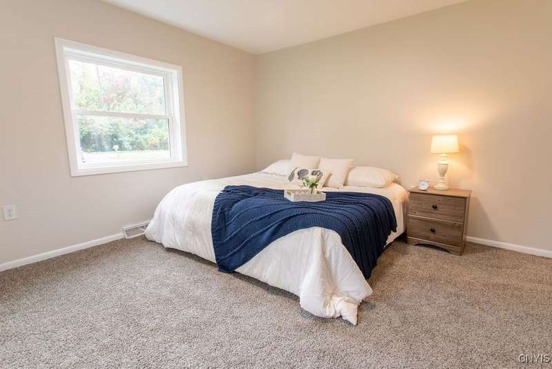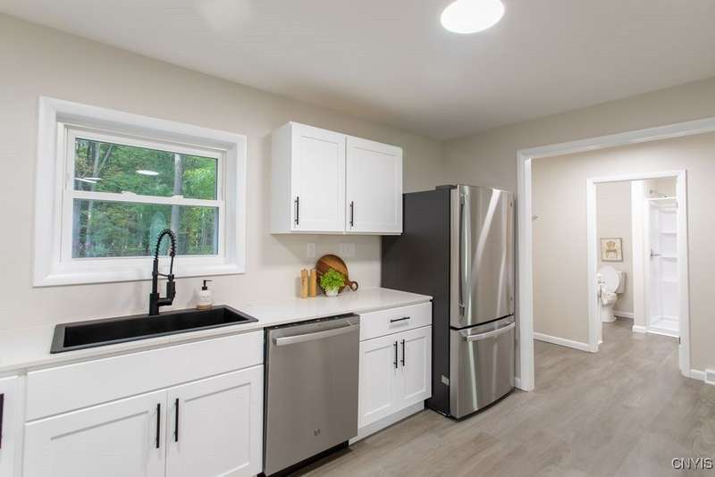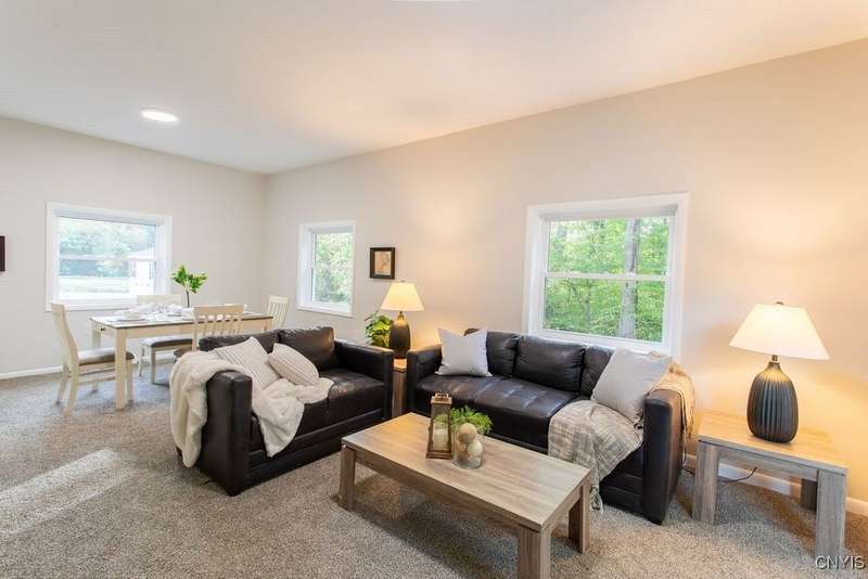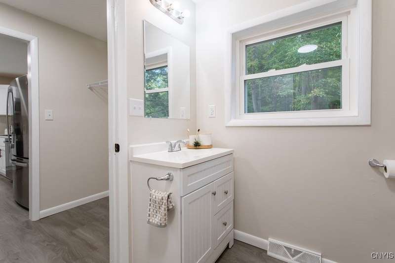 WOW! NOW OFFERED WITH BRAND NEW DRIVEWAY! Welcome to this charmingly beautiful, fully rebuilt 4 bed 2 full bath slice of heaven on around an acre of wooded land just outside the Village of Baldwinsville! BRAND NEW ROOF, new siding, new vinyl windows, NEW FURNACE, tankless on-demand hot water system, UV water treatment, new LVT flooring and wall-to-wall carpeting throughout, new kitchens and bathrooms, including matching stainless steel appliances, quartz countertops, sliding glass door leading out to a new deck overlooking the tranquil backyard? this one has to be seen to be believed! First floor laundry hookups mean never having to go into a basement to do laundry, large first floor bedroom with full bathroom right across the hall means one floor living is possible in this home, and three bedrooms upstairs all freshly carpeted. New, double-wide asphalt driveway with turnaraound, brand new matching shed for additional storage, new gutters and smartly designed water management systems, the list goes on and on! Baldwinsville school district. Don't delay, make an appointment to come see this one with your favorite local real estate agent today!