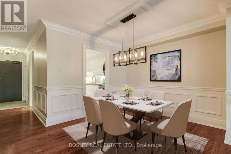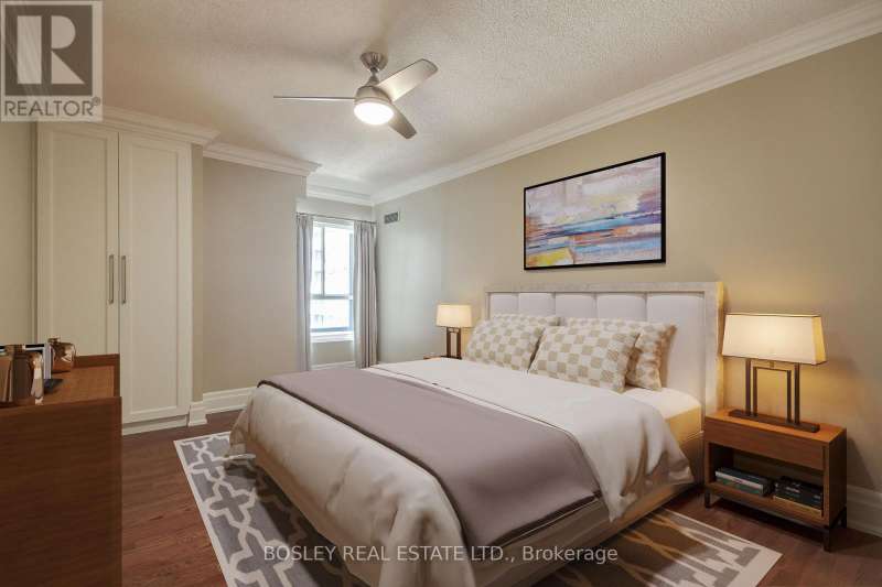 Beautifully renovated 2-bedroom, 2-bathroom condo nestled in a quiet, well-maintained building known for its generously sized residences and peaceful ambiance. Thoughtfully updated with timeless elegance, this spacious suite offers refined living with meticulous attention to detail throughout. Foyer entrance with custom closets and in-suite storage room. The renovated kitchen is a standout feature, boasting high-quality appliances, quartz countertops, stone backsplash, under-cabinet lighting and ample cabinetry. Adjacent to the kitchen, a separate formal dining room is enhanced by an elegant light fixture, ideal for hosting intimate gatherings. The suite features a sunken living room that adds architectural interest and a sense of openness, enhanced by rich hardwood flooring throughout. Classic touches such as crown moulding, high baseboards, and wainscoting elevate the space with a sense of sophistication. The large primary bedroom is a true retreat, complete with a bright solarium, double custom closets and a 4-piece ensuite. The second bedroom with custom closet offers generous space and comfort, ideal for guests, a home office, or family. Additional features include in-suite laundry, a dedicated storage room, and a 3-piece bathroom with large shower. Two bright and spacious solariums with custom blinds extend the living space, ideal for use as a home office, reading room, or intimate sitting area. Excellent location near Queens Park, Hospitals, University of Toronto, Yorkville, Stores, Restaurants and just one block from subway. Amenities include Indoor swimming pool, Roof top terrace, Gym, Squash court, Party/meeting room, Underground visitor parking. 24-hour concierge. No pets building. (id:7434)