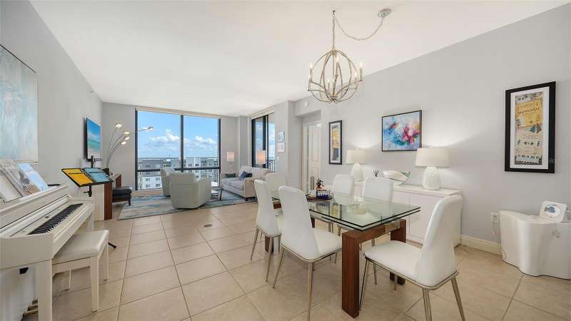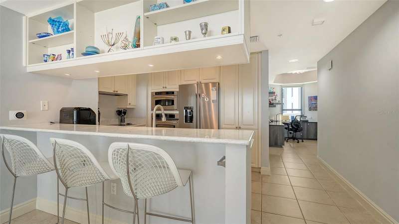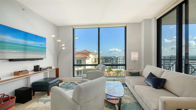 Lavish boutique living in the heart of Downtown Sarasota awaits at the Plaza at Five Points. This tastefully updated, turnkey 2-bedroom, 2-bath condo residence, with a covered lanai/balcony, offers city living with refined style and comfort. A spacious entry foyer with a dedicated office nook provides a practical and welcoming first impression—ideal for year-round living or a stress-free seasonal retreat. The kitchen features sleek quartz countertops and newer, high-quality appliances. The primary en-suite bedroom showcases beautiful city views, a California-style walk-in closet, and access to the private lanai. The guest bedroom is generously sized and offers equally charming downtown vistas. The lanai is accessible from both the living room and the primary bedroom, providing a seamless indoor-outdoor flow. Additional features include two deeded garage parking spaces conveniently located near the lobby, and a private storage room. Building security includes controlled access at all entry points and elevators, ensuring peace of mind. Enjoy an elevated lifestyle with luxurious amenities including front desk concierge service, front desk steward, valet parking, rooftop heated pool and spa, outdoor grilling area, cabana with gazebo, a well-equipped fitness center, community room with catering kitchen and fireplace, conference room, and a guest suite available for weekly reservations. Step out of your lobby into Sarasota’s vibrant arts and entertainment district. Just a short stroll to the Sarasota Opera House, theaters, live music venues, art galleries, eclectic shopping, and top-rated dining. Whole Foods is around the corner for added convenience. The Bayfront and Marina Jack are just minutes away, offering a variety of boating and waterfront activities. Easy access St. Armands Circle, Lido Beach, Longboat Key, and world-renowned Siesta Key Beach. The Sarasota-Bradenton International Airport, Selby Botanical Gardens, Van Wezel Performing Arts Center, and the Asolo Repertory Theatre are all within a short drive. The building performs like a champ during hurricanes and storms. Residences with this floor plan in ‘The Plaza at Five Points’ are rarely available—schedule your private or virtual showing today. Vacant and easy to show.