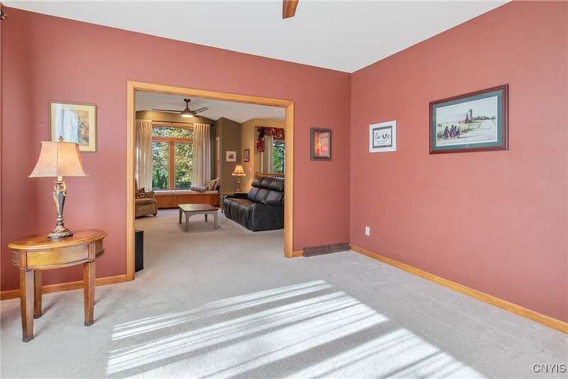 127 Creekview Path is conveniently located off Fyler Rd in the Town of Sullivan, East Syracuse-Minoa Schools. Commuters can choose to take Kirkville Rd or Route 298 to conveniently access I-481 making commuting to downtown Syracuse and area hospitals super easy. A quick trip down N Kirkville Rd with take you to Green Lakes State Park in minutes! You'll love every inch of this 3 bedroom, 2.5 bath timeless transitional featuring glistening hardwood flooring, vaulted ceilings in family room and primary bedroom, formal dining room with wainscot rail, country eat-in kitchen with Corian tops on natural wood cabinetry, formal living room, first floor office, first floor laundry and two story grand foyer. The homesite is over an acre with 163' of waterfront on Chittenango Creek offering you ultimate privacy, campfire entertainment, and some good old fishing! Municipal water and natural gas serve the home. Your back yard is completed with a huge private deck and a spaciuos storage shed. The features are endless and the important updates are complete such as a new architectural shingle roof in 2022. There's nothing to do but move in and enjoy your new home! Come Explore the Possibilities!
