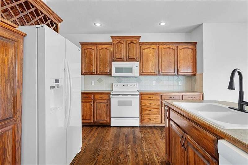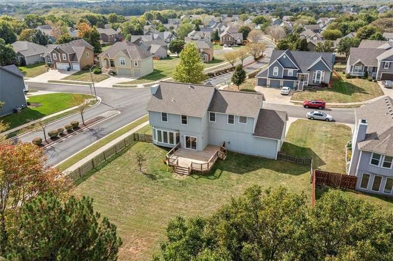 Spacious 2-story home in the desirable Eagle Creek community! This 4-bedroom, 2 full and 2 half bath home offers hardwood floors on the main level, newer interior paint, and a kitchen with pantry and pull-out shelving. Finished basement with half bath provides great flex space. Three of the four bedrooms include walk-in closets. Laundry Room on bedroom level. Enjoy outdoor living on the large deck overlooking the fenced yard, tucked in a quiet cul-de-sac. Expanded 3-car garage provides extra storage or hobby space. Community amenities provide outdoor experiences for all the family and include two neighborhood pools, recreation area, playground, friendly neighborhood events natural areas and walking trails throughout connecting to an onsite 26-acre city park. Conveniently located with easy access to just about anything you might need. This is Lee's Summit living at its finest!