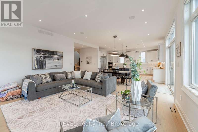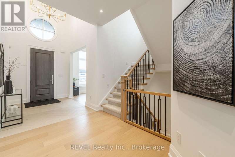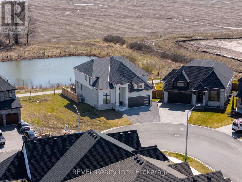 Luxury, style, and modern convenience define this stunning 2-storey stone & stucco home, built in 2022 and backing onto a tranquil retention pond. Thoughtfully designed with high-end finishes, this home boasts engineered hardwood flooring on the main and second floors, soaring ceilings, and oversized windows that flood the space with natural light.The open-concept main floor is perfect for both everyday living and entertaining. The spacious living room features an electric fireplace, while the chefs kitchen is a showstopper with extensive cabinetry, an oversized island with additional storage and seating, built-in appliances, and a striking herringbone backsplash. A butlers pantry with a prep sink adds functionality. A private office, 2-piece bath, and a mudroom with rear yard access complete this level.Upstairs, the primary suite offers dual walk-in closets and a spa-like 5-piece ensuite with a soaker tub and glass shower. Three additional bedrooms provide ample spaceone with a private 3-piece ensuite and walk-in closet, while the other two share a Jack & Jill 5-piece bath. A second-floor laundry room adds convenience.The finished basement (awaiting ceiling completion) features heated floors, a large rec room, oversized windows, and a 3-piece bath. This home is fully equipped with a built-in speaker system inside and out, a security camera system, and a sprinkler system for effortless lawn care.Outside, enjoy the fully fenced pie-shaped lot with a raised composite deck, perfect for entertaining. A oversized 2.5 car garage and a prime location in a growing Niagara Falls subdivision, close to shopping, amenities, and major highways make this home an exceptional opportunity. (id:7434)