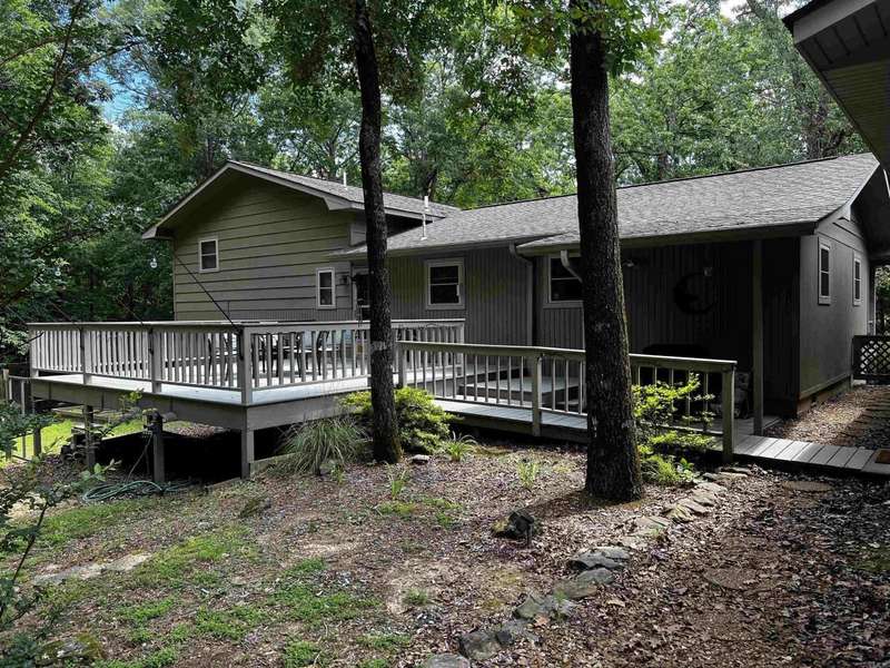 Updated home with separate living quarters located near the south shore of Greers Ferry Lake, community lake access, property has a 3 bed room 2 bath main residence of 1600 sf with large private back deck to gather and grill on, stone fireplace with gas logs that serves as the centerpiece of the great room. Kitchen was updated in 2024 with granite counter tops and new stainless appliances, living quarters is approximately 805 sf and could serve as in-law quarters or bunkhouse, game room, home office or man cave. Complete with its own entrance, kitchen, large bedroom & full bathroom, home has a kohler whole house generator and area for small garden, all on just under 3 acres
