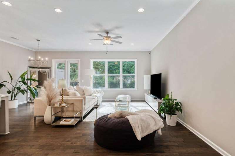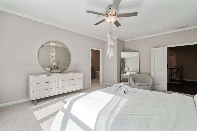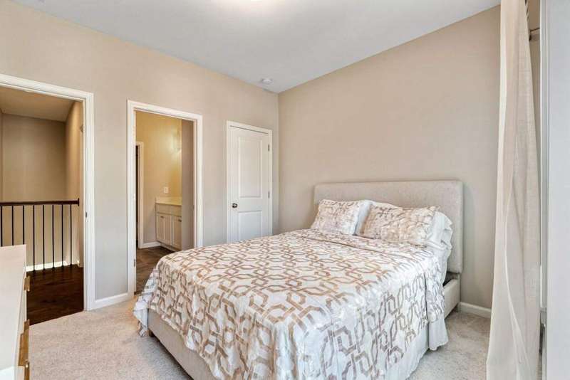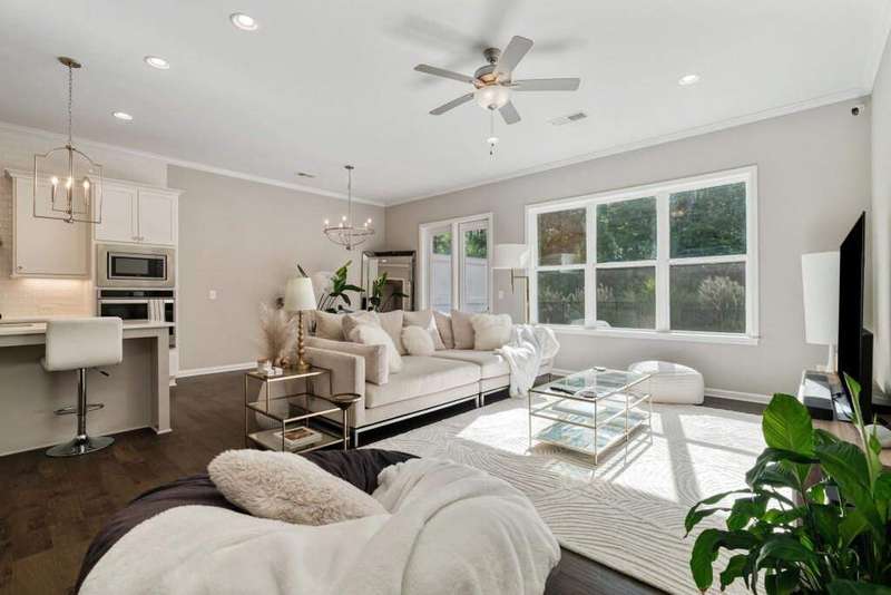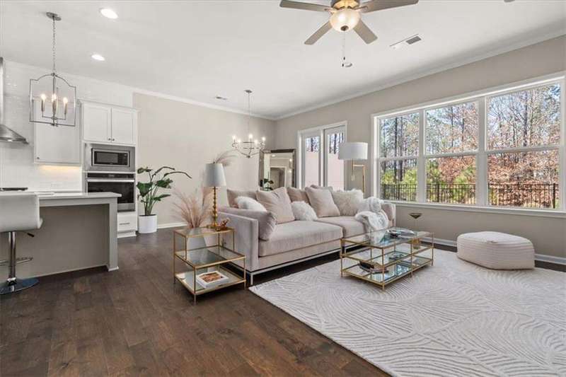 Glamorous townhome in sought after Harlow West. The gated community of Harlow West offers resort-style amenities featuring a clubhouse, two pools with cabanas, tennis & pickleball courts, dog park, green spaces and walking trails. This 3 bed 2.5 bath home boasts tons of natural light, open floor plan and easy low maintenance living. Gourmet kitchen with oversized quartz island, SS appliances, gas cooktop and dry bar. Kitchen overlooks spacious living room with views to the beautifully manicured private fenced backyard. Upper level oversized primary suite. Spa like primary bath includes dual sinks, soaking tub, frameless glass shower and walk in closet. 2 secondary bedrooms and full bath. Just minutes to Downtown Roswell, Downtown Alpharetta, Avalon, GA-400 and within walking distance to Ameris Bank Amphitheatre. This immaculately maintained home is turnkey and ready for the most meticulous buyer.
