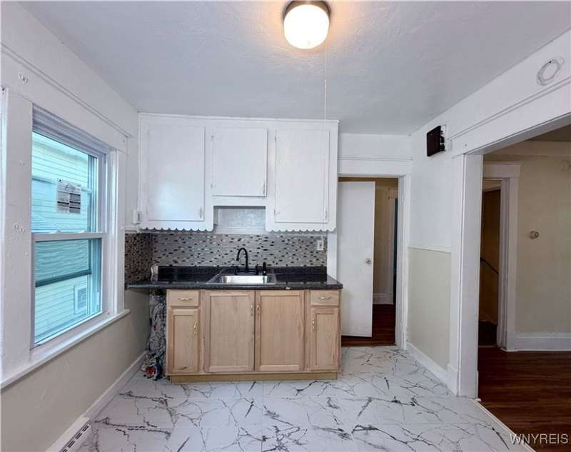 Welcome to this move-in-ready, recently renovated single-family house in Buffalo. Conveniently situated within minutes of I-90 Highway, Galaria Mall, UB South Campus, and easy access to the airport and downtown Buffalo..This lovely residence is calling to its new owner with a spacious living room complemented, a formal dining room, an eat-in kitchen, three bedrooms, one bathroom and an additional sitting area located on the upper level.The recent updates include the following:- Tiles installed in the kitchen and bathrooms.- Fresh paint applied throughout the house.- New flooring installed on first floor, the stairwell and upstairs bedrooms.- Several brand-new replacement windows.- Installation of a new roof on the house and garage in 2025. - New hot water tank was installed in 2025- Freshly painted dry basement can serve as ample storage space. The multi-car driveway offers peace of mind for safe parking. The spacious garage presents an excellent opportunity for additional parking, storage, or it can be transformed into a workspace for craftsmanship. Showings are available immediately. Offers will be reviewed as they come in.Thank you!