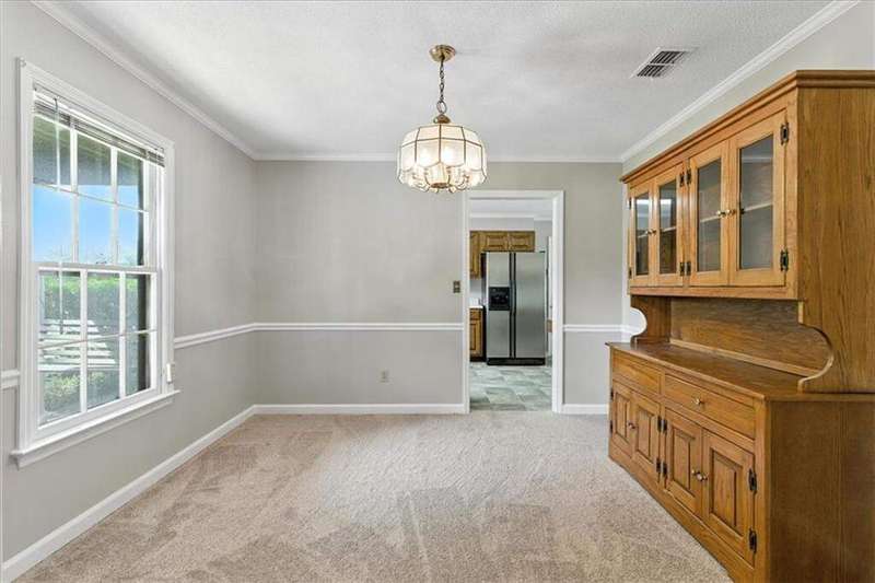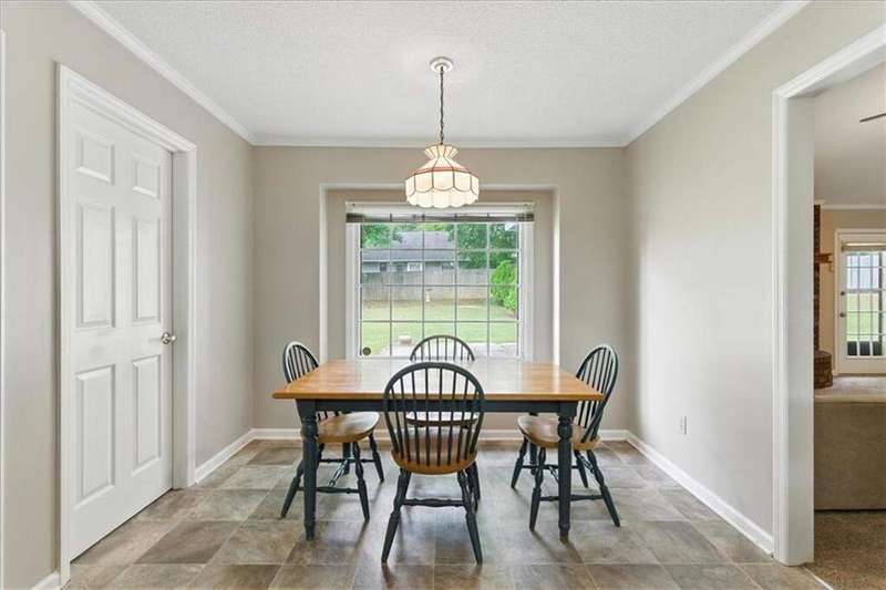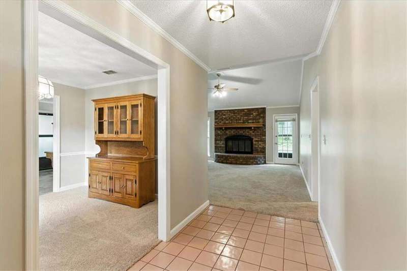 Charming one-level ranch in the desirable Northwoods Subdivision, located in the Armuchee School District. This home sits on a spacious corner lot and features a full-length covered front porch with two swings-perfect for relaxing evenings. Step inside to a welcoming foyer that opens to a vaulted living room with a cozy fireplace. The kitchen includes a sunny breakfast area and connects to a separate dining room for more formal gatherings. Down the hall are three bedrooms and two full baths, including an owner's suite with a walk-in closet. Out back, enjoy the patio and a handy storage shed.