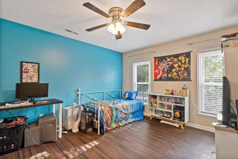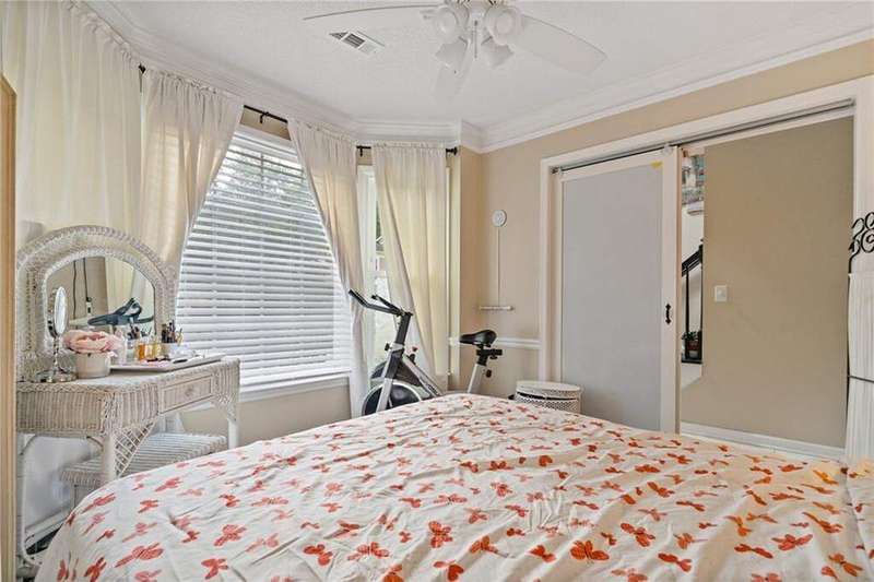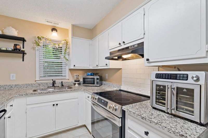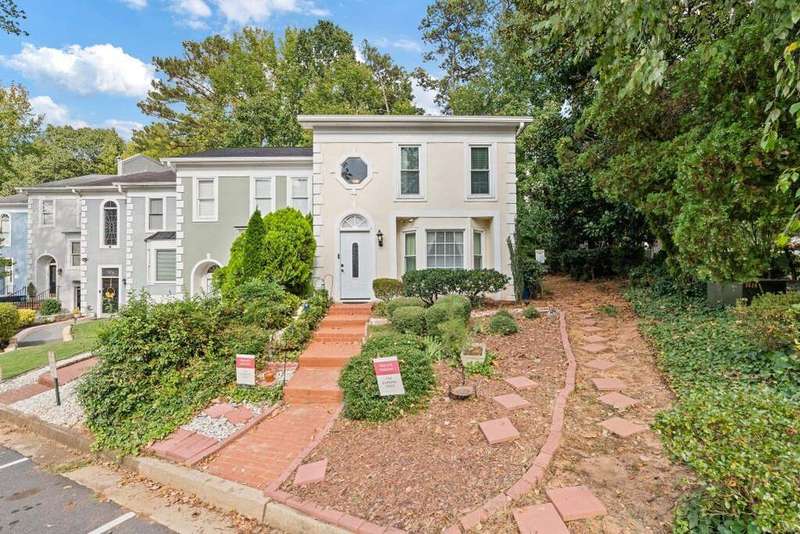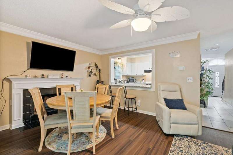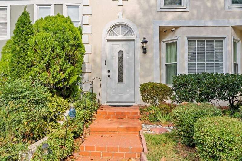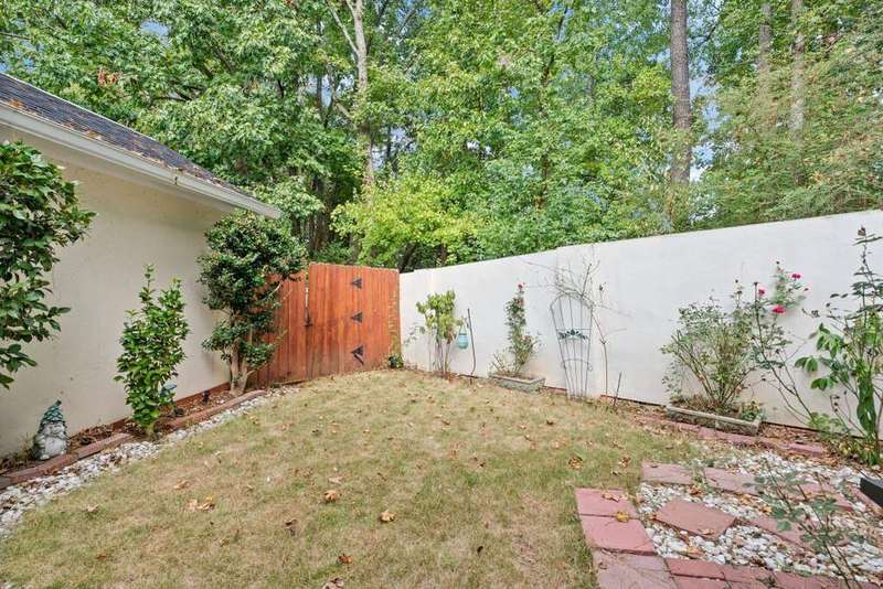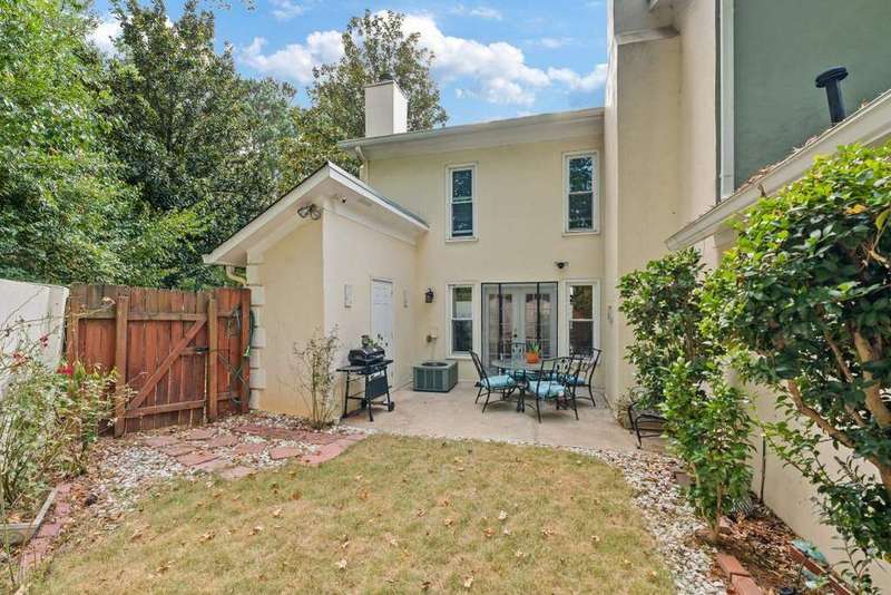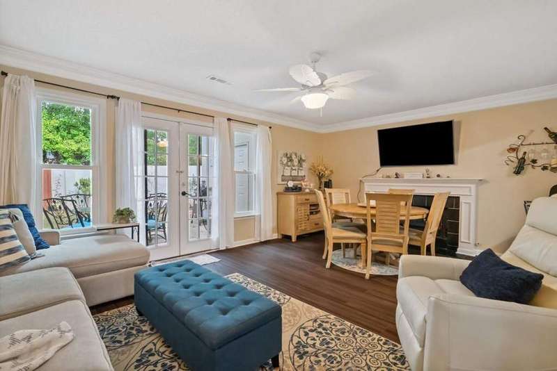 Charming End Unit in prime location! This low HOA & low-maintenance living townhouse has been renovated throughout. Open kitchen features granite, SS appliances and NEW range. Natural light fills the fireside living & dining room where French doors lead out to the relaxing private patio. Gated level backyard with walk-around access. Additional room on the main level beautiful mirrored glass barn doors offers an additional sitting room, office or bedroom. Powder room on main. Upper level primary with tray ceiling and updated bath. Secondary bedroom with en-suite bath. New windows, flooring, vanities, lighting and landscaping. Storage shed off the back patio.