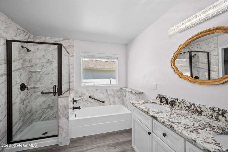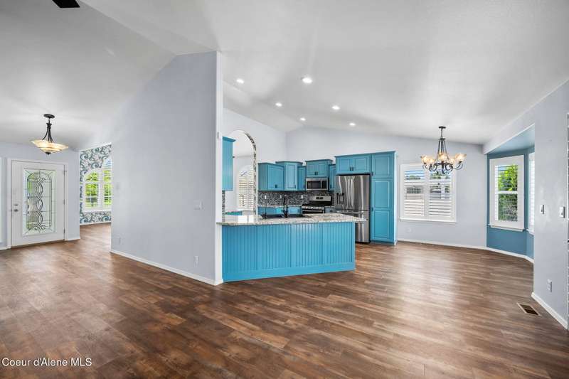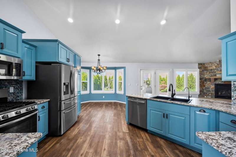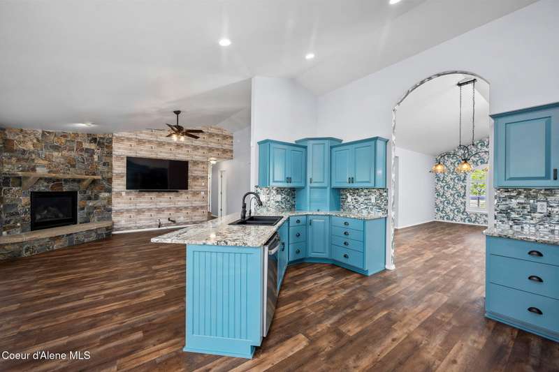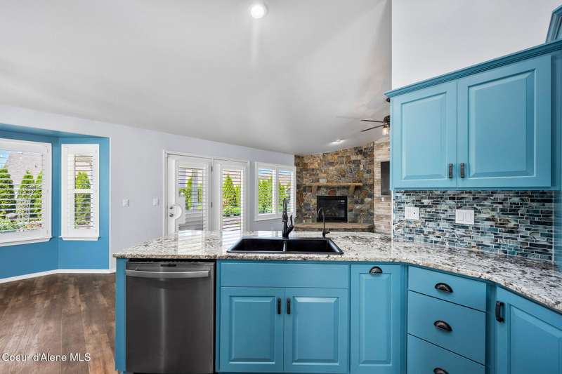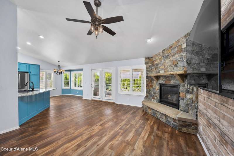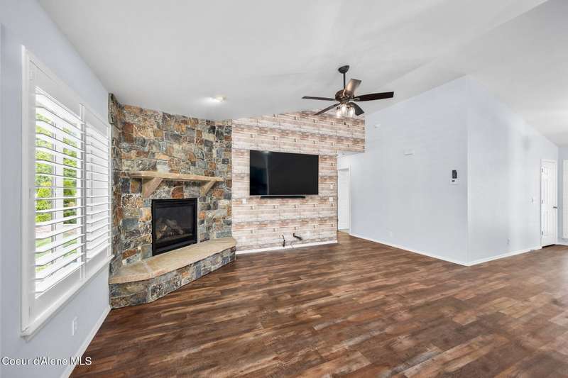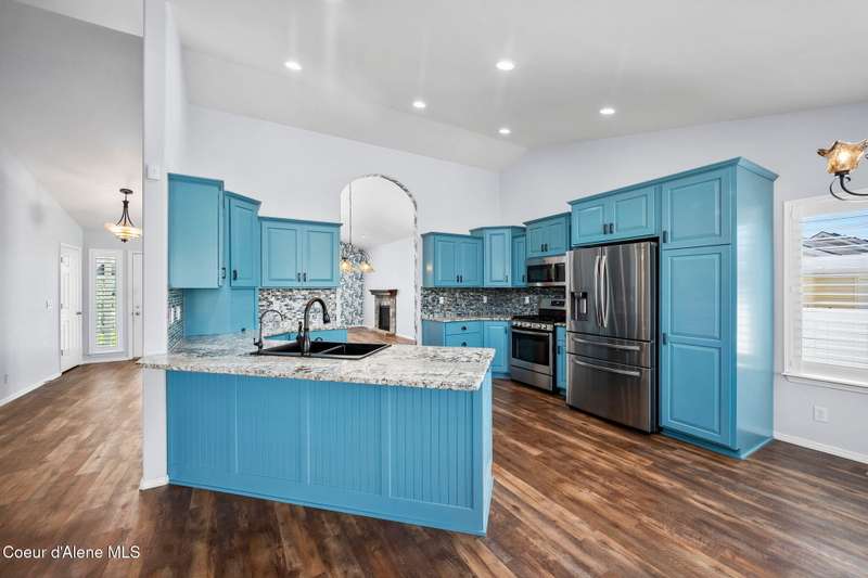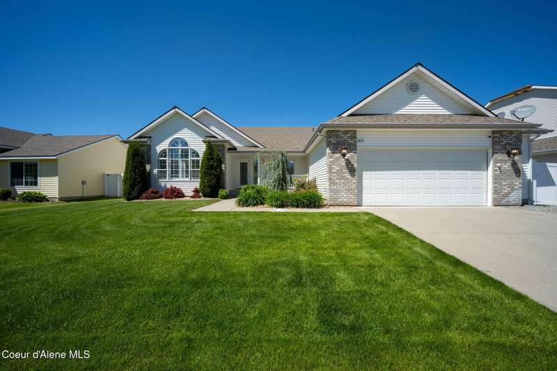Cute single level house located in a nice neighborhood in Post Falls. This house has 3 bedrooms, 2 bathrooms, 1979 SF with a new kitchen with custom cabinets, nice appliances and beautiful granite countertops. The open floor plan has vaulted ceilings and 2 living rooms with 2 fireplaces. Outside you will find a nice covered patio and beautiful landscaping in both the front and back yards. You don't want to miss this house.