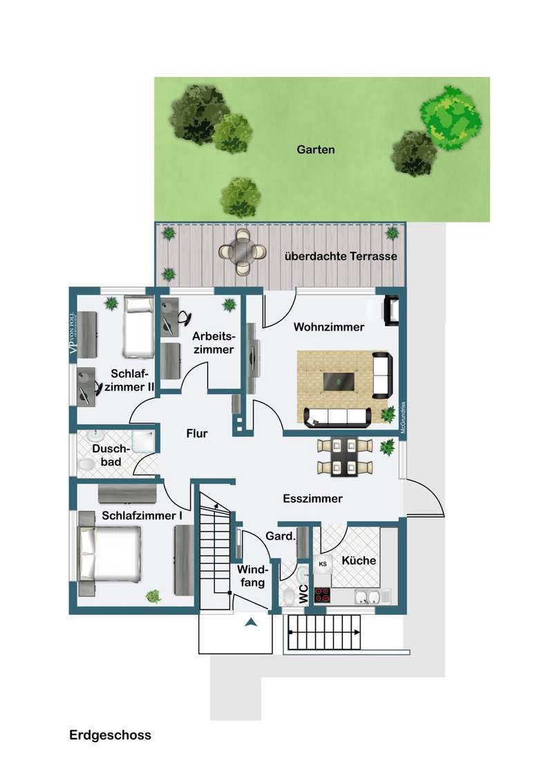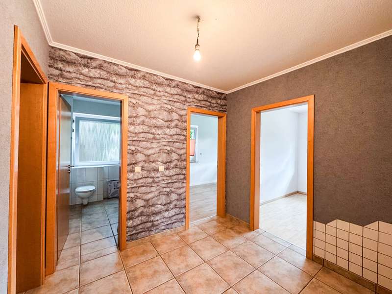 This charming 4-room apartment with approx. 84.06 m² of living space is located on the first floor of a quiet two-family house in the Tungendorf district. Thanks to the well thought-out room layout, the barrier-free design and the well-kept furnishings, the apartment is ideal for couples, singles or a small family with one child looking for a comfortable and quiet home. On entering the house, you enter the apartment's practical checkroom area through a communal vestibule. From there, you reach the guest WC and the open-plan dining room with access to the garden. Adjacent is the kitchen with a fitted kitchen from 2007. The bright living room forms the heart of the apartment and offers direct access to the large, covered terrace of around 28 m², which is perfect for relaxing outdoors. A special highlight is the cozy wood-burning stove, which may continue to be operated in accordance with current legislation and provides cosy warmth in the cold season. A spacious hallway leads to the three further rooms and the shower room. Here you have two possible bedrooms and a separate study at your disposal, which perfectly complement the well thought-out floor plan. The apartment is in a well-kept condition. Tiled and laminate floors, electric shutters (except in the guest WC) with timer - alternatively also manually controllable - as well as a fiber optic and satellite system are part of the equipment. Heating is provided by oil heating with classic radiators. In the communal garden, a robotic lawn mower and three wooden shelters provide practical storage options. The basement also has its own cellar room, a utility room for the washing machine and dryer and a separate drying room. A carport parking space can be rented for €40 per month. The building was constructed in 1971. The apartment has a final energy requirement of 133.90 kWh/(m²*a) and corresponds to energy efficiency class E. The basic rent is € 1,100 plus ancillary costs of € 450 (of which € 200 are heating costs and € 250 are other ancillary costs). This results in a warm rent of € 1,550. Electricity costs are added according to individual consumption. The deposit comprises three basic rents (€ 3,300). There is a minimum rental period of two years and a graduated rent of 5% every two years. There is no broker's commission for the tenant. The rental is aimed at quiet couples, singles or a small family with one child. Pets and smoking are not permitted. One key opens all three relevant doors - the apartment door, the cellar exit and the patio door. This first floor apartment is suitable for senior citizens and impresses with its spacious terrace, well-kept condition, cozy fireplace and quiet location in a two-family house. It can be occupied immediately or by arrangement. If you are interested in the apartment, we would ask you to provide the following documents in advance: a current credit report (not older than three months), proof of income (three payslips or pension statement), a copy of your identity card, a completed tenant self-disclosure form, a brief introduction of the people moving in and - if available - a previous landlord's certificate.