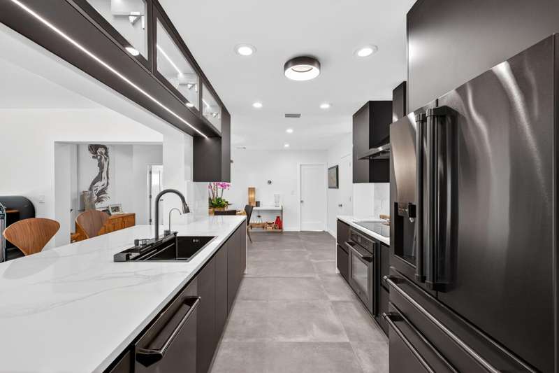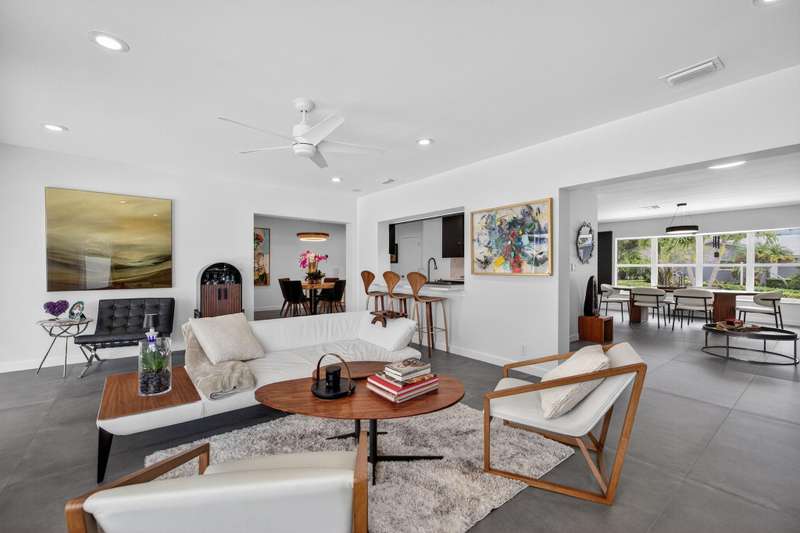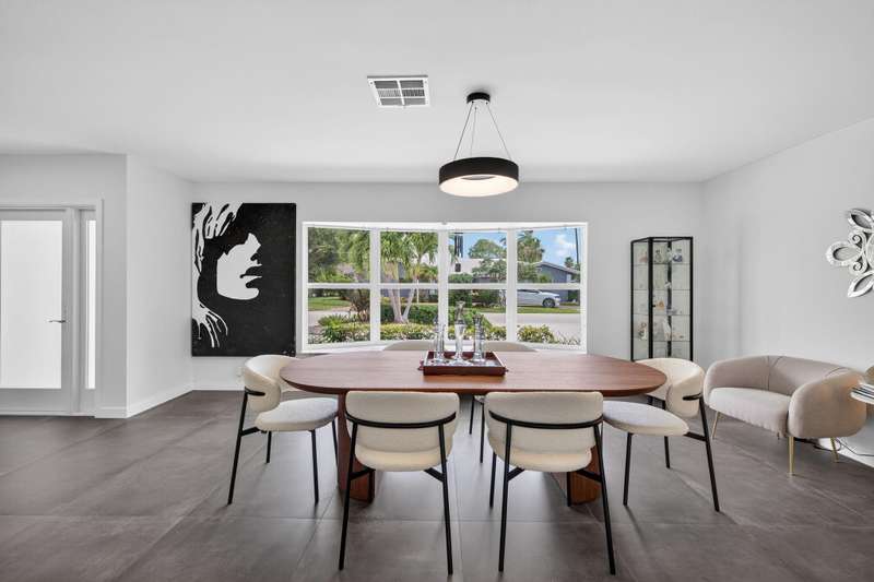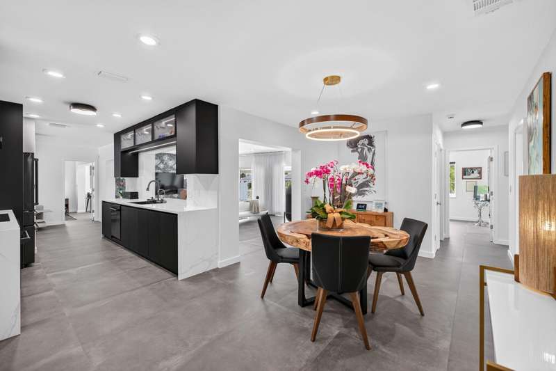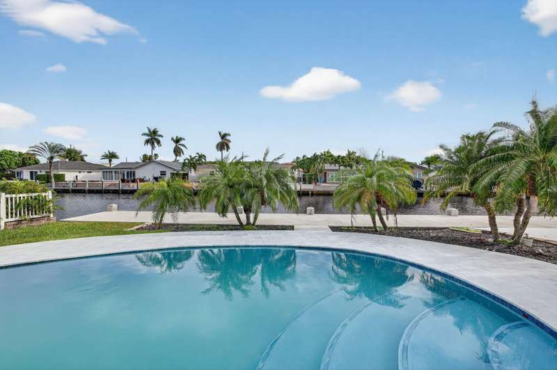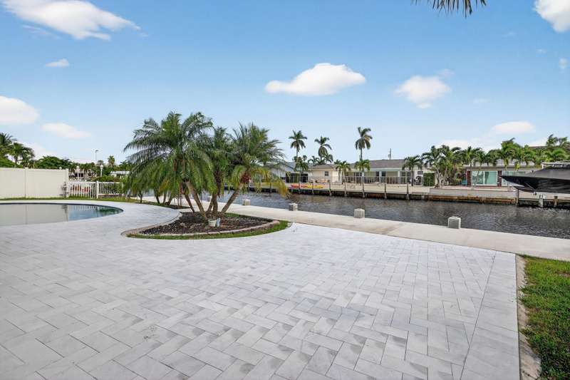 Nestled in The Landings, this fully renovated waterfront home has been meticulously crafted. From the striking chef’s kitchen with custom cabinetry, waterfall quartz counter, & top-tier ZLINE appliances, to the expansive open-living concept that seamlessly flows from one area to the next with an oversized slate grey porcelain tile. The primary bedroom features an en-suite bath, walk-in closet, & generous sitting area offering direct pool/water views through the impact sliding glass doors. 3 additional bedrooms & guest bath are positioned on the opposite wing of the home perfect for family/guests. The outdoor living experience is equally exceptional w/ brand-new pool, marble pool deck, concrete seawall & 75ft dock catering to the boating enthusiasts – offering ocean access w/1 fixed bridge.