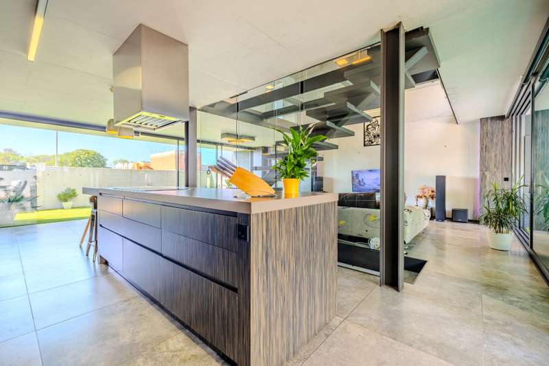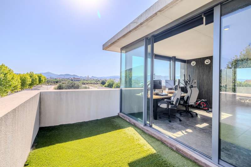 This impressive villa, situated in the charming town of Alquería de la Condesa, Valencia, offers the perfect combination of luxury, comfort, and strategic location. The property stands out for its modern design and numerous features that guarantee an unparalleled living experience. Its proximity to shops, schools, and the town center adds extra value for those seeking convenience and accessibility, just one hour from the international airports of Alicante and Valencia. The villa is highly functional and distributed over several levels. On the main floor, you will find the entrance hall with a living-dining room featuring large windows that provide plenty of light and elegance, an open-plan fully equipped kitchen, a guest toilet, and a spacious garage. The first floor is dedicated to the sleeping area, with two double bedrooms, the master bedroom with a walk-in closet and a large bathroom, access to a private terrace, and a laundry room. On the upper floor, there is an office with a terrace, from which you can enjoy fantastic views of the mountains and sunsets. Additionally, in the basement, there is a large room with a small kitchen and a guest toilet, ideal for a games room, home cinema, or a perfect space to enjoy with friends. Regarding the outdoor areas, the villa features a private swimming pool and a private garden, perfect for enjoying the Mediterranean climate. The covered and uncovered terraces, along with the views of the mountains and the pool, create a relaxing and exclusive atmosphere. The private garage ensures comfort and security for vehicles. Among the finishes and additional details, the property boasts parquet and porcelain floors, built-in wardrobes, double-glazed windows, and a reinforced security door. It is equipped with solar panels and a water tank, making it a sustainable and efficient option. In excellent condition, this property is a unique opportunity for those seeking a luxury home in a privileged location. We invite you to visit it.