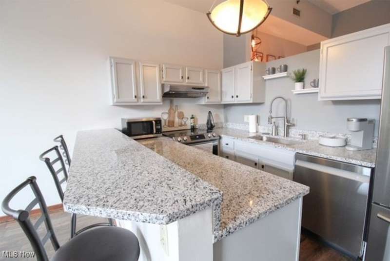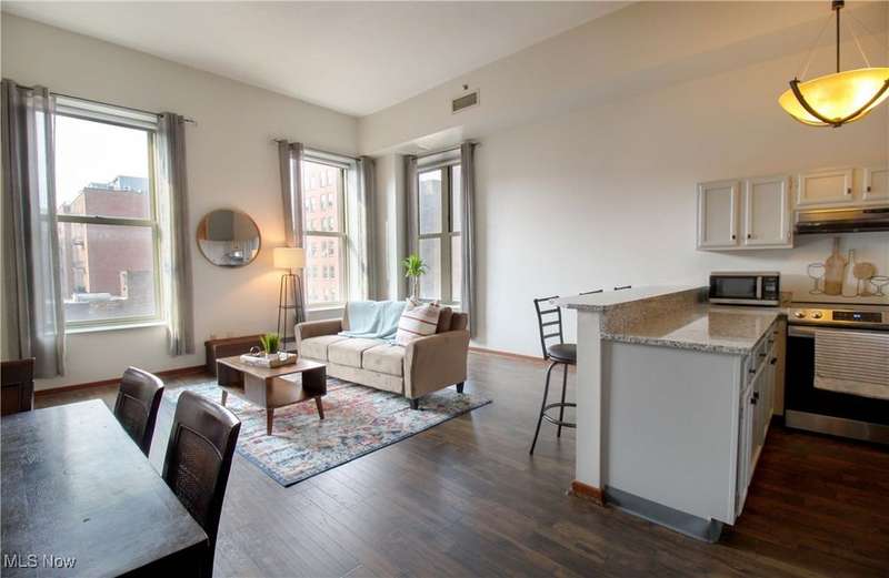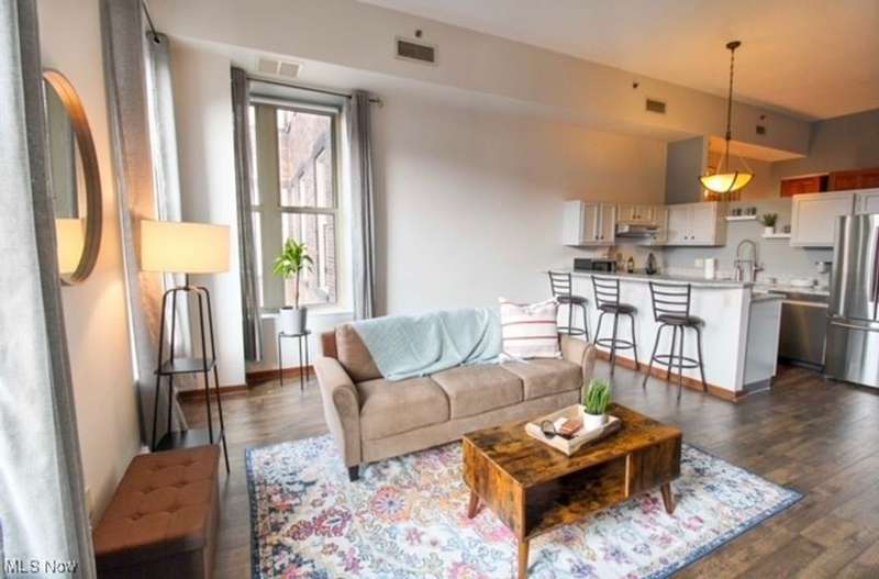Beautiful rental situated in the heart of the Warehouse District in Downtown Cleveland! This condo comes fully-furnished and all utilities are included. The property has been updated with newer hard surface flooring throughout, stainless appliances, granite countertops. Fabulous features include soaring ceilings, oversized windows, refreshed full bath, elegant furnishings. Peacefully located on the interior section of the building. Perfect location, just steps from fine dining, entertainment, sporting venues. Available December 15.