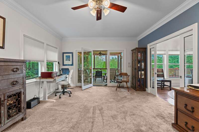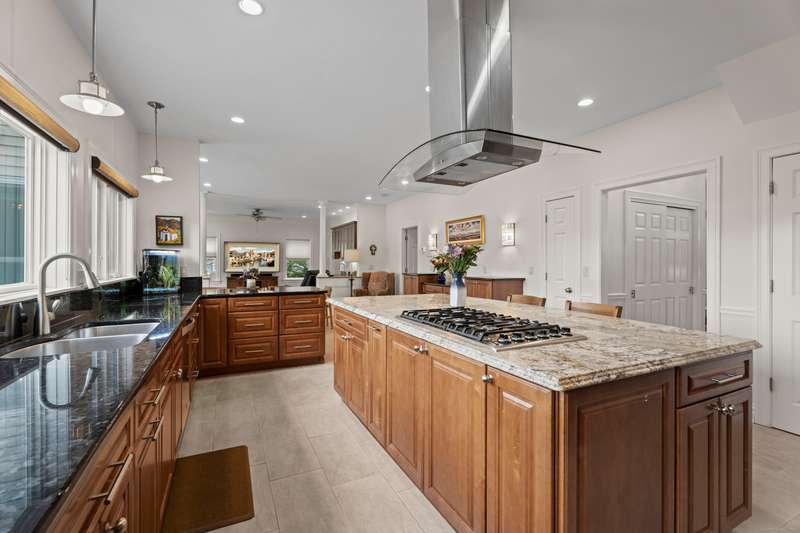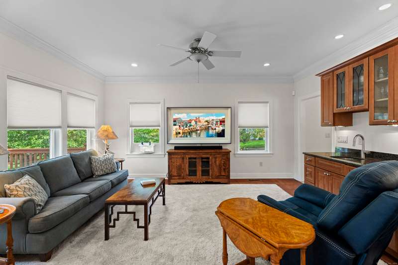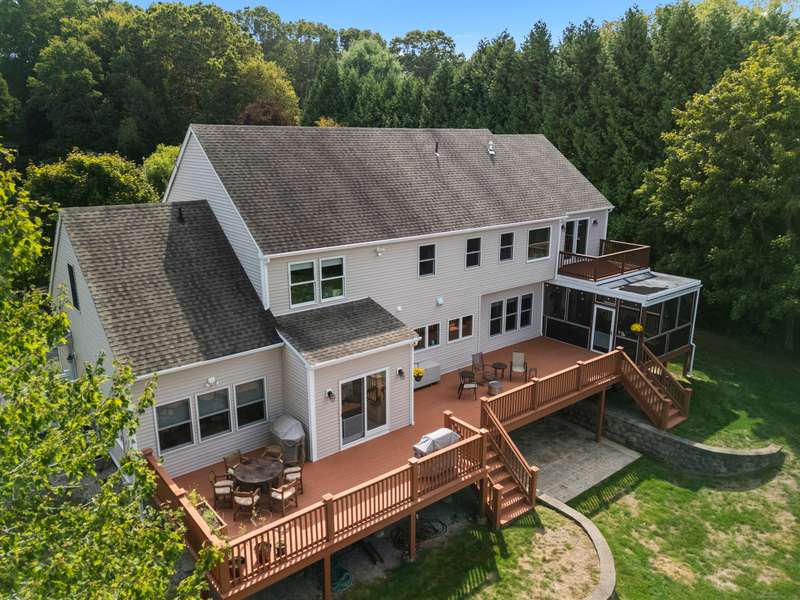 Discriminating buyers will appreciate the versatile floor plan as well as custom details within this primely located Flanders home. Multi-generational or in home office needs are easily met with rooms to spare. Walk up attic and basement areas are viable for those needing just a bit more! Gatherings are made easy in this gourmet Kitchen with expansive granite island and top end appliances. Party flows nicely into the family room with wet bar, wine chiller, and added cabinetry. Generous DRM and 2nd floor den or FR lead to an enclosed screened porch and full length rear decking. The fireplace in the LR adds to the welcoming ambiance. Main floor (2nd primary) and FB really make this home a rare find. Side home entrance gives that needed touch of independence! Each BR on the 2nd floor offers generous room and closet space. Super sized 2nd floor primary suite boasts a tile bath with tub and shower, 2 walk-in closets and access to private balcony. There is front yard irrigation system. (SLS