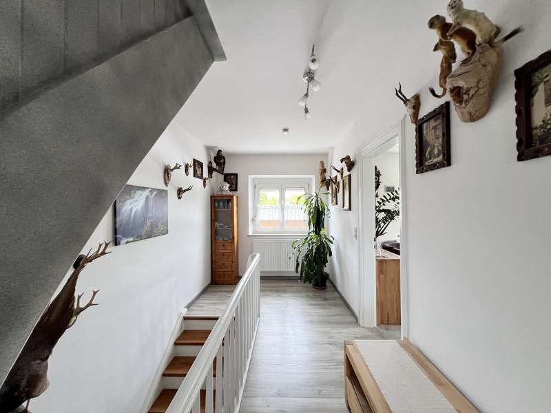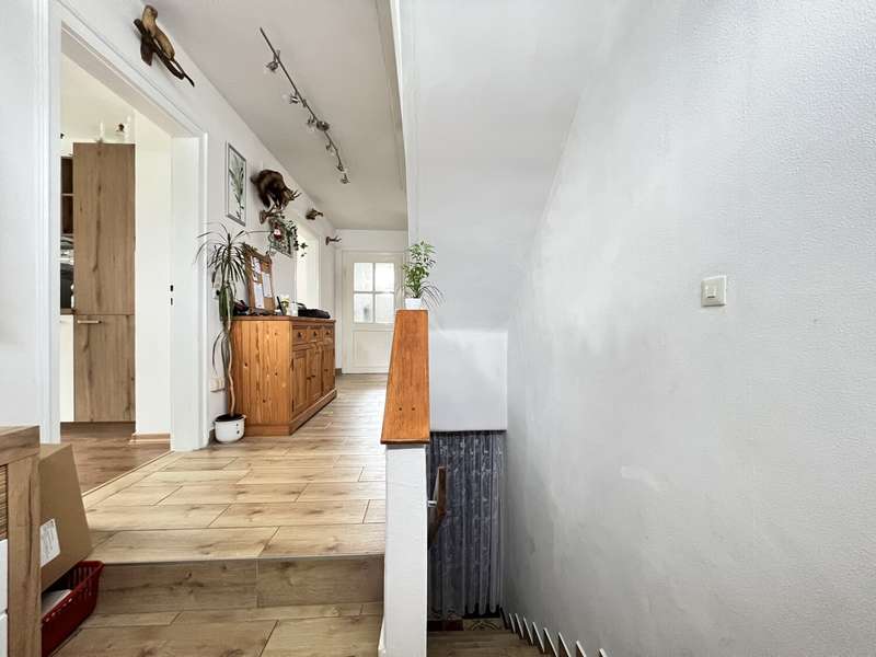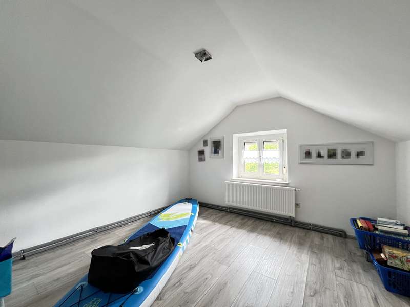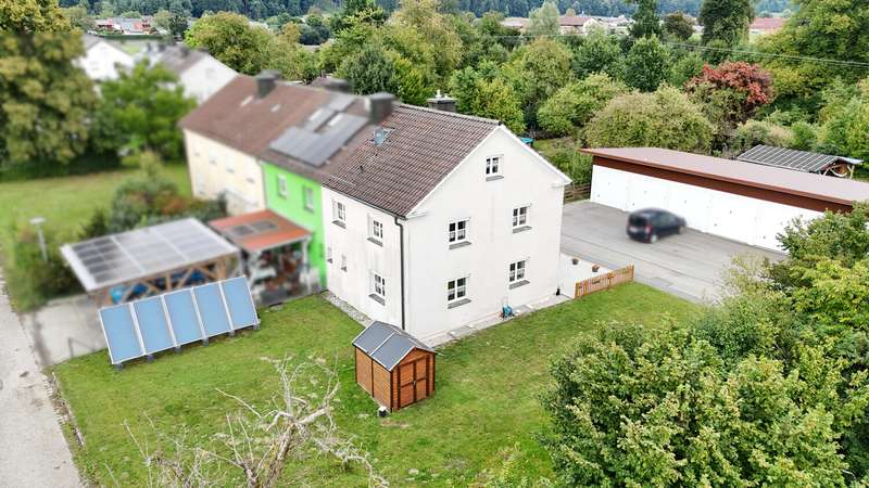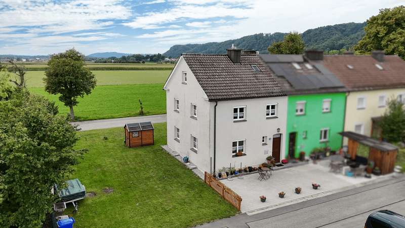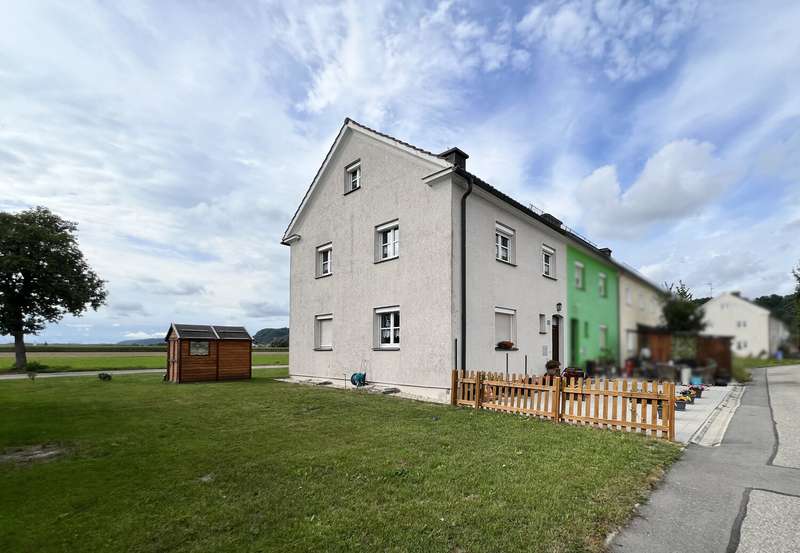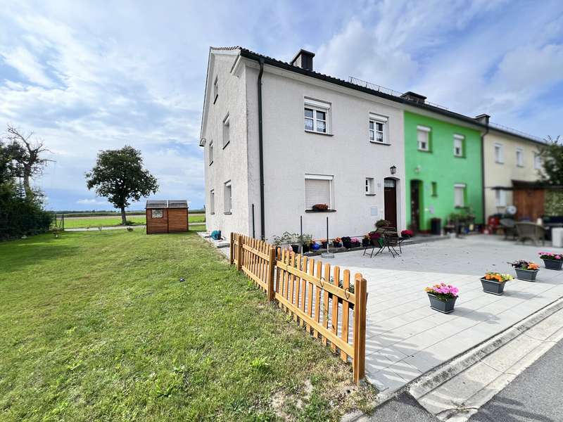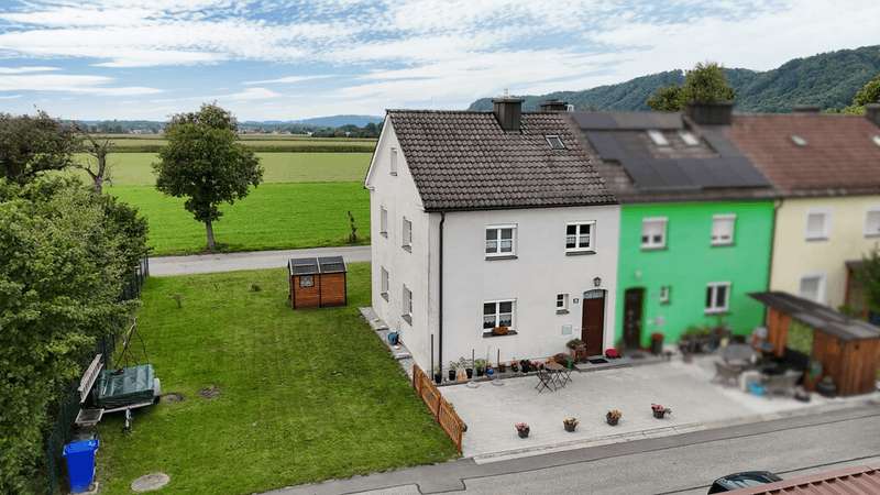 Quiet living, close to nature: Sunny corner terraced house with large garden in Stammham This charming terraced corner house in Stammham near Marktl enchants with its solid brick construction from 1953, a well thought-out room layout and a spacious plot of around 422 m². The quiet location provides privacy and relaxation: the house is set back from the road, while the fields opposite create an idyllic backdrop. The garden, which extends lovingly over two sides of the house, invites you to spend relaxing hours outdoors and be creative. A large driveway in front of the house rounds off the offer perfectly and makes everyday life pleasantly uncomplicated. With around 101 m² of living space, the house is in an attractive and modernized condition. Full thermal insulation and new windows with shutters were installed back in 1993. In 2020, the floors, the bathroom, the garden fence and in 2021 the heating were modernized and brought up to date. The heating is particularly sustainable and future-oriented: A modern pellet heating system is supported by five solar collectors in the garden. The associated buffer storage tank is conveniently located in the boiler room in the basement. On the first floor, you are greeted by a bright, friendly entrance area from which all rooms are easily accessible. The light-flooded, cozy kitchen invites you to cook and linger together (not included in the purchase price), while the adjoining living room with its windows offers a view of the sunny garden - an ideal place for relaxing hours or social gatherings. The first floor is complemented by a practical storage room and a guest WC. On the upper floor, you will find two versatile, light-flooded rooms that are perfect as bedrooms, studies or children's rooms, as well as a bright bathroom with a bathtub - a place to relax and feel good. The converted top floor surprises with an inviting entrance hall and a spacious, sun-drenched room that is ideal for work, hobbies or guests. The basement also offers well thought-out storage space: in addition to the boiler room, there are further storage options in an additional basement room. This terraced corner house combines the charm of a classic existing building with modern technical advantages, creating a feel-good oasis for families, couples or anyone who wants to live close to nature and still live comfortably. Take a look at all the details and the potential of this charming property for yourself and arrange a non-binding viewing appointment with us. As a first step, please send us a written request (via the real estate portal, our homepage or by e-mail) with your full contact details. We look forward to hearing from you! Click here for the virtual viewing tour (360° tour of the property): https://tour.ogulo.com/EpFd