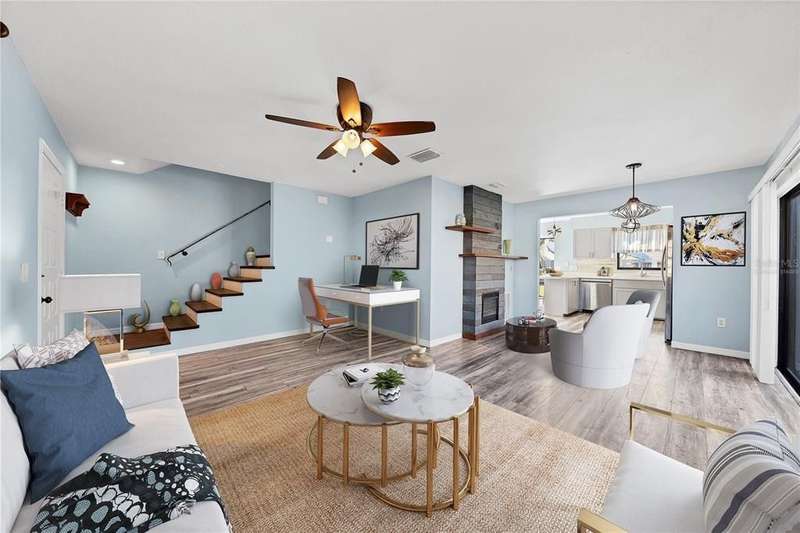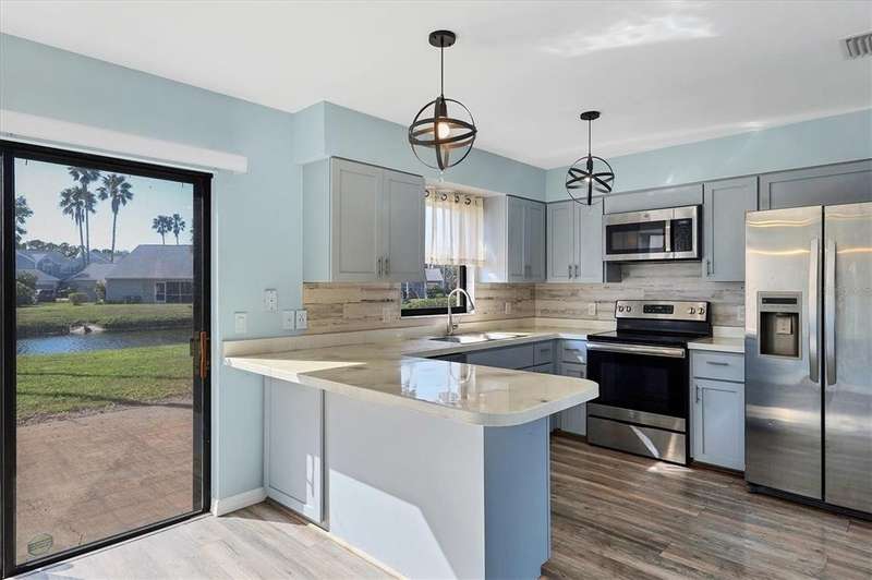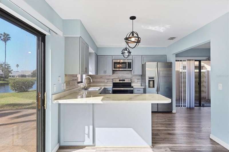 ~ AFFORDABLE AND IN A WONDERFUL LOCATION ~ You'll have the pleasure of enjoying life in a maintenance free, age and pet friendly community in this two story 3BR 2.5 BA townhome in beautiful Five Lakes. This lovely home is positioned on a small pond where you can relax and take in the water views from your back outdoor patio deck. You're going to love the convenience of being located just minutes away from Detweilers, the State College of Florida, IMG Academy and Bradenton's sandy beaches. The tropical landscaping and front courtyard make this an inviting entrance. An open floor plan, breakfast bar, pantry closet, guest 1/2 bath and private PVC fenced side patio accessible by sliding glass doors off of the living room add ambiance to the first floors living area. Amenities include an attractive fireplace with accent shelving, contemporary lighting fixtures, a kitchen window viewing the backyard and pond, stainless steel appliances, raised panel cabinetry, brand new verticals, luxury vinyl plank flooring on the first level and newer carpeted bedrooms upstairs. A hallway laundry closet is conveniently located on the 2nd floor. Both upstairs bathrooms have been stylishly updated with granite countertops, a barn door accessing the primary ensuite bathroom and a tiled tub and shower. The primary bedroom offers a walk in closet along with second built in closet. A new water heater, 2020 roof and 2021 A/C will provide peace of mind and savings as well for your homeowners insurance. There's also an exterior storage closet for your extras. Enjoy the community pool, tennis courts and activities plus the added advantage of having additional parking available for trucks and RV for residents only. What's not to love ... come make this yours!