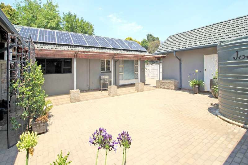 ENERGY-EFFICIENT homes are no longer a ?Ç£nice-to-have?Ç¥ but a ?Ç£MUST-HAVE?Ç¥ today! An energy-efficient home is no longer a luxury item on a wish list. It is a core component of a modern, resilient, and financially sound household in South Africa today. It is an investment in stability, comfort, and long-term security. This property's off-grid capability allows it to function independently of public utilities. The systems installed here are not just for backup; they are a complete, primary source of power and water, engineered for a lifestyle of absolute security and freedom. Massive Off-grid Capable Victron Solar System: A robust setup featuring 30 high-performance solar panels managed by a powerful 13kW Hybrid Inverter Capacity: Generates an average of 120kWh of power per day. This is an extraordinary amount, more than sufficient to run a large, modern household 24/7?Çöincluding all appliances, air-conditioning, the pool pump, and even charge an electric vehicle?Çöwhile still storing surplus energy Benefit: Say a permanent goodbye to loadshedding and staggering electricity bills. Purified Water on Tap System: Two large-capacity water tanks are integrated with a state-of-the-art UV Filtering System - The UV filter neutralizes 99.9% of harmful bacteria and viruses, delivering perfectly clean, safe drinking water to every tap in your home. Free Hot Water System: A dedicated Solar Geyser operates independently - This component tackles one of the biggest electricity consumers in the home, providing free hot water year-round and further deepening your savings The home complements this technical excellence with 4 spacious bedrooms, 3 bathrooms (2 ensuite), a modern open-plan kitchen, and an entertainer's lapa overlooking a well kept garden and heated pool. The lounge features a fireplace and adjoins a bright and sunny dining room. The designer kitchen comes equipped with wall-to-wall cabinetry, a 5-burner hob, electric oven, extractor fan, pantry cupboard with automatic shelf lights and a separate laundry and scullery. The 4 bedroom offers a principal bedroom with walk-in closet, motion-activated shelf lights, and an en-suite bathroom with a bath-shower combo, and bidet toilet seat. The second and third bedrooms, both with built-in cupboards, are serviced by one full bathroom (shower, bath, and bidet toilet seat). The fourth bedroom also has an en-suite (bath, basin and toilet). The lapa has a kitchenette, toilet, built-in braai with counters, and is large enough to be converted into a flatlet, work from home office space, or domestic living quarters. Two separate sliding doors open onto the garden, with a heated pool and a wooden jungle gym area for children and fur-babies to play in. Lock-up storeroom for additonal storage equipped with a separate outside toilet. There are two separate entrances to the property with a tandem automated and manual garage accommodating a few vehicles. The property's sustainable features include: Water backup (municipal and/or rain storage) ?Çó 2x 5250l JoJo tanks ?Çó 0.75 KW water pressure pump ?Çó 4 Stage Big Blue filter and UV sterilizer system ?Çó Under-counter reverse osmosis system in the kitchen Comprehensive Security System ?Çó 6 Beams outside, 4 motion sensors inside, sensors on all house doors, both garage doors as well as both gates ?Çó Camera system with 8 cameras outside and motion sensing capable Hikvision ?Çó NVR for recordings ?Çó Electric fencing linked to alarm system ?Çó ?Ç£Ring?Ç¥-brand doorbell with motion sensing and cloud-based video intercom Connectivity ?Çó 10x Network points throughout the house, garage and lapa for high-speed ?Çó internet and networking ?Çó 2x Ceiling-mounted Wi-Fi access points for better connectivity ?Çó Fibre internet Additional Features - ?Çó Solar/ electric Geyser ?Çó Pool with solar heating ?Çó 5x Air Conditioners Included in the sale: All blinds, Network cabinet, Wi-Fi access points, Pool cover, Alarm with Camera system, Pots/ Plants, and Generator.