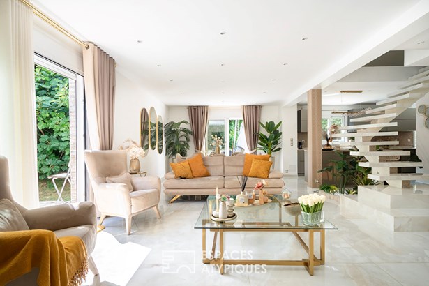 In Thiais, in the sought-after Green Valley development, this 180 m2 family home, completely redesigned by its owners, offers a refined yet welcoming living experience. Nestled on a 587 m2 plot, its understated, elegant lines stand out in a quiet residential area, just a stone's throw from schools and amenities.