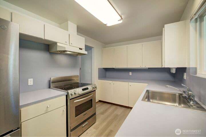 Lovely Rambler in Kirkland on 0.23 acres, near Edith Moulton Park. Exterior re-painted with newer flooring, carpeting and vinyl planking, in the bedrooms and living areas. Newly painted living room, family room, and additional bedroom. Kitchen has stainless steel appliances, eating area, and glass slider that opens to a covered patio for year-round entertaining. Lovely level and fully-fenced back yard with mature landscaping. Home has tankless water heater and newer double-pane windows for energy efficiency. Full-sized washer/dryer. Close shopping, restaurants, and easy access to 405. Prefer 18 mo. Lease. Pets OK - considered case-by-case (max of 2), but prefer none. Pet rent: $50/pet/mo.