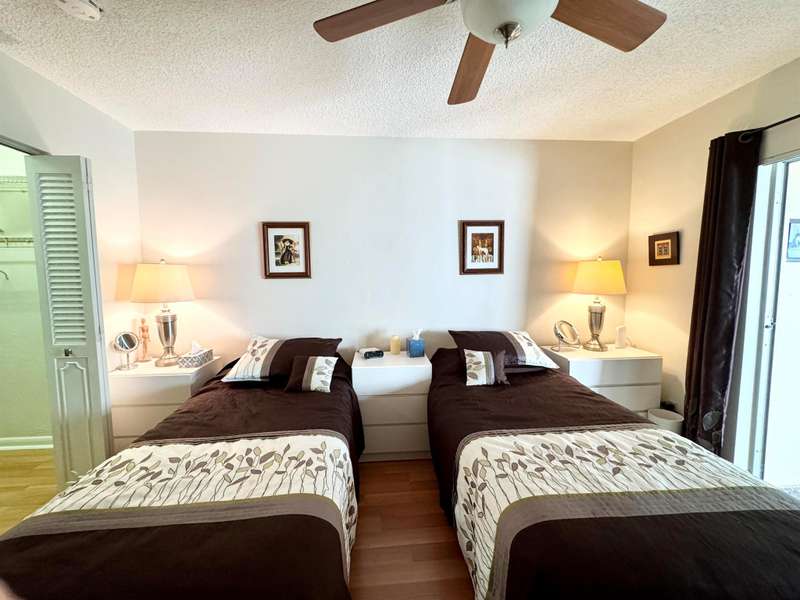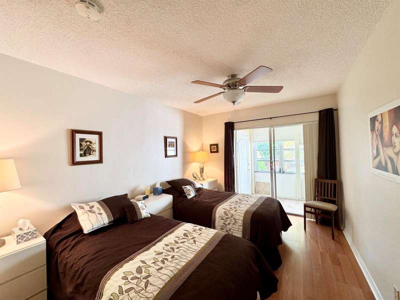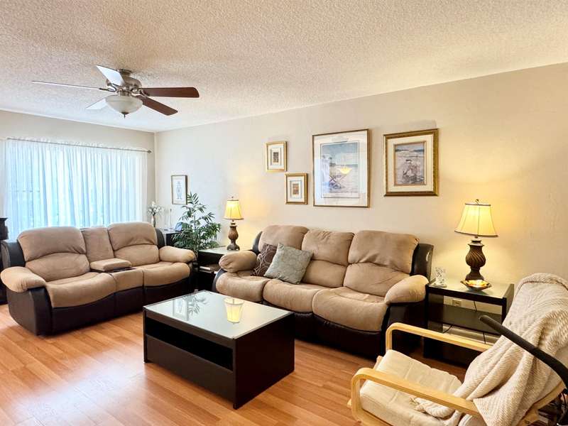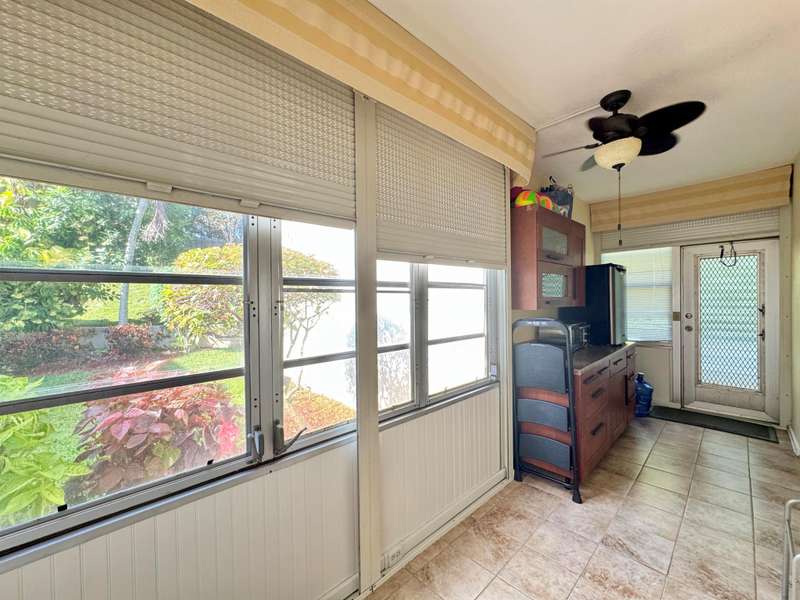 Beautiful spacious tastefully decorated furnished corner 2-bedrooms, 1-bathroom condo with Florida room on the first floor in Murray Hills, a 55+ community. Private garden view w/ quick access to laundry room. Central A/C. Bright kitchen with window, glass top range, dishwasher. Wood like floors. Summer kitchen on the patio. CABLE TV, INTERNET included in rent. Great location with 4.5 miles of walking paths along beautiful Lake Osborne, just 8 min from the beach. Murray Hills offers wonderful recreational facilities & amenities, including a swimming pool, grill area, gym, saunas, bocce, shuffleboard, library, ping pong, billiard room, auditorium, arts & crafts room, car wash, and a beautiful park setting. Just minutes from downtown West Palm Beach, PBI Airport, beach, shopping.