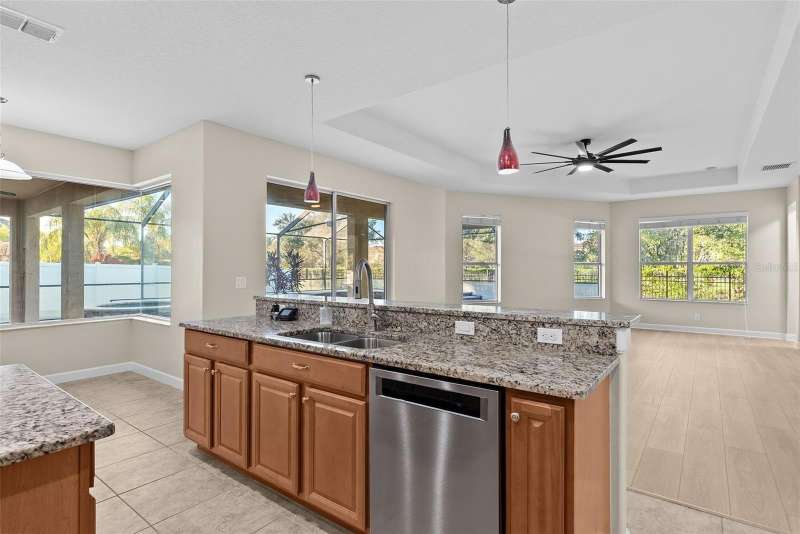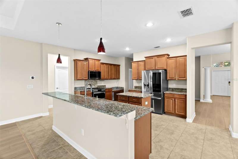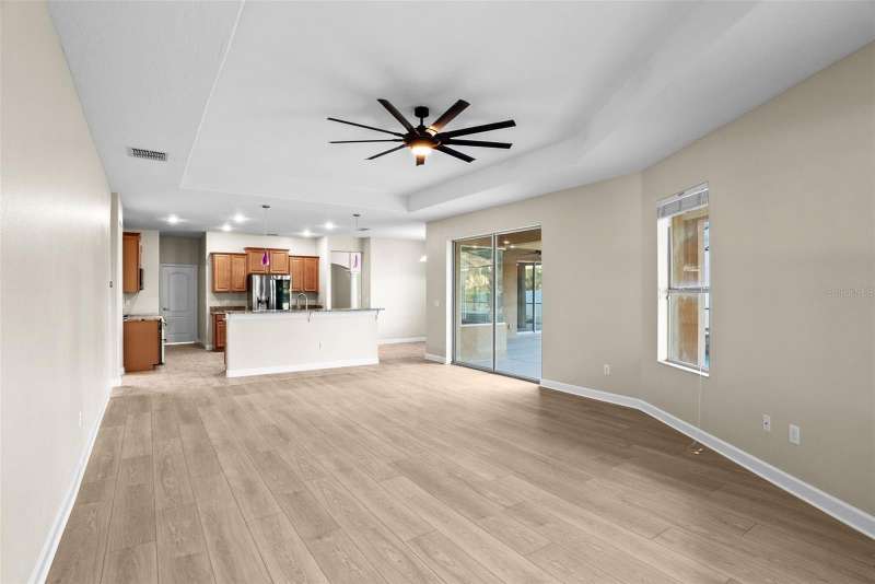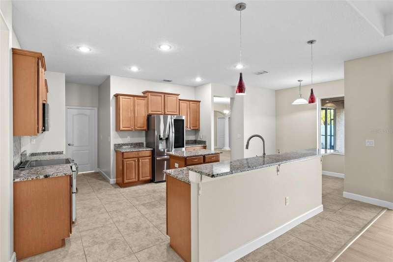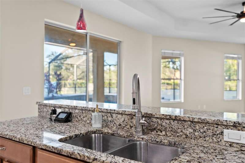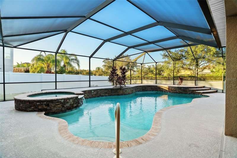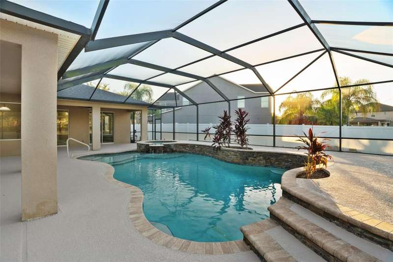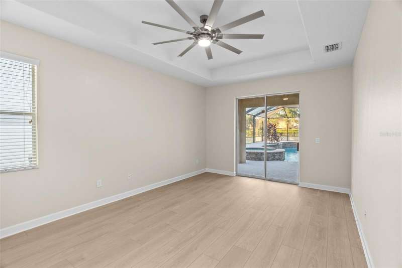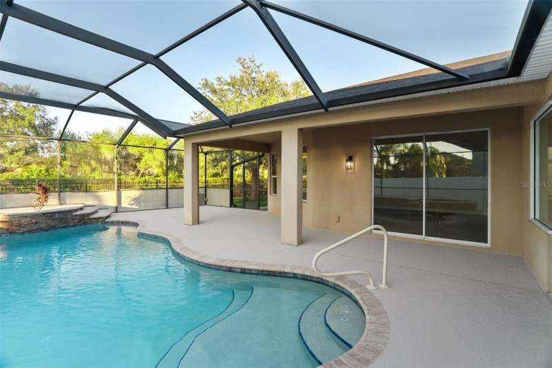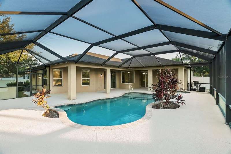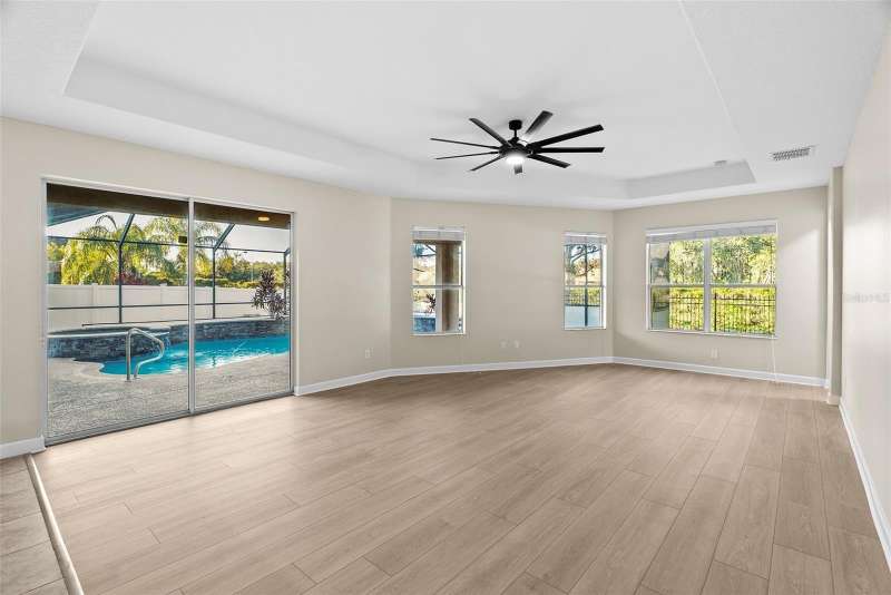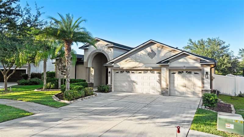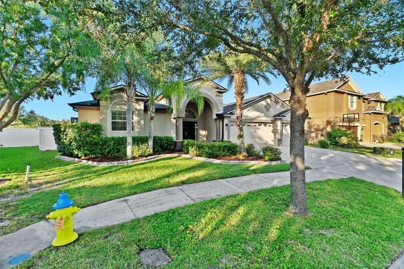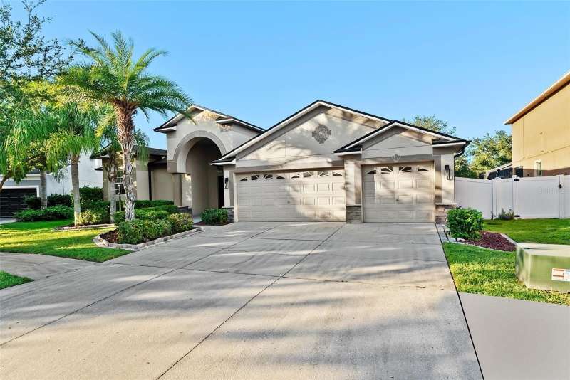 Under contract-accepting backup offers. Welcome to this stunning, move-in-ready executive home located in the highly desirable 24/7 gated community of Live Oak Preserve in the heart of New Tampa. This beautifully maintained one-story residence features 4 spacious bedrooms, 3 full bathrooms, and an oversized 3-car garage, offering 2662 square feet of thoughtfully designed living space. From the moment you arrive, you'll be impressed by the grand double-door entry, elegant curb appeal, and lush landscaping. Inside, you'll find fresh interior paint and brand-new luxury vinyl plank flooring throughout (no carpet), creating a clean, modern look and easy-care living. The open floor plan flows seamlessly from formal living and dining areas to a large family room and recently updated kitchen, complete with new stainless steel appliances, abundant cabinetry, solid surface countertops, and a large center island—perfect for everyday living and entertaining. The primary suite offers a spacious and serene retreat with sliding glass doors that open directly to the pool and spa, allowing for peaceful views and private outdoor access. The suite also features a walk-in closet and a spa-inspired ensuite bath with a soaking tub, walk-in shower, and dual vanities. The split-bedroom layout provides privacy for family or guests. Step outside to your private, fully fenced backyard oasis, where a deluxe custom pool with built-in spa, cascading waterfall, and stone accents awaits—offering the perfect setting for relaxing or hosting guests. Additional highlights include a new roof (2024) and updated lighting throughout. Live Oak Preserve residents enjoy resort-style amenities including a clubhouse, fitness center, water park style pool-splash pad, jacuzzi, tennis courts, playground, and walking trails—all set within beautifully landscaped surroundings. Conveniently located near top-rated schools, Wiregrass Commons, The Shops at Wiregrass, Tampa Premium Outlets, medical facilities, dining, and major highways, this exceptional home offers luxury, comfort, and an unbeatable location. Don’t miss your chance to own this extraordinary home—schedule your private tour today!