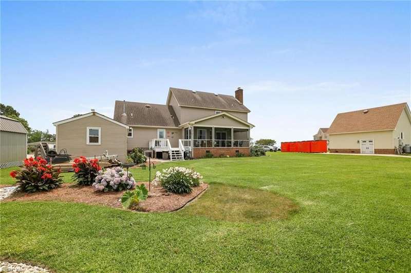 Welcome to your coastal retreat on the Currituck Sound in Bells Island! This beautifully maintained home offers water views from both front and back porches. Inside you'll find 3 spacious bedrooms + a versatile ROG ideal for a guest suite, home office or hobby space. 2 1/2 baths that have been completely renovated. The primary bath has that amazing spa feel. The interior has been thoughtfully updated with fresh paint that brightens every room. The living area features a cozy fireplace with gas logs and new gas lines providing modern efficiency and peace of mind. The kitchen has coastal blue cabinets and newer s/s appliances. The yard is filled with beautiful plantings and bulkheaded at the waters edge. Whether your sipping morning coffee or evening cocktails on the screened in porch or down by the dock watching the sunset paint the sky, this home offers the best of waterfront living. Don't miss your opportunity to own a piece of paradise on Bells Island! Voluntary HOA $125.00 a year
