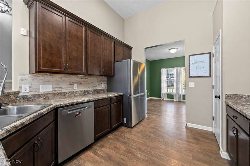 Welcome to 4657 Fields Way, a beautifully maintained home offering space, style, and thoughtful upgrades throughout. As you enter, you're greeted by a formal dining room ideal for hosting gatherings. From there, step into the open-concept kitchen, complete with stainless steel appliances, a breakfast bar, and a view of the cozy gas fireplace in the adjoining living room. The first-floor primary suite serves as a private retreat with its own ensuite bathroom and walk-in closet. Upstairs, you'll find two spacious bedrooms and a full bathroom, providing comfort and privacy for family or guests. Step outside to enjoy the Trex composite deck, a wonderful outdoor space perfect for morning coffee, dining or relaxing. The garage is a true highlight, designed with both functionality and passion projects in mind. It features wall-to-wall custom storage, an 80-gallon air compressor, built-in air filtration, a convenient electrical drop and a dedicated heater, making it the perfect year-round workspace for any hobbyist or mechanic. The finished basement adds even more living space with a built-in theater area (projector and screen included), a bar area, an additional bedroom, and a full bathroom, perfect for entertaining or hosting guests. A sump pump with battery backup provides peace of mind during heavy storms. This home truly combines comfort, quality, and functionality, inside and out.