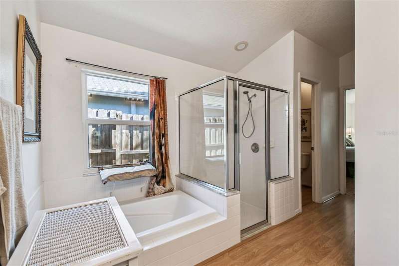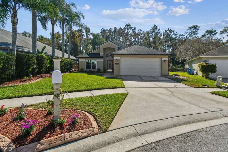 Discover the perfect blend of comfort and convenience in this beautifully maintained 4-bedroom, 2-bathroom single-family home offering 1,709 square feet of inviting living space on a generous sized Cul-de-sac lot. Built in 1996 and nestled in the vibrant Meadow Pointe community & just minutes from Wesley Chapel’s bustling amenities. All the large ticket items have been renewed. From the Three dimensional shingle roof (2024) to the Air conditioner (2023) to the hot water heater (2024). Step inside to an open-concept layout that maximizes natural light and flow. The spacious living room serves as the heart of the home, seamlessly connecting to the eat-in kitchen featuring ample cabinetry, a breakfast bar, and plenty of room for casual dining. Walking in the front door and to the left sits the first room, perfect as a home office, playroom, or fourth bedroom. The primary suite is a true retreat, boasting a generous walk-in closet and an en-suite bathroom with dual sinks and a relaxing soaking tub. Two additional well-appointed bedrooms share a full guest bath. Outside, your private pool and Spa oasis awaits, complete with a covered screened patio. Natural gas pool heater is ready to go for the winter months. Newly installed natural gas whole home generator putting out 24KWH ensures you will never be without power during storm season. New double paned energy efficient windows throughout the home. The attached 2-car garage provides ample storage and parking. Meadow Pointe’s resort-style amenities elevate everyday living. Enjoy multiple pools, tennis courts, playgrounds, fitness centers, and miles of walking trails – all without leaving the neighborhood. Top-rated schools, including Wiregrass Ranch High school are nearby along with shopping at The Shops at Wiregrass, dining hotspots, and easy access to I-75 for quick commutes to Tampa or Busch Gardens.