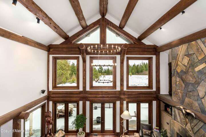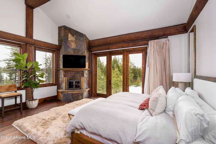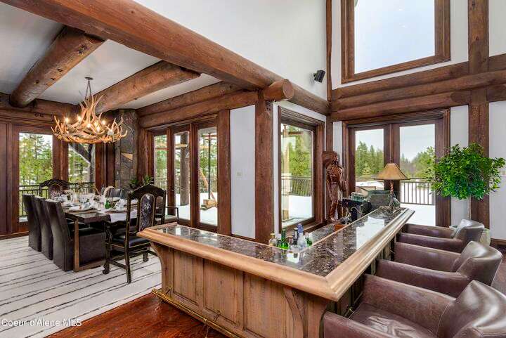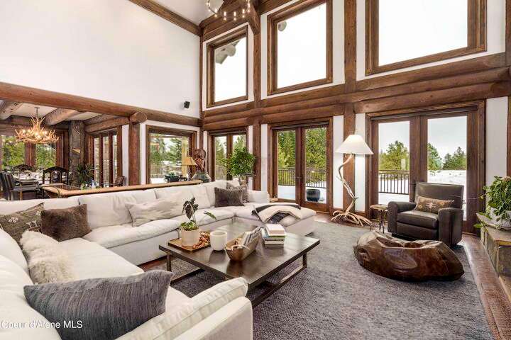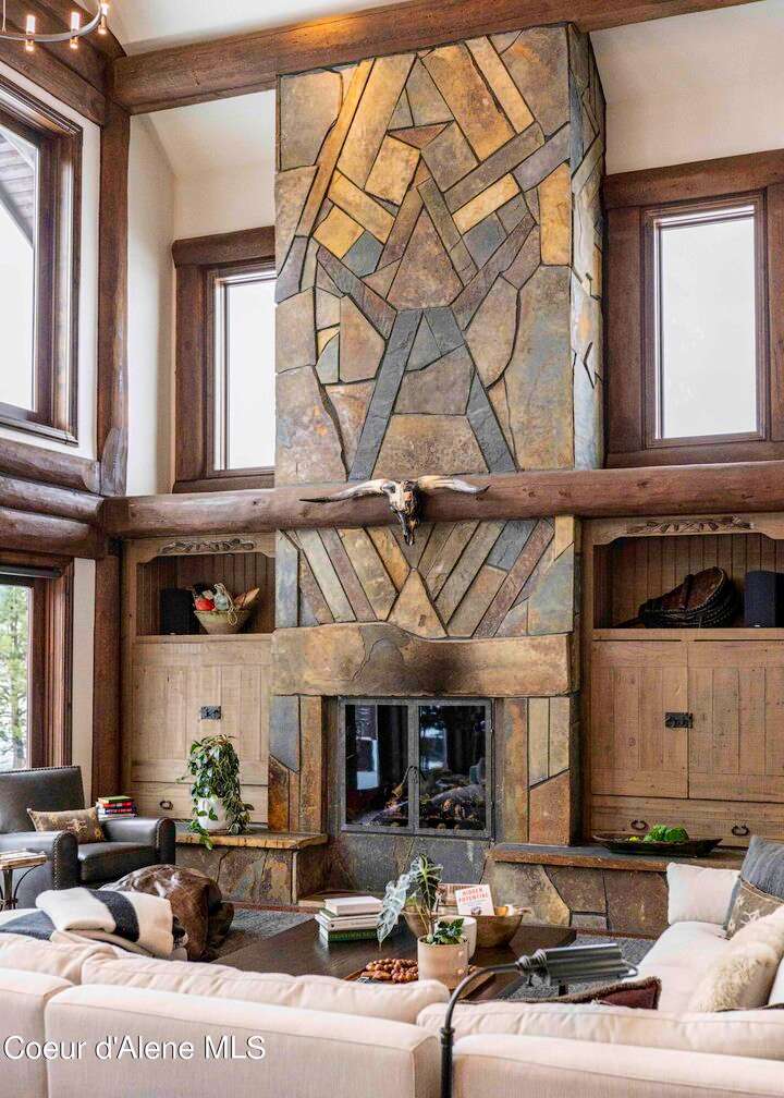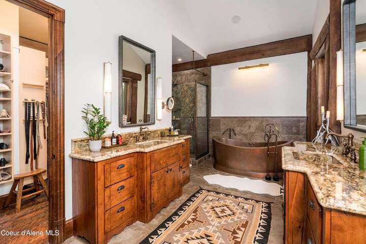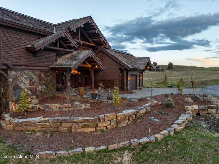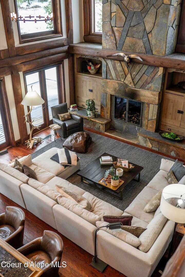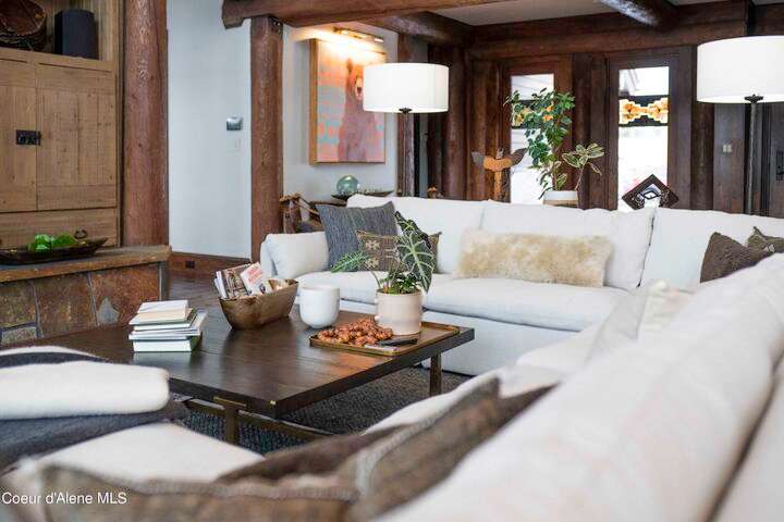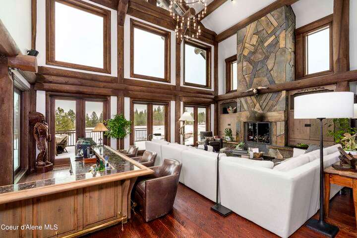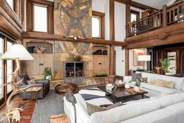 TIMELESS TIMBER-FRAMED CUSTOM HOME IN THE PRESTIGEOUS BLACK ROCK GATED COMMUNITY: This 4,531SF, 3 bed, 3 ½ bath, 2-car garage, timber-framed home with nearly 3,000SF of tropical hardwood deck belongs in the hands of an owner who appreciates the finest of things. This custom home would cost a fortune to build given today's building costs. Premium and craftsman finishes were used throughout which include massive timbers, Montana quarry rock, fossil stone, French faucets, antique old-world retro-fit cabinetry, rough-cut cedar plank flooring, re-purposed servants bell for a door bell, antler chandelier, oversized doors and master vanities, art gallery lighting, a chef's kitchen with soapstone and Wolf appliances, live-edge trim-work, custom jetted copper bath tub, an antique sliding door, custom stained glass and even a secret room! Sellers offering $12,500 credit to CDA Carts for a new 2025 EPIC E40FX, with qualifying offer! See documents for spec sheet.