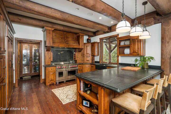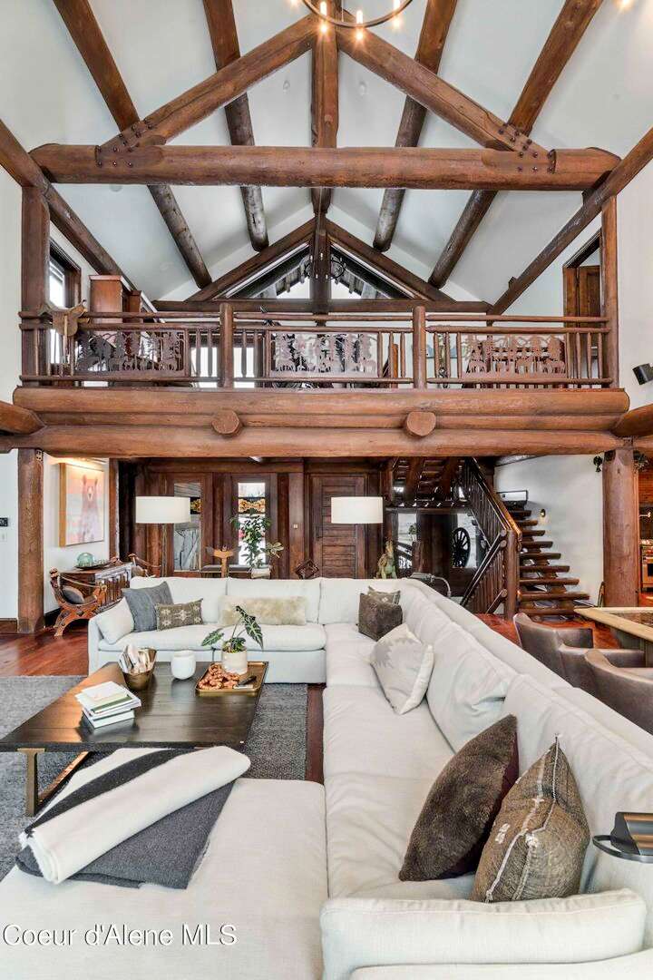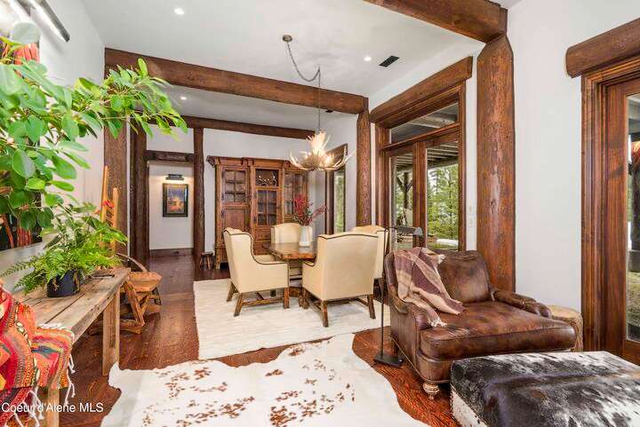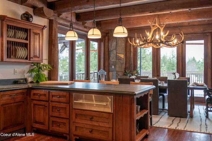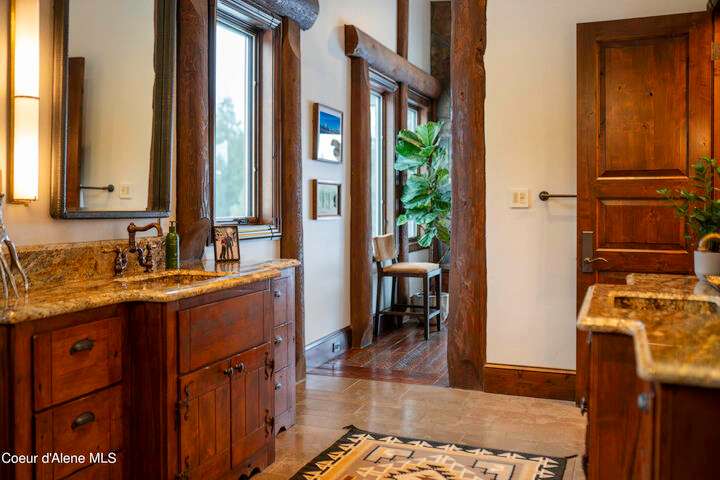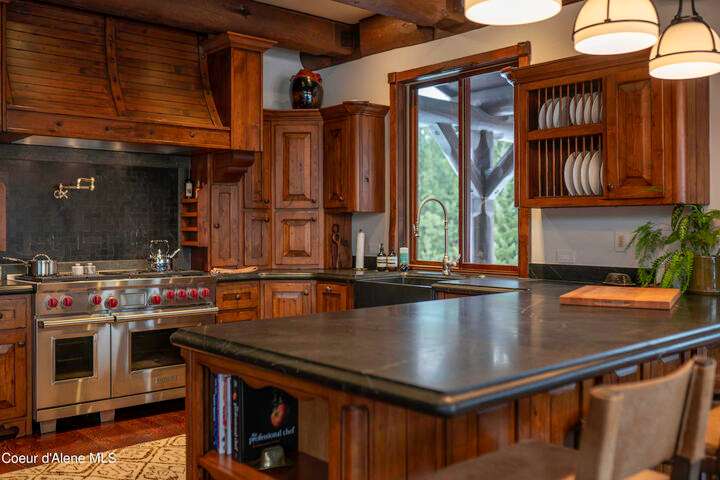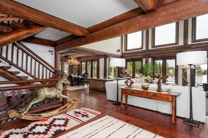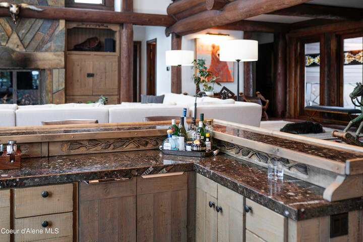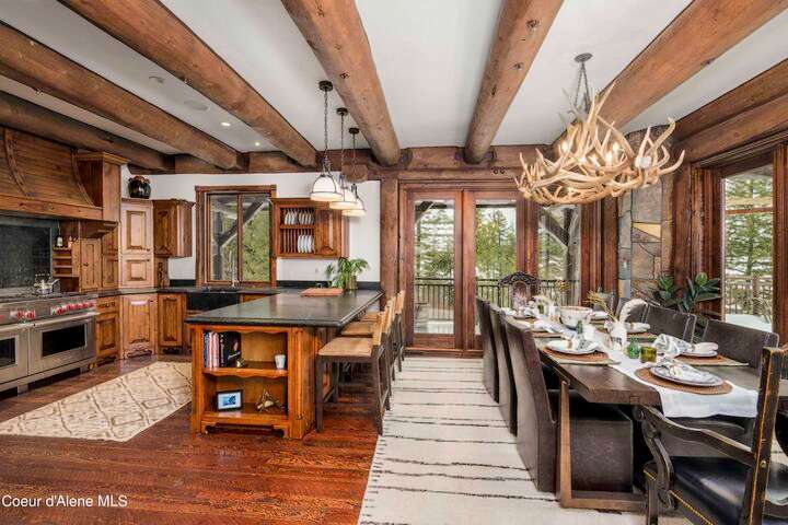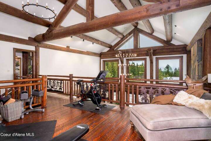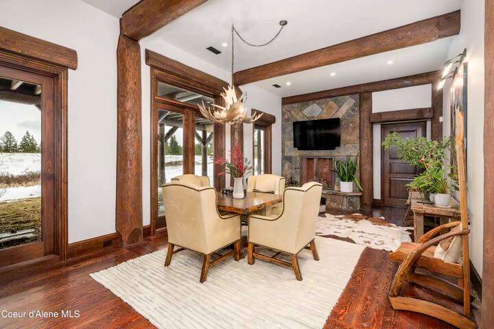 TIMELESS TIMBER-FRAMED CUSTOM HOME IN THE PRESTIGEOUS BLACK ROCK GATED COMMUNITY: This 4,531SF, 3 bed, 3 ½ bath, 2-car garage, timber-framed home with nearly 3,000SF of tropical hardwood deck belongs in the hands of an owner who appreciates the finest of things. This custom home would cost a fortune to build given today's building costs. Premium and craftsman finishes were used throughout which include massive timbers, Montana quarry rock, fossil stone, French faucets, antique old-world retro-fit cabinetry, rough-cut cedar plank flooring, re-purposed servants bell for a door bell, antler chandelier, oversized doors and master vanities, art gallery lighting, a chef's kitchen with soapstone and Wolf appliances, live-edge trim-work, custom jetted copper bath tub, an antique sliding door, custom stained glass and even a secret room! Sellers offering $12,500 credit to CDA Carts for a new 2025 EPIC E40FX, with qualifying offer! See documents for spec sheet.