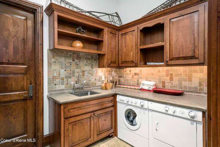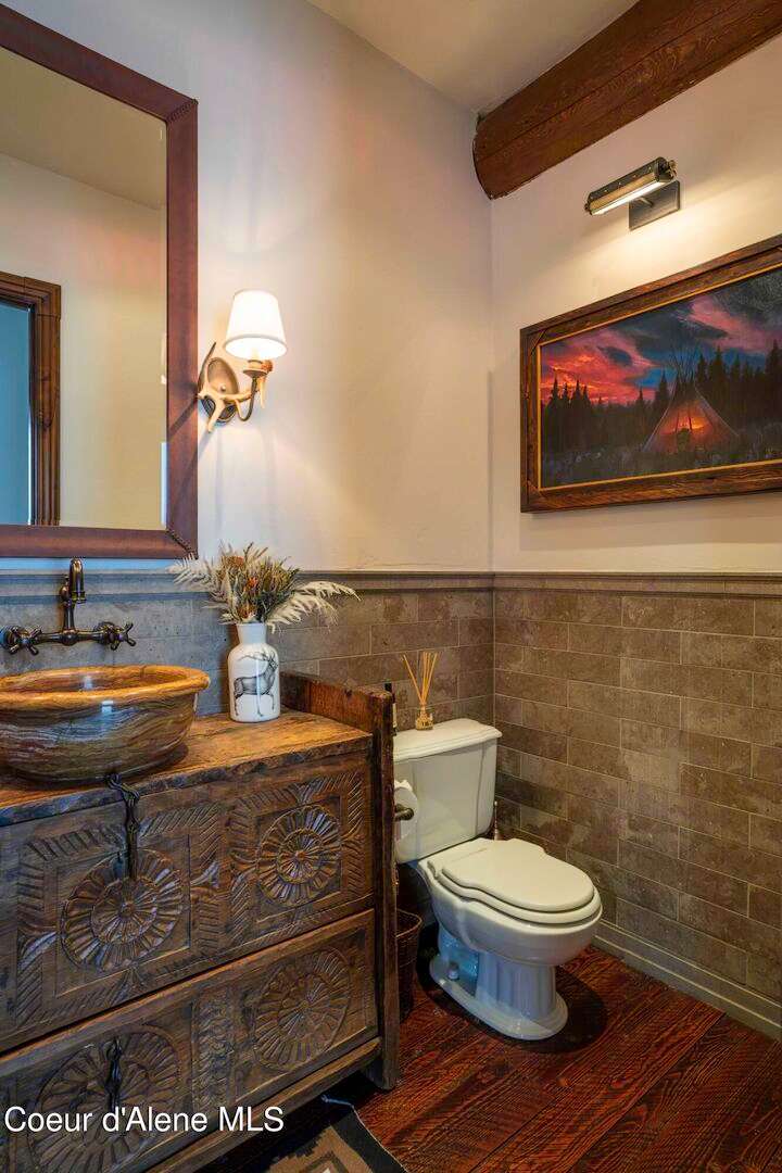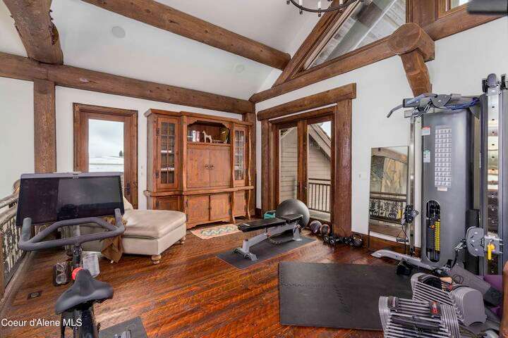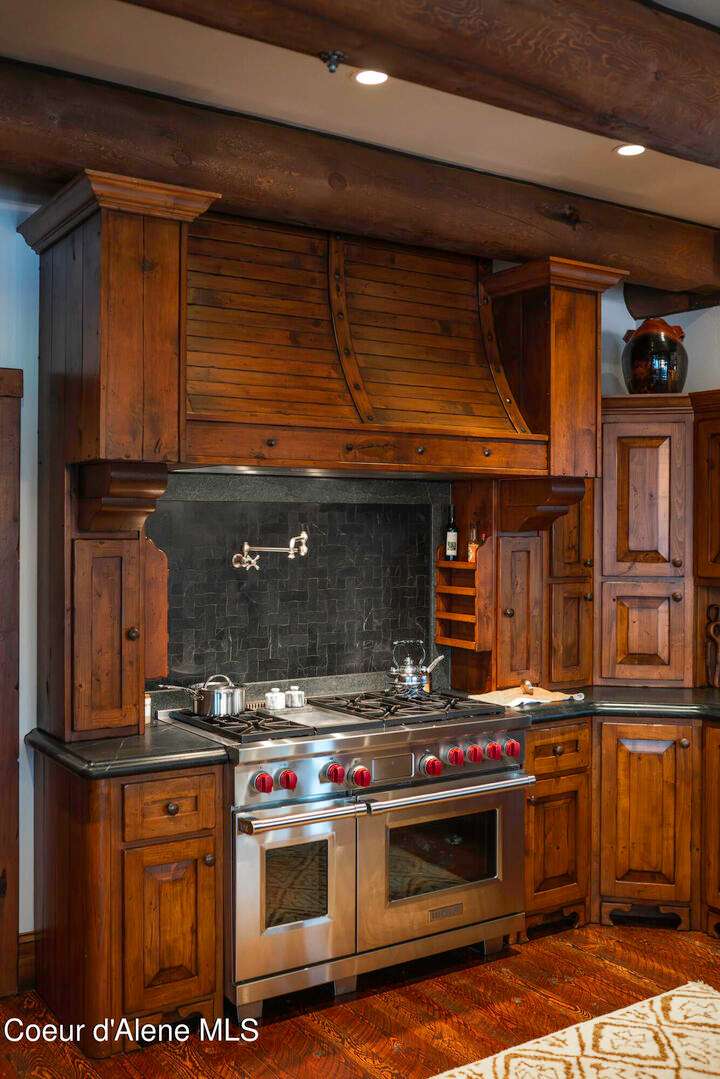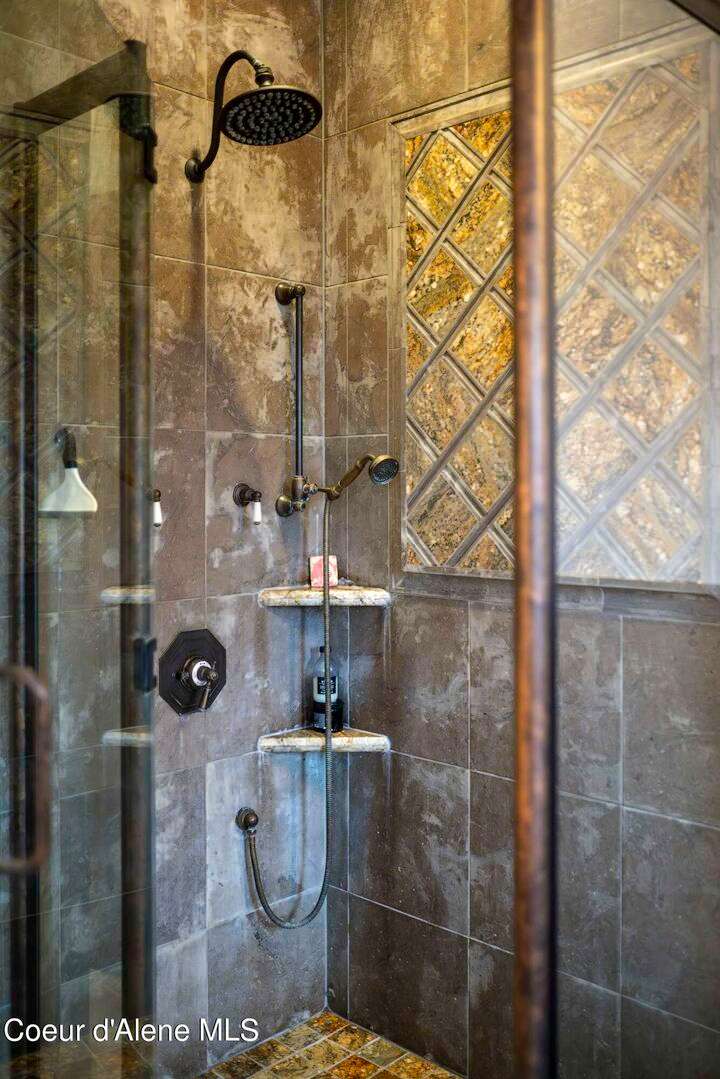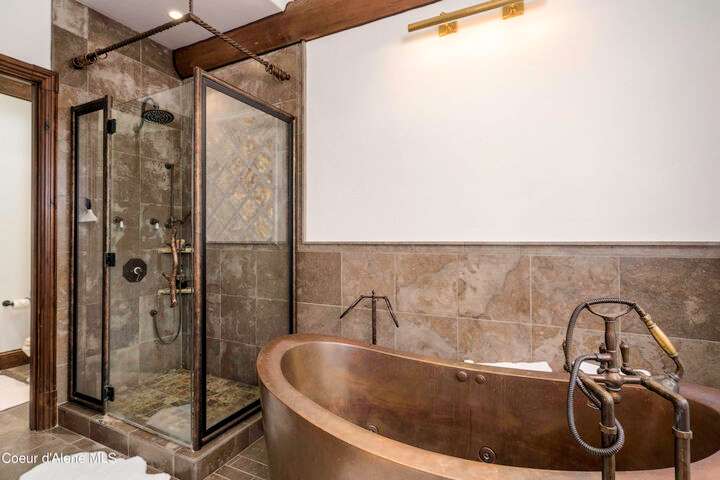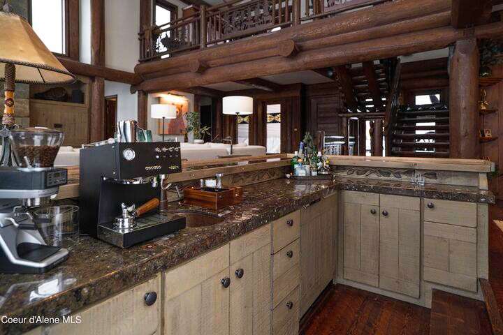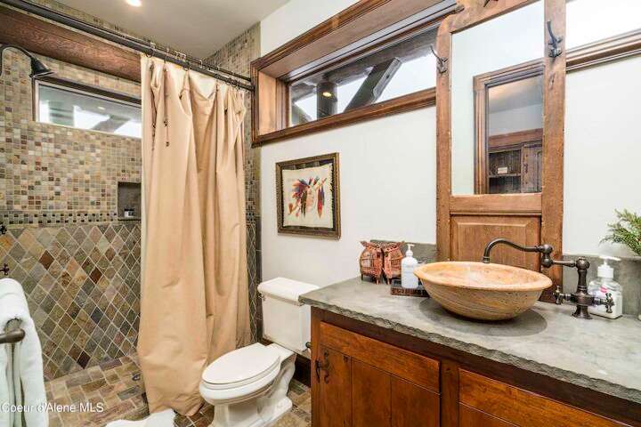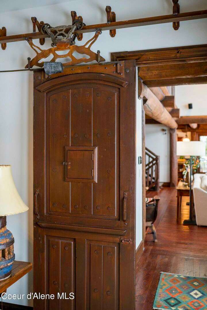 TIMELESS TIMBER-FRAMED CUSTOM HOME IN THE PRESTIGEOUS BLACK ROCK GATED COMMUNITY: This 4,531SF, 3 bed, 3 ½ bath, 2-car garage, timber-framed home with nearly 3,000SF of tropical hardwood deck belongs in the hands of an owner who appreciates the finest of things. This custom home would cost a fortune to build given today's building costs. Premium and craftsman finishes were used throughout which include massive timbers, Montana quarry rock, fossil stone, French faucets, antique old-world retro-fit cabinetry, rough-cut cedar plank flooring, re-purposed servants bell for a door bell, antler chandelier, oversized doors and master vanities, art gallery lighting, a chef's kitchen with soapstone and Wolf appliances, live-edge trim-work, custom jetted copper bath tub, an antique sliding door, custom stained glass and even a secret room! Sellers offering $12,500 credit to CDA Carts for a new 2025 EPIC E40FX, with qualifying offer! See documents for spec sheet.