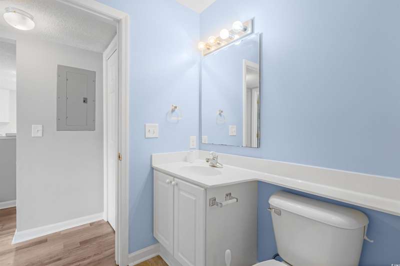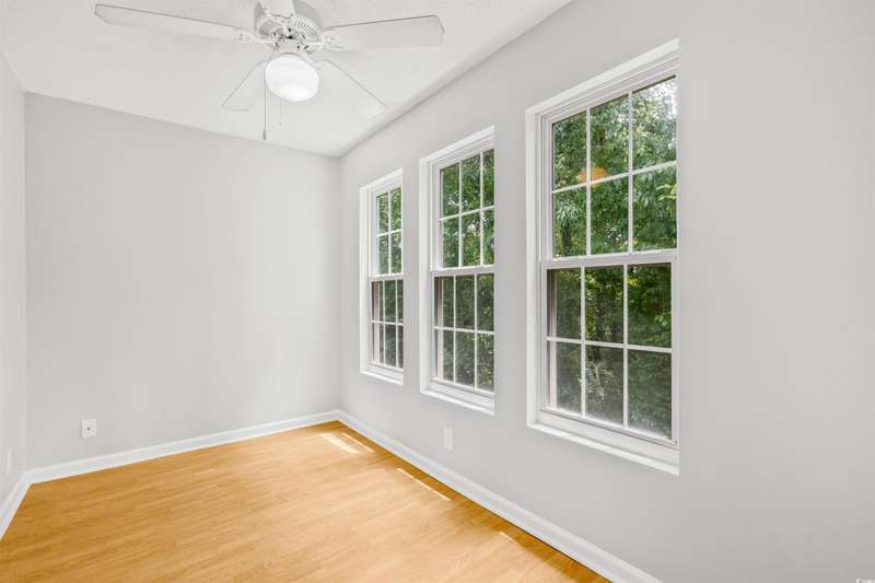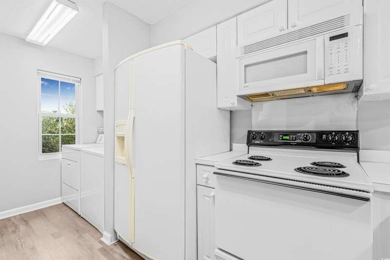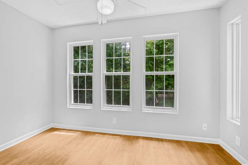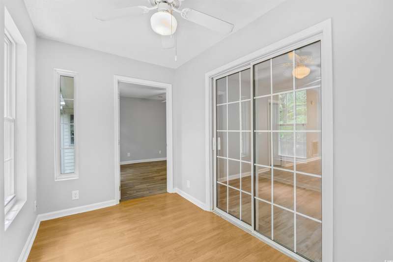 Welcome to this charming, updated 2-bedroom, 2-bathoom condo located in the heart of Pawleys Island. This move-in-ready unit offers brand new LVP flooring throughout, freshly painted and vinyl windows for energy efficiency. Open the glass storm door and step through into a welcoming foyer enhanced with classic chair rail detailing. The kitchen features white cabinetry, a double sink, and a full suite of Kenmore appliances including a stove, microwave, refrigerator, and dishwasher. A breakfast bar and large pantry make meal prep and storage a breeze. The kitchen is open to a dining-family room combo, complete with glass sliders leading into a bright and inviting Carolina room, perfect for relaxing or entertaining. Both bedrooms are well-sized and include ceiling fans and private full bath suites. The primary suite offers a private glass door entrance to the Carolina room, pull down attic storage, and an en-suite bath with a stand-up shower and vanity. Additional highlights include a laundry area with washer and dryer, extra cabinet storage with shelving, a private backyard, landscaped entry, and access to the community pool. Located just a short distance from the ocean, from amazing restaurants and shopping, this condo is ideal for year-round living or a vacation getaway. Don't miss your chance to own this gem in one of the most sought-after areas of the South Strand.