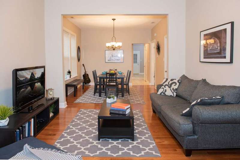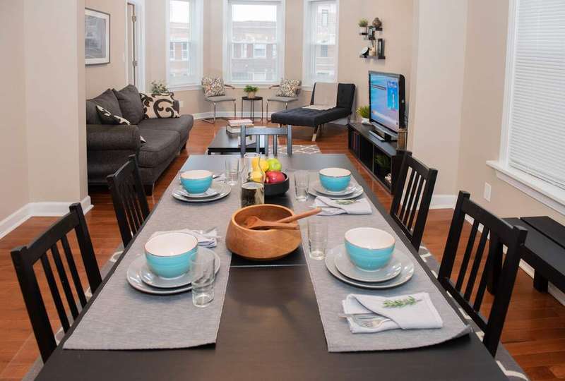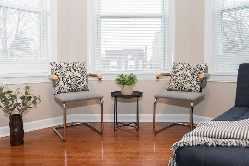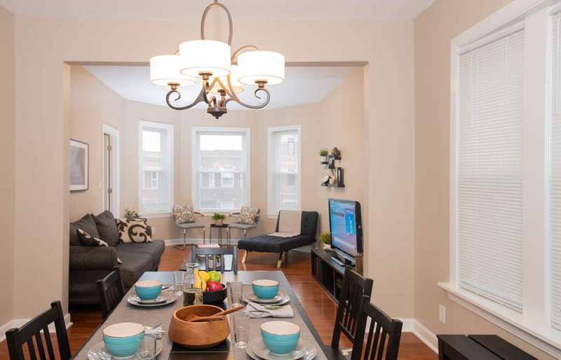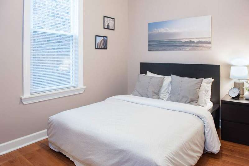 Welcome to your dream home in the heart of Roscoe Village! Freshly painted 2 Bedrooms, 1 Bath spacious apartment was rehabbed in 2019. Building is on a wider 30 ft lot. This beautiful, full floor flat features two good sized bedrooms with ample closet space, hardwood floors, central air conditioning, chef's kitchen with granite countertops, maple cabinets, ceramic tile floor and stainless-steel appliances. Expansive living room with charming bay windows, formal large dining room great for family & friend get togethers or just more space!!! Free laundry in the convenient building basement which is just steps down the back staircase. Beautifully landscaped yard. 1 garage parking spot is $175.00/ month and required in the lease. Enjoy being just a short walk from the Brown Line plus all the neighborhood's cafes, shops, and nightlife. No pets, non-smoking unit/ building. Credit/background check per person 18+.