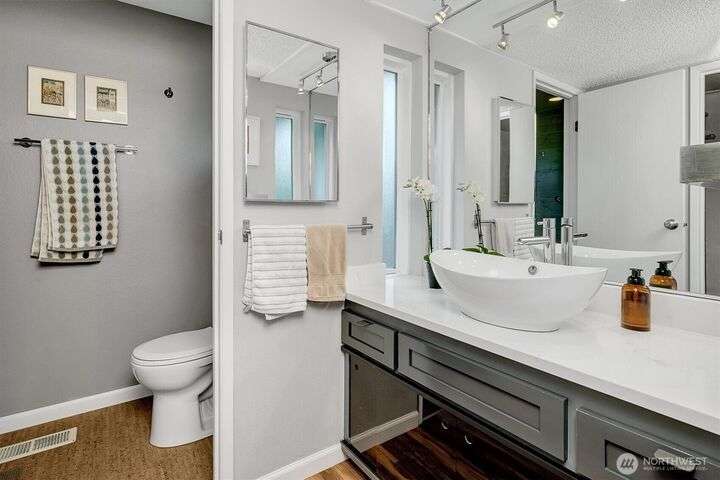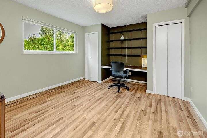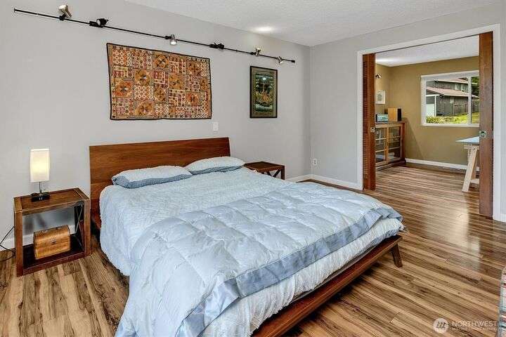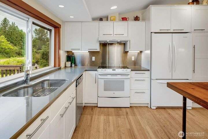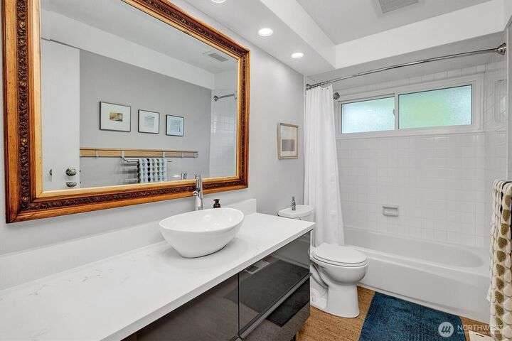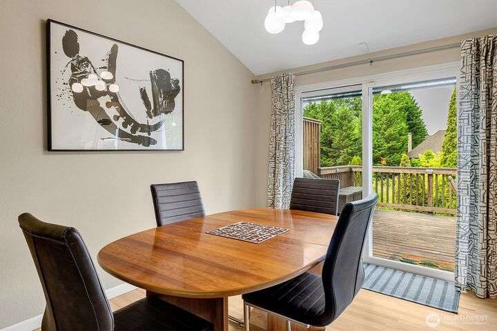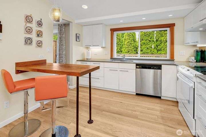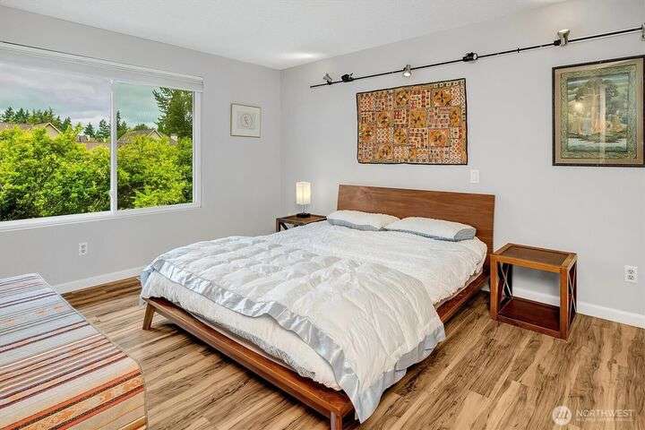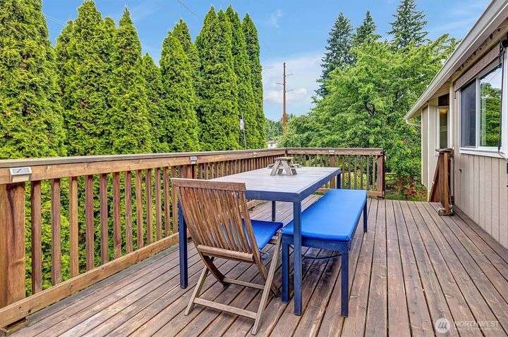 Located in the highly sought after Newport Hills neighborhood of Del Mar Woods, this upgraded and updated home sits on an oversized, sunny west facing lot with plenty of play and garden space. Backs up to open space and the popular waterline trail. Bellevue Schools including the top rated Newport High School. Updated tile, quartz kitchen and bathrooms plus luxurious cork wood floors. Spacious primary suite with huge sitting area/ main floor den/office. The expansive lower level offers exceptional flexibility, features an oversized bedroom, an updated 3/4 bathroom, a large recreation room with kitchenette for entertaining. Short walking distance to Newcastle Commons, restaurants, grocery stores, coffee, parks and library.