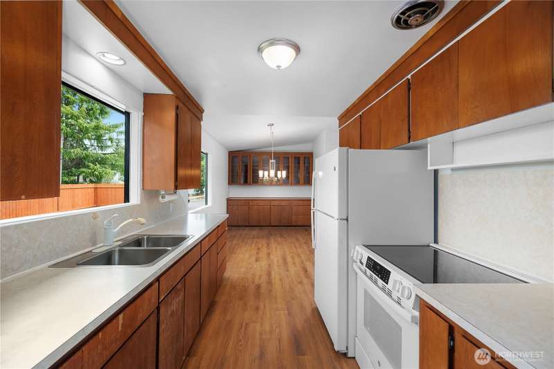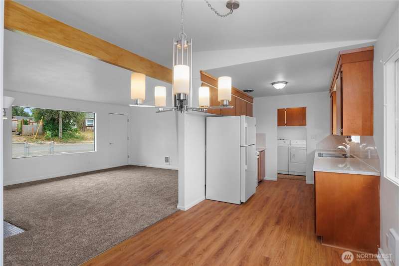 Move-in ready 4-bedroom mid century rambler in Shelton’s Arcadia area! This thoughtfully updated home blends new and old with all new electrical wiring and panel, fresh interior and exterior paint, new carpeting, new heaters and a brand-new stove and refrigerator, but still has those original wood floors, and many built ins and vaulted ceilings with exposed beams. A split bedroom design affords the primary bedroom with large walk in close plenty of privacy. There is a large mudroom, and exterior storage space for tools and toys alike. The spacious corner lot is fully fenced and has ample parking. Convenient location provides easy access to downtown Shelton and shopping, or Highway 101 and Olympia.